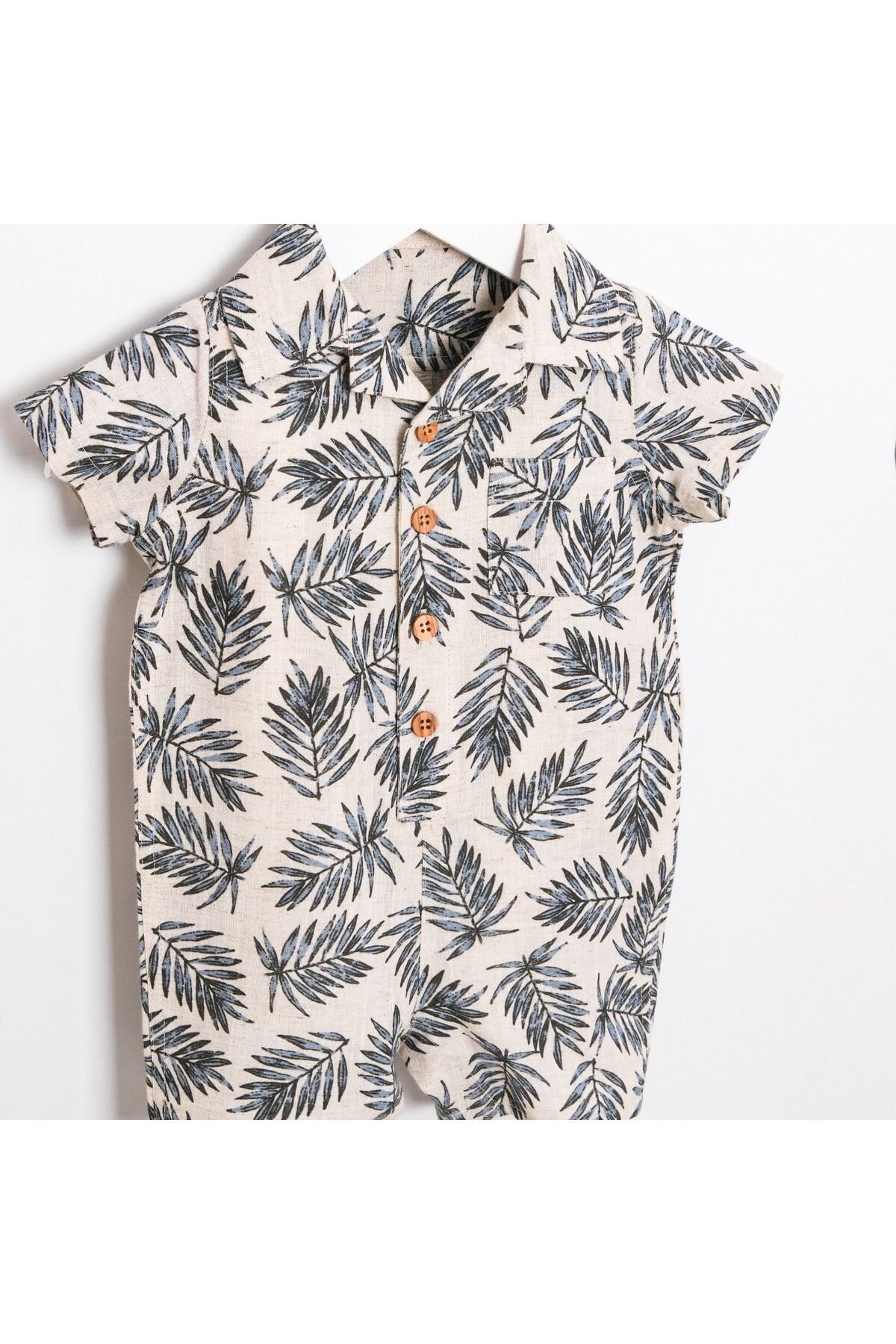 - Bebeğinizin cildine nazik dokunuşuyla %50 pamuk, %30 viskon ve %20 ketenden oluşan materyali sayesinde gün boyu konfor sağlar.; - Şapkasında da aynı kalitede malzemeler kullanılmış olup, hem şıklığı hem de rahatlığı bir arada sunar.; - Yaz ayları için ideal olan bu tulum, sıcak havalarda bebeğinizin serin kalmasına yardımcı olurken, kısa kollu tasarımı ile hareket özgürlüğü tanır.; - Hassas yıkama talimatlarına uygun şekilde temizlenmesi kolaydır; böylece tulumunuz uzun süre ilk günkü gibi kalır.; - Kısa boyu ve regular kalıbıyla bebeklerinize tam oturan bir yapıya sahiptir; hareketlerini kısıtlamaz.; - Trend desenleriyle dikkat çeken bu tulum, stil sahibi ebeveynler için mükemmel bir seçimdir.; - Erkek yaka detayı ile modern bir görünüm kazandırırken, kısa paça tasarımı pratik kullanım imkanı sunar.; - Pamuklu kumaşı sayesinde nefes alabilirlik özelliği ön plana çıkarken, dayanıklılığıyla uzun süreli kullanım vaad eder.;