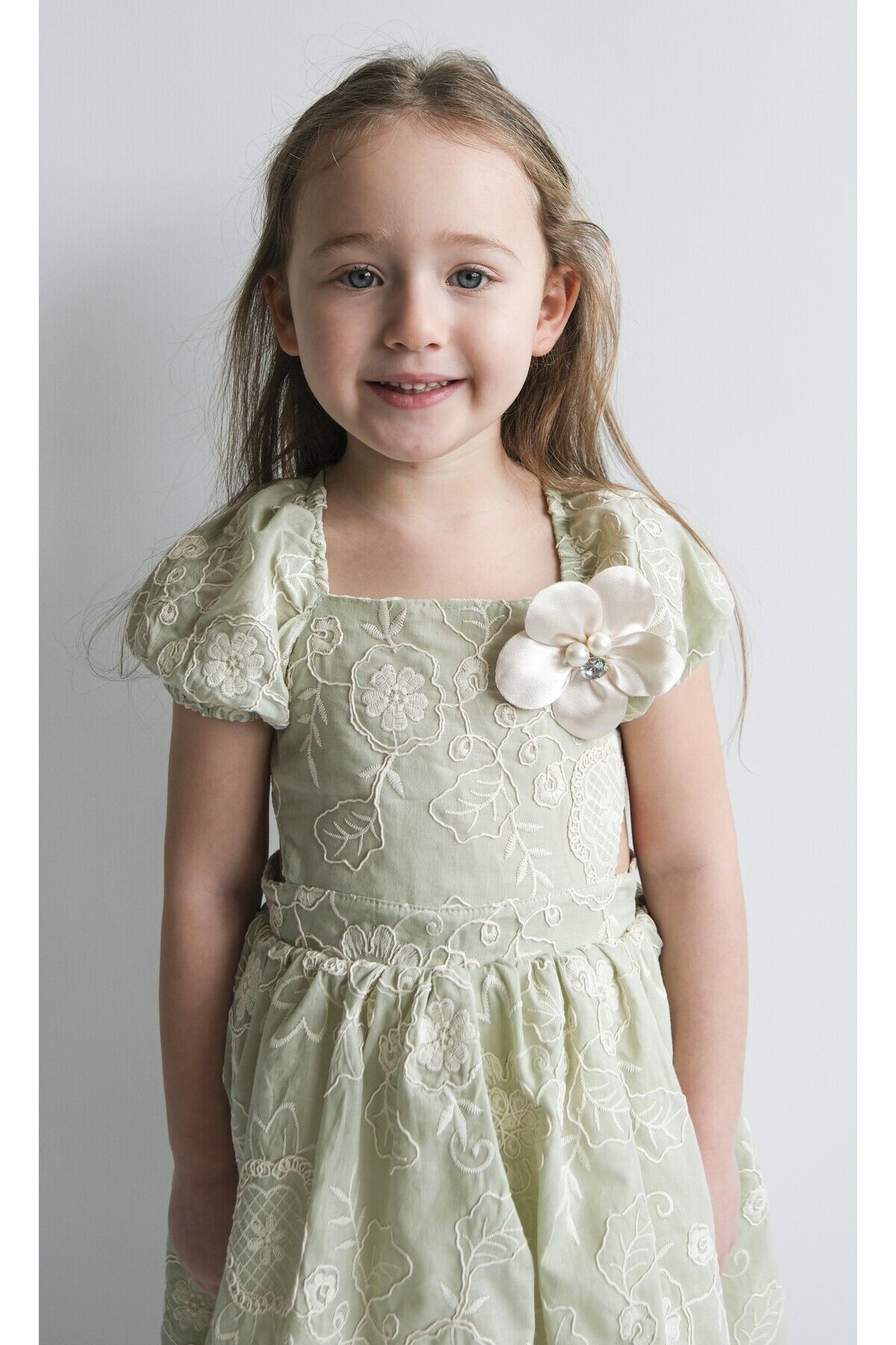 Anabel Su Yeşili Cut Out Detaylı Kız Çocuk Elbise