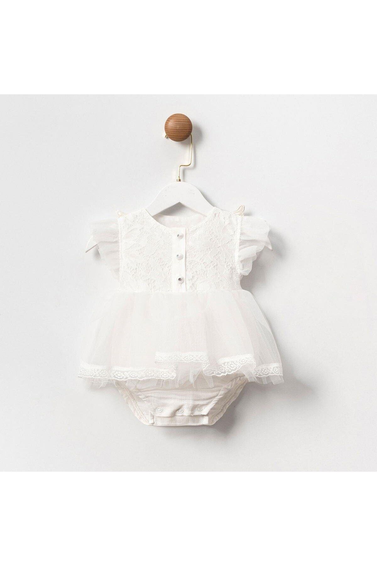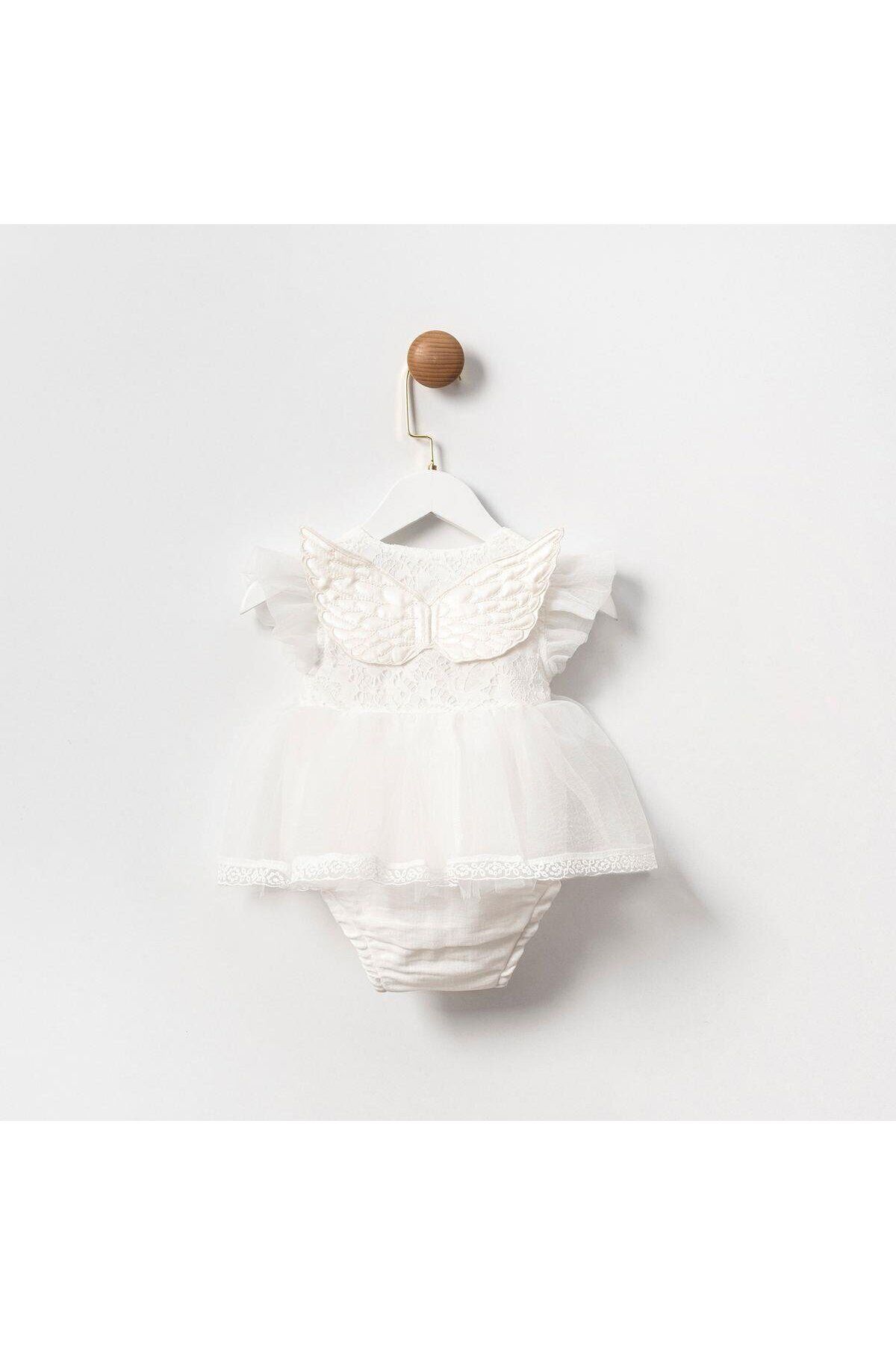 Angel Melek Kanatlı Kız Bebek Romper Beyaz