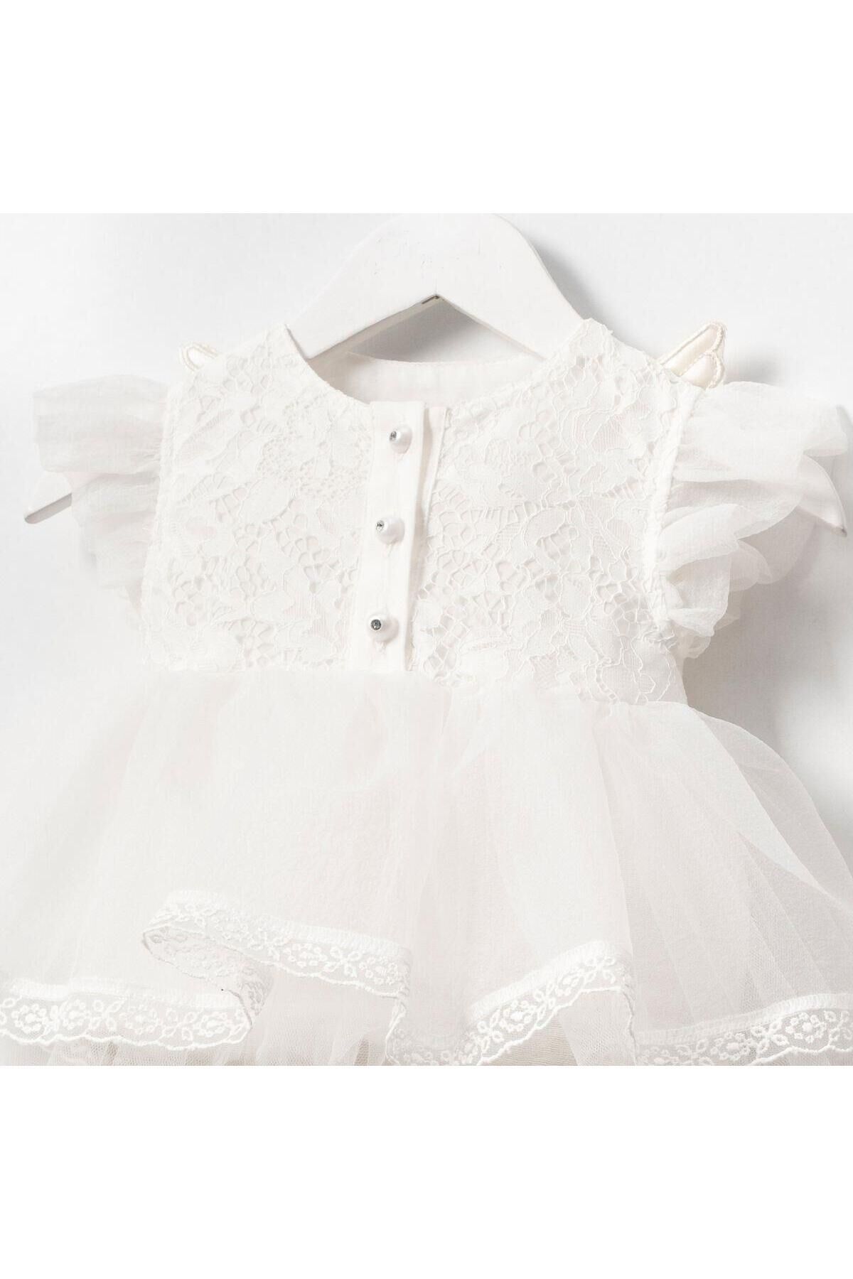 - Zarif beyaz rengiyle dikkat çeken bu bebek romper, melek kanatları deseniyle şıklığı ve masumiyeti bir arada sunar.; - Bisiklet yakası sayesinde rahat bir kullanım sağlarken, düz deseniyle kolayca kombinlenebilir.; - Dokuma kumaşı, dayanıklılığı artırarak uzun süreli kullanım imkanı tanır.; - Kadın/kız cinsiyetine özel tasarlanmış olup, her yaş grubundaki kız bebekler için idealdir.; - Pratik düğme detayı ile kolay giyilip çıkartılabilir; böylece ebeveynler için ekstra konfor sağlar.; - Basic silueti sayesinde vücuda tam otururken hareket özgürlüğü de sunar.; - Kemersiz yapısıyla basit ama şık bir görünüm kazandırırken, cepsiz tasarım pratikliği arttırır.; - Regular kalıp ile rahat bir oturuşa sahip olan bu romper, günlük kullanım için uygundur.; - Astarsız olması hafifliği ön plana çıkararak bebeğinizin konforunu arttırır.; - Party koleksiyonuna ait bu parça, özel günlerdeki şıklığınızı tamamlamanız için idealdir.; - Sürdürülebilirlik detayının bulunmamasına rağmen %100 pamuk materyaliyle doğal ve nefes alabilen yapıya sahiptir.; - Kalın askılı tasarım yaz ayları için serin tutarken, kolsuz yapısıyla da mevsim geçişlerinde rahatlıkla tercih edilebilir.; - Hassas yıkama talimatlarına uygun şekilde bakım yapılması durumunda formunu koruyacaktır.; - Tül dokuma tipi ile hafif ve zarif bir dokunuş katarken, kolsuz kol boyu yaz sıcaklarında ferahlık sağlar.