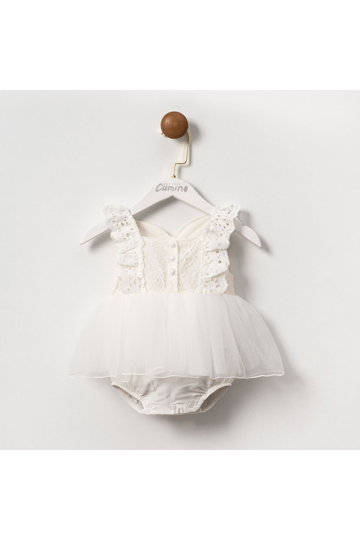 Angel Pul Kanatlı Fistolu Beyaz Romper