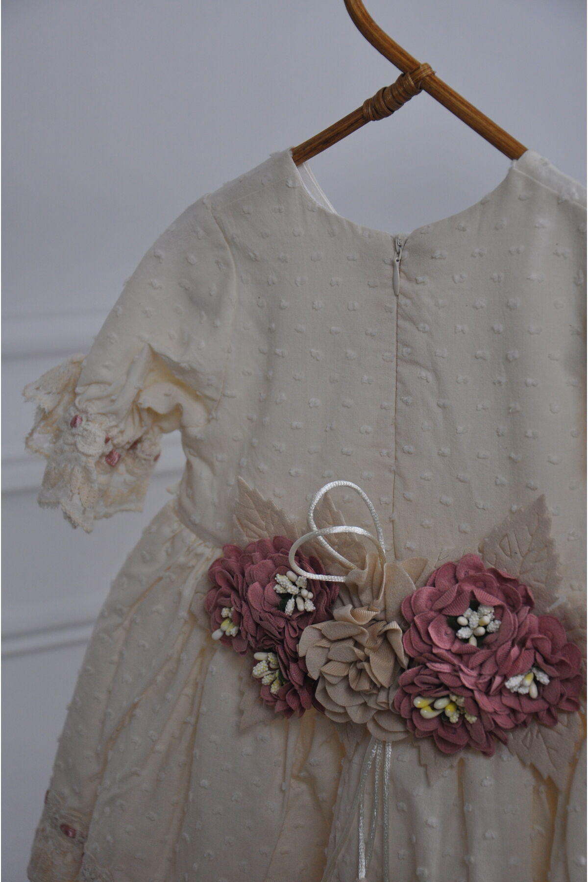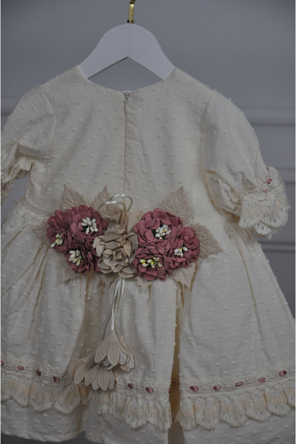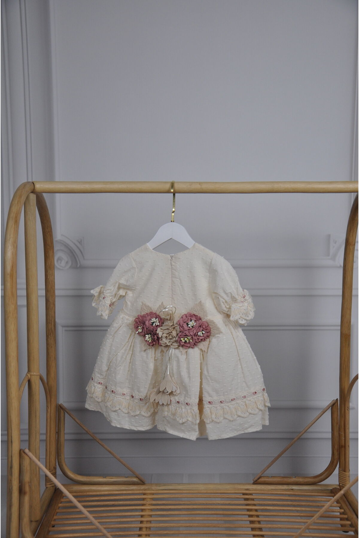 Arkası Çiçek Detaylı Vintage Kız Çocuk Elbise