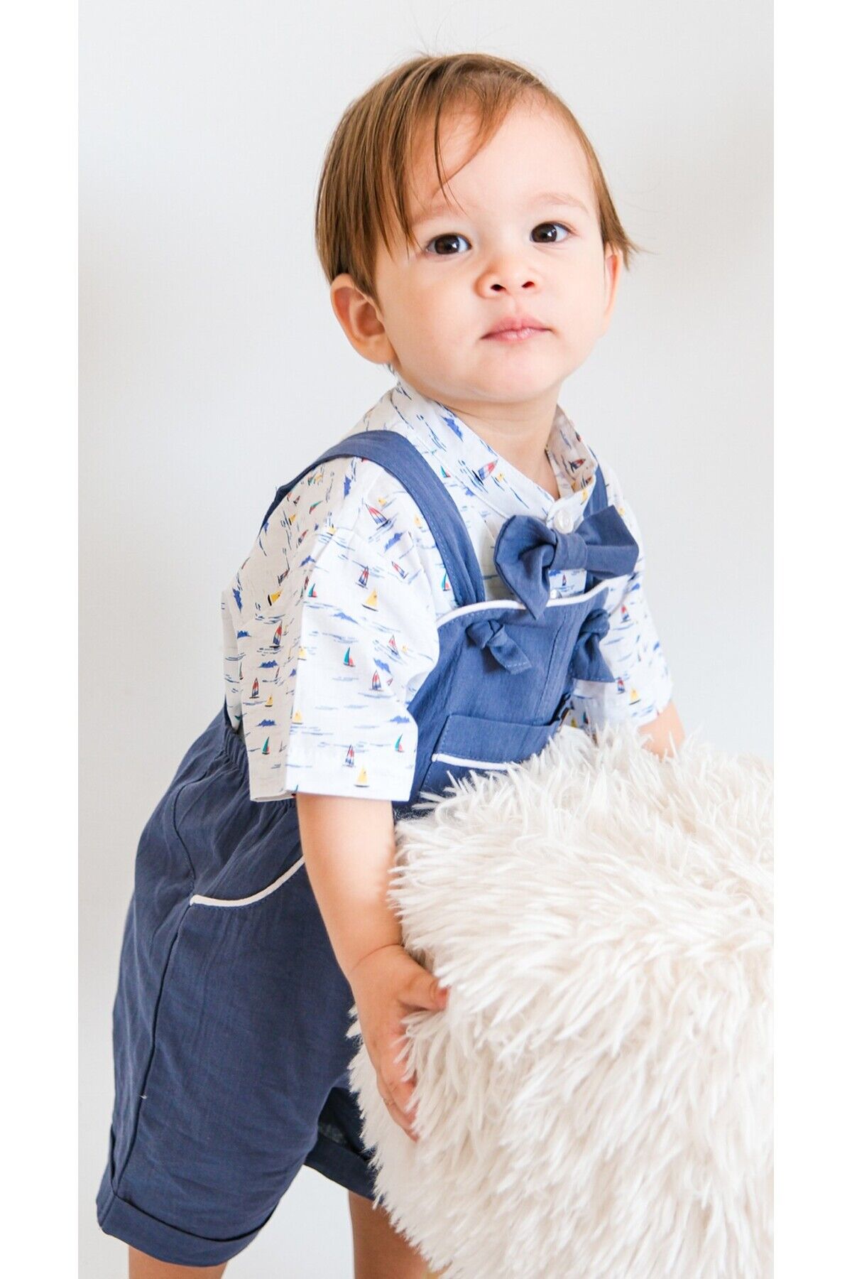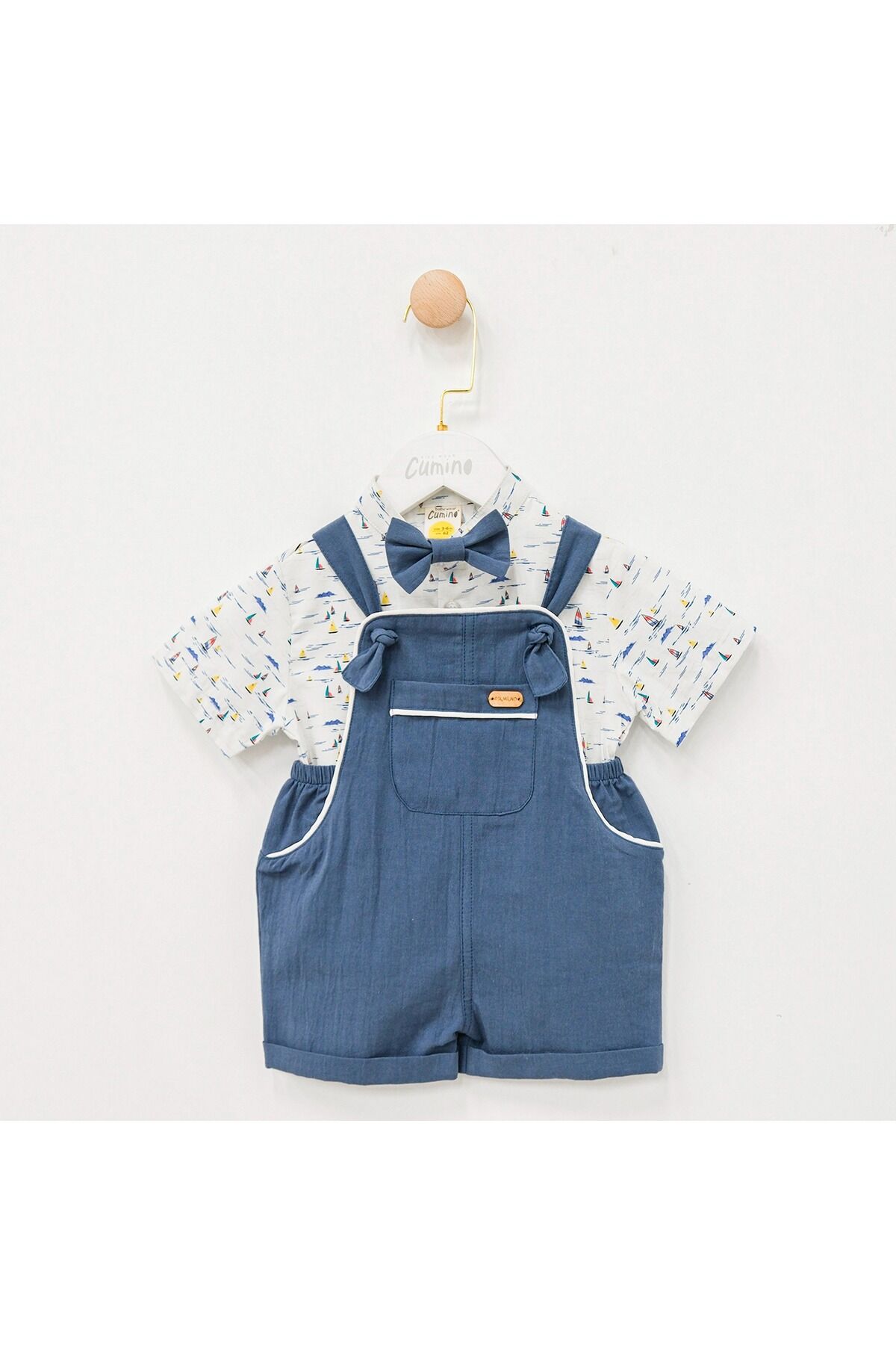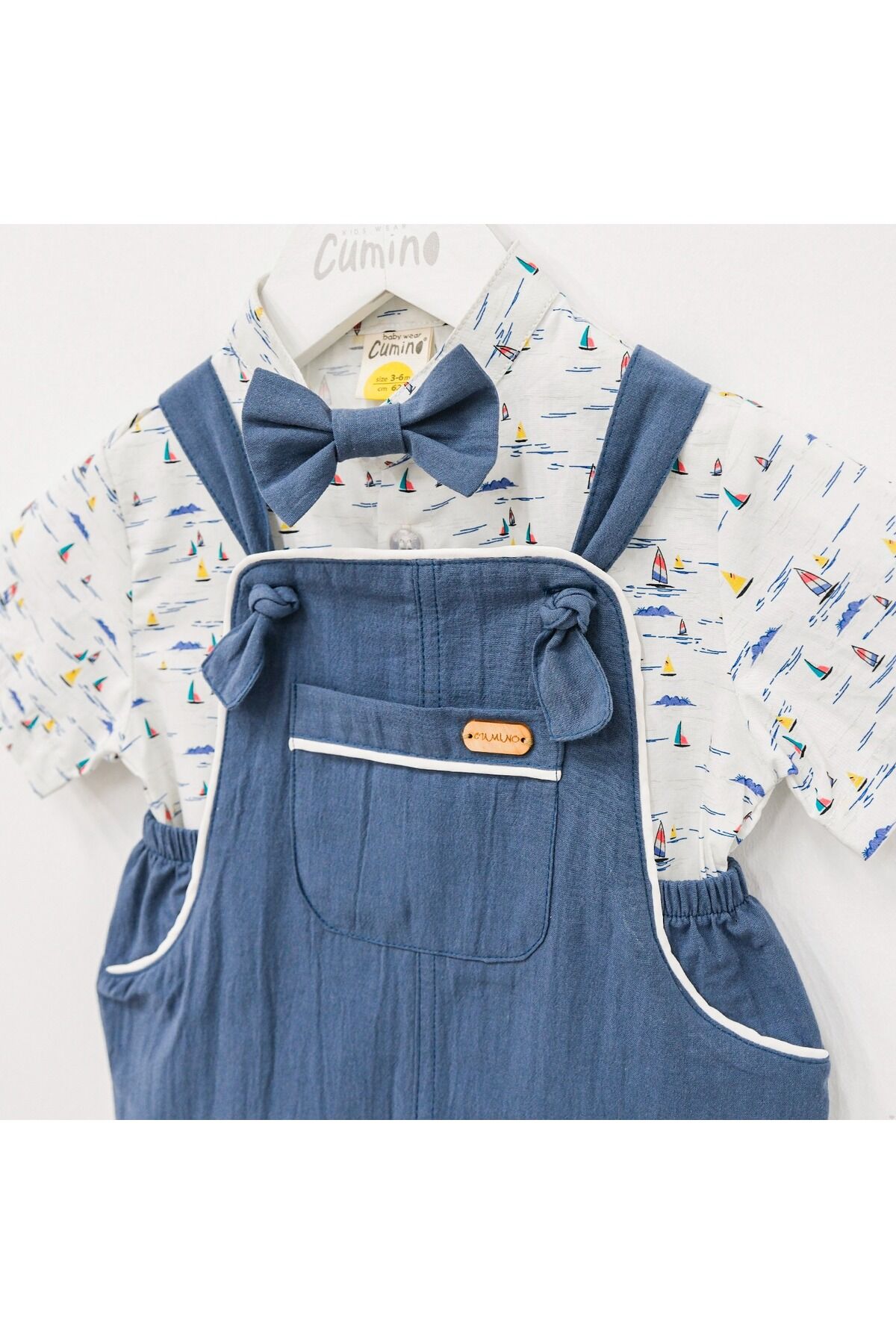 - Bebeğinizin rahatlığı düşünülerek tasarlanmış, lastikli bel yapısı sayesinde kolayca giydirilip çıkarılabilir.; - İki parçadan oluşan set içeriği ile hem şıklığı hem de pratikliği bir arada sunar; böylece bebeğiniz her zaman stil sahibidir.; - Yarım pat düğme kapama şekliyle güvenli ve hızlı kullanım imkanı sağlar; bebeğinizin hareket özgürlüğünü kısıtlamaz.; - Trend görünümüyle dikkat çeken bu salopet, yaz aylarının enerjisini yansıtan renkli desenleriyle göz alıcıdır.; - Hassas yıkama talimatlarına uygun şekilde temizlenmesi sayesinde uzun süre ilk günkü gibi kalır.; - Düz dokuma kumaşı yumuşak dokusuyla cildi tahriş etmez ve konforlu bir deneyim sunar.; - Esnek bel tasarımı sayesinde bebeklerin vücut hatlarına mükemmel uyum sağlayarak rahat hareket etmelerine olanak tanır.; - Kare yaka detayı modern ve şık bir görünüm kazandırırken aynı zamanda sıcak havalarda serinlik hissi verir.; - %100 pamuk materyali tercih edilerek nefes alabilen yapıda olup, bebeğinizin cildinin gün boyu ferah kalmasına yardımcı olur.; - cep detayları estetik amaçlı eklenmiştir ancak işlevsel değildir; sadece görsel zenginlik katmak amacıyla kullanılır.; - Kısa paça kesimiyle mevsimsel geçişlerde ideal koruma ve hareket serbestliği sağlar.; - Renkli desenleriyle canlılık kazanan bu salopet, bebek gardrobuna neşe katar.; Papyon dahildir.;