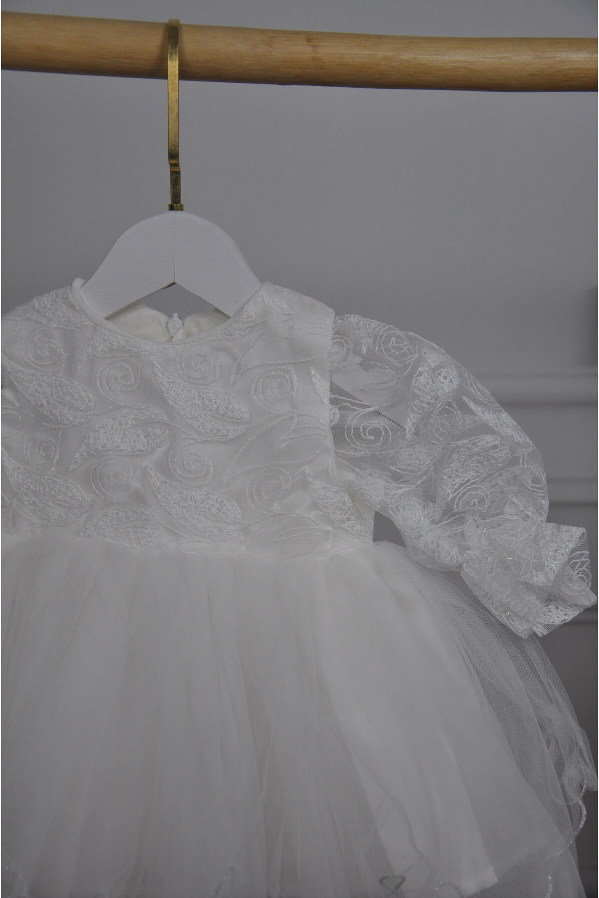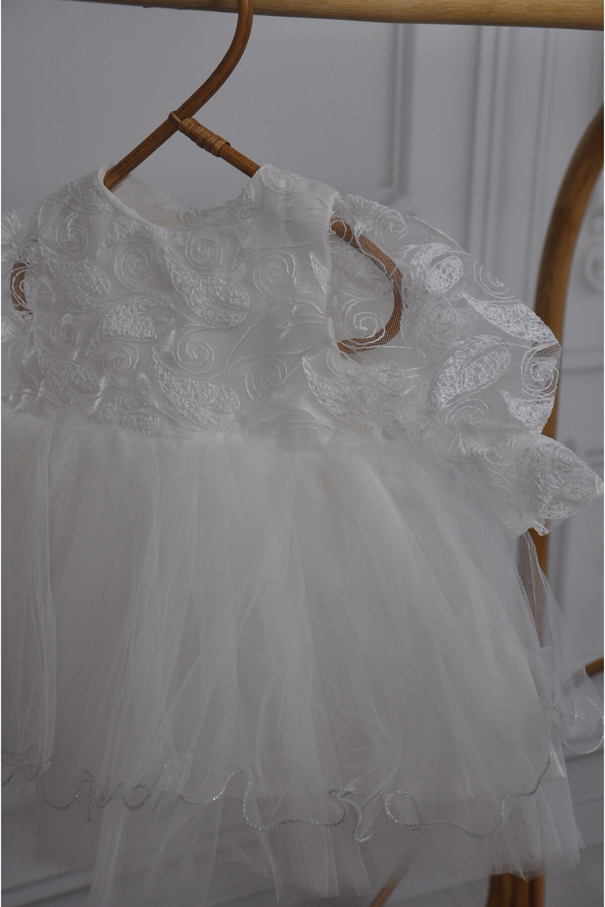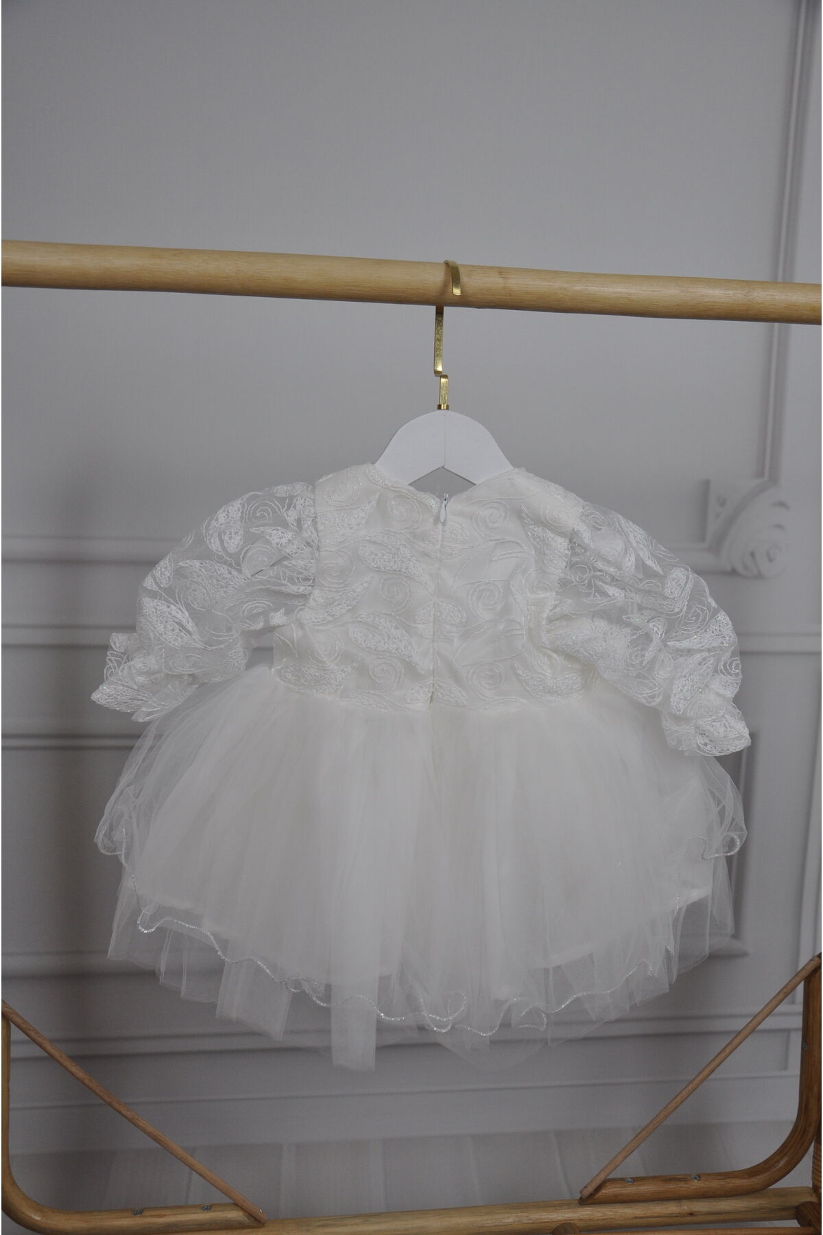 Beyaz Balon Kollu Tütülü Kız Bebek Elbise