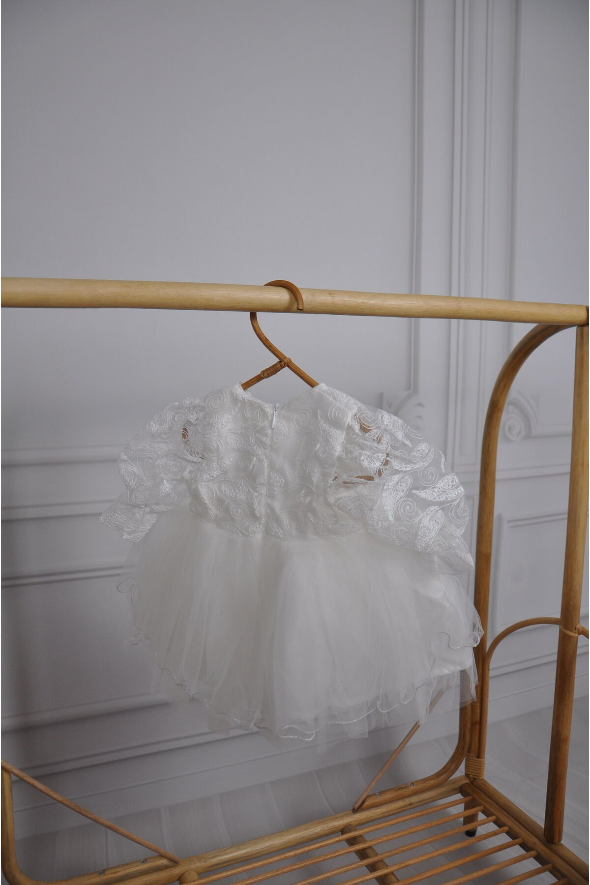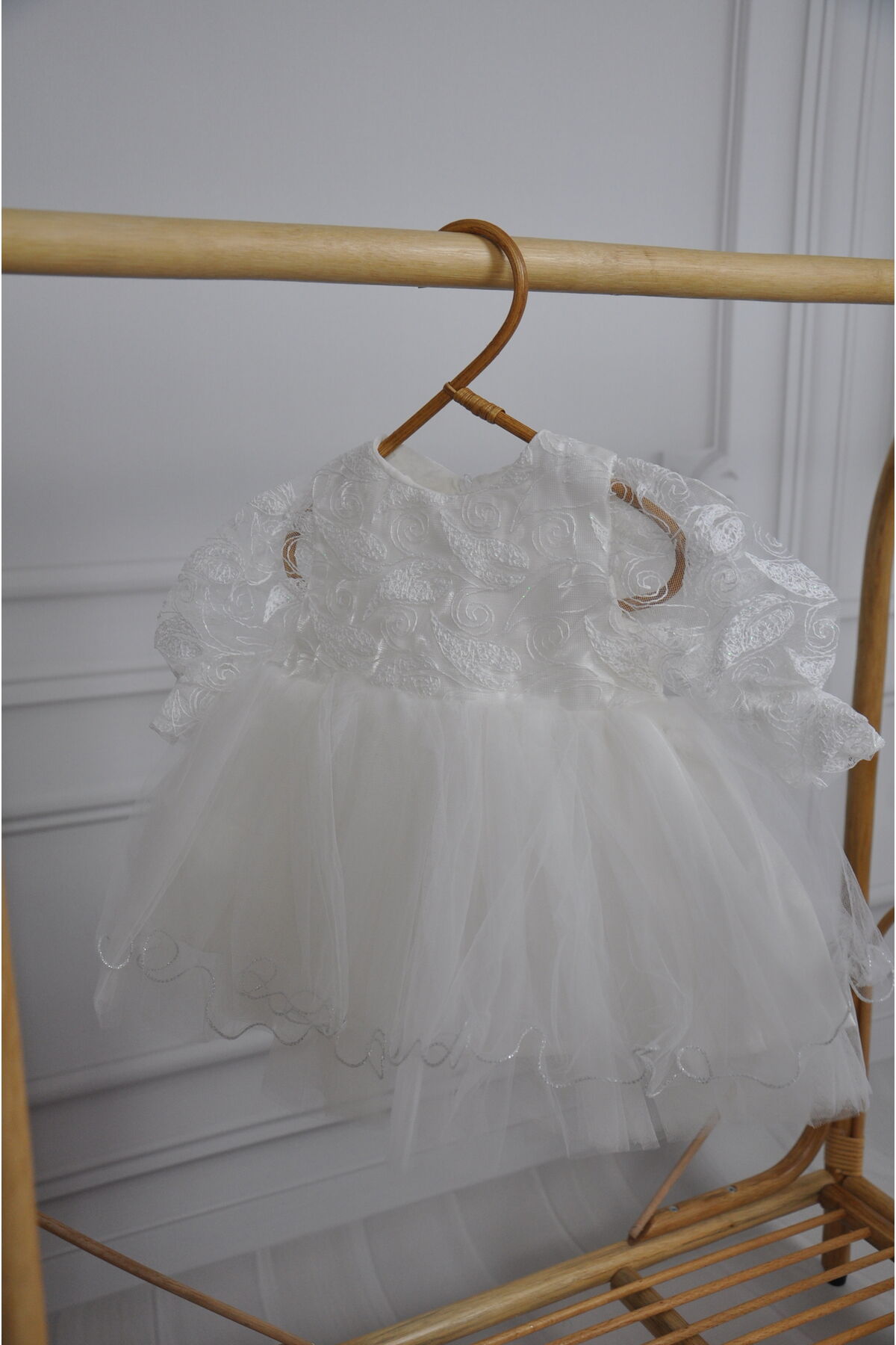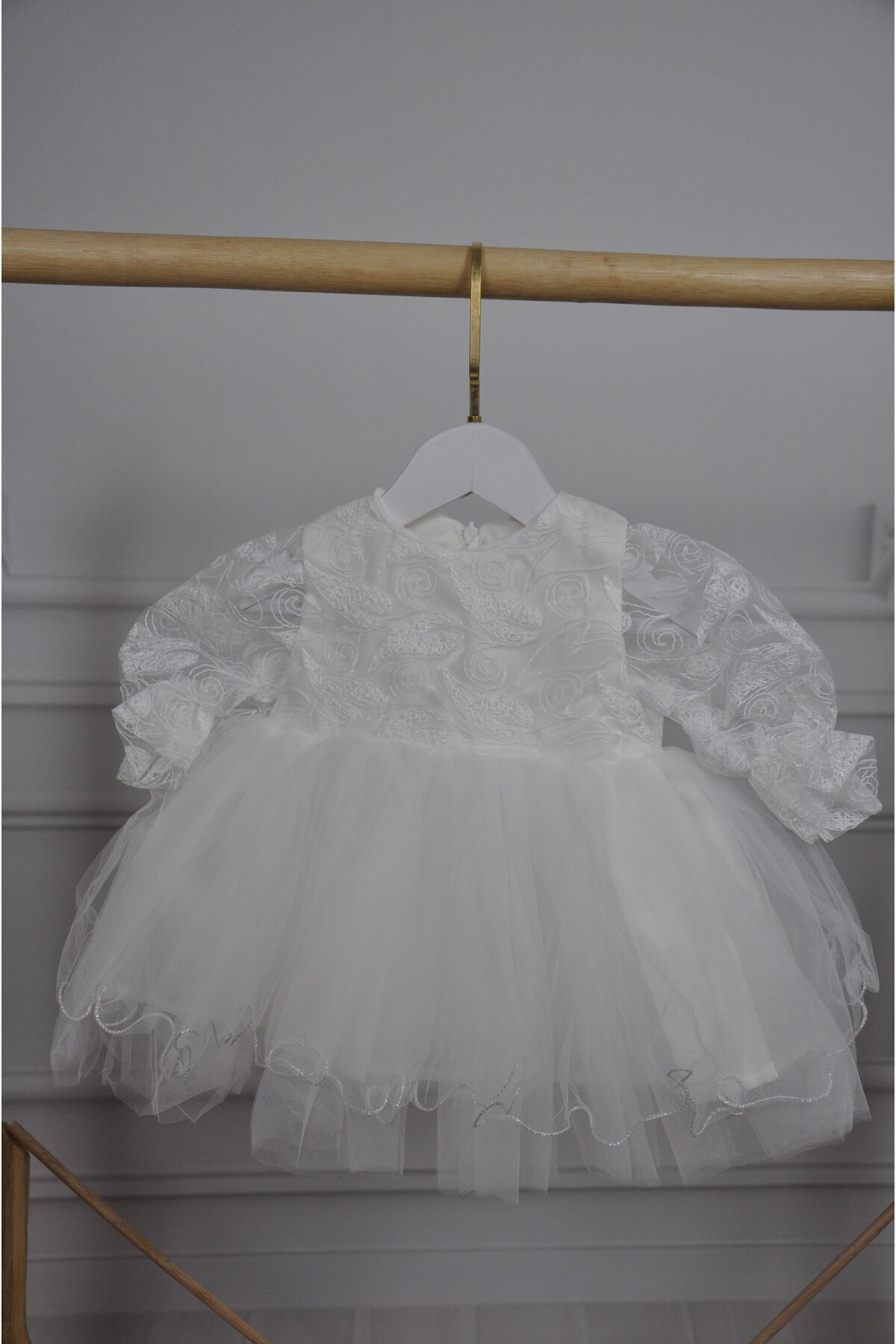 Beyaz Balon Kollu Tütülü Kız Bebek Elbise