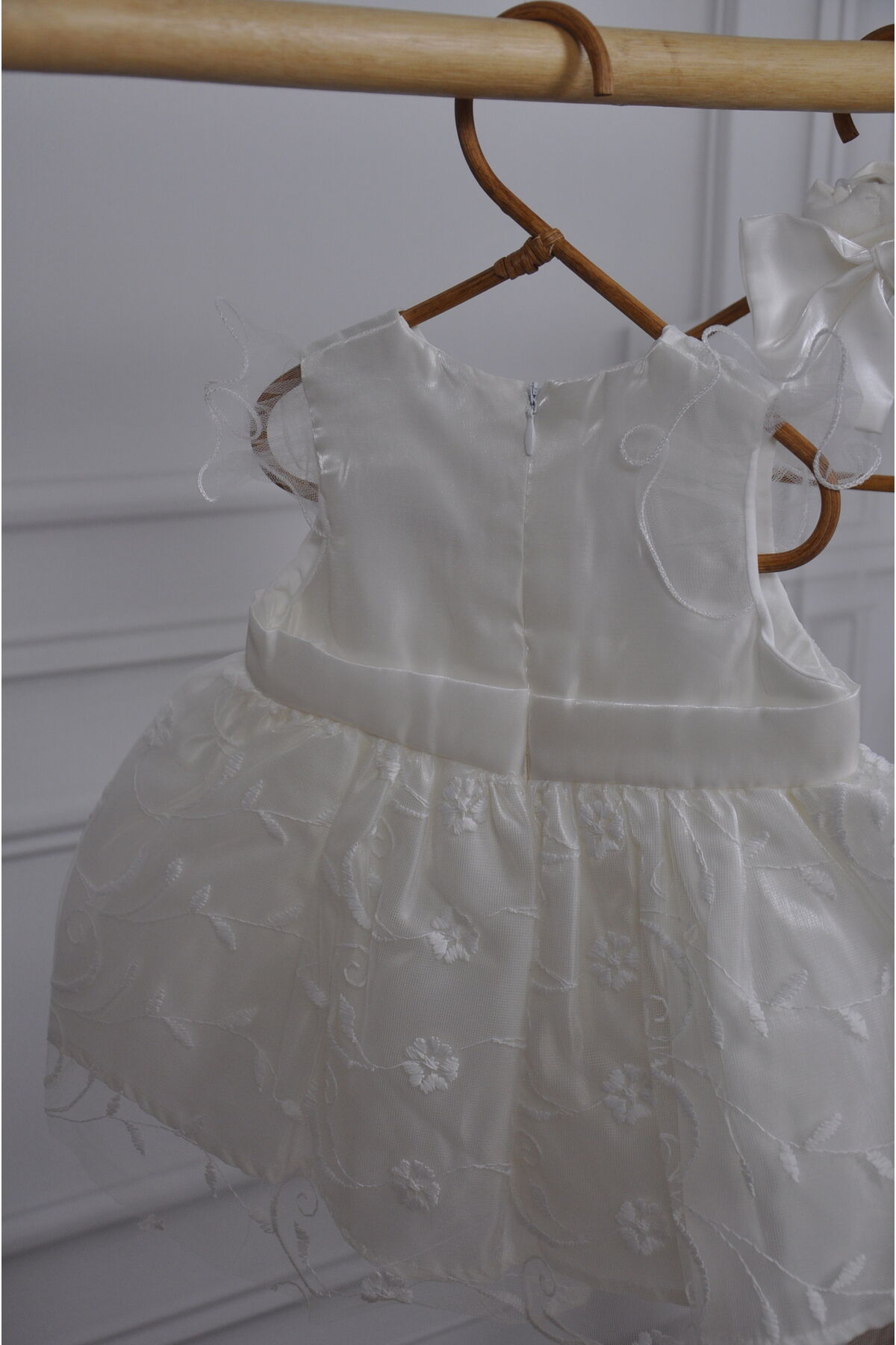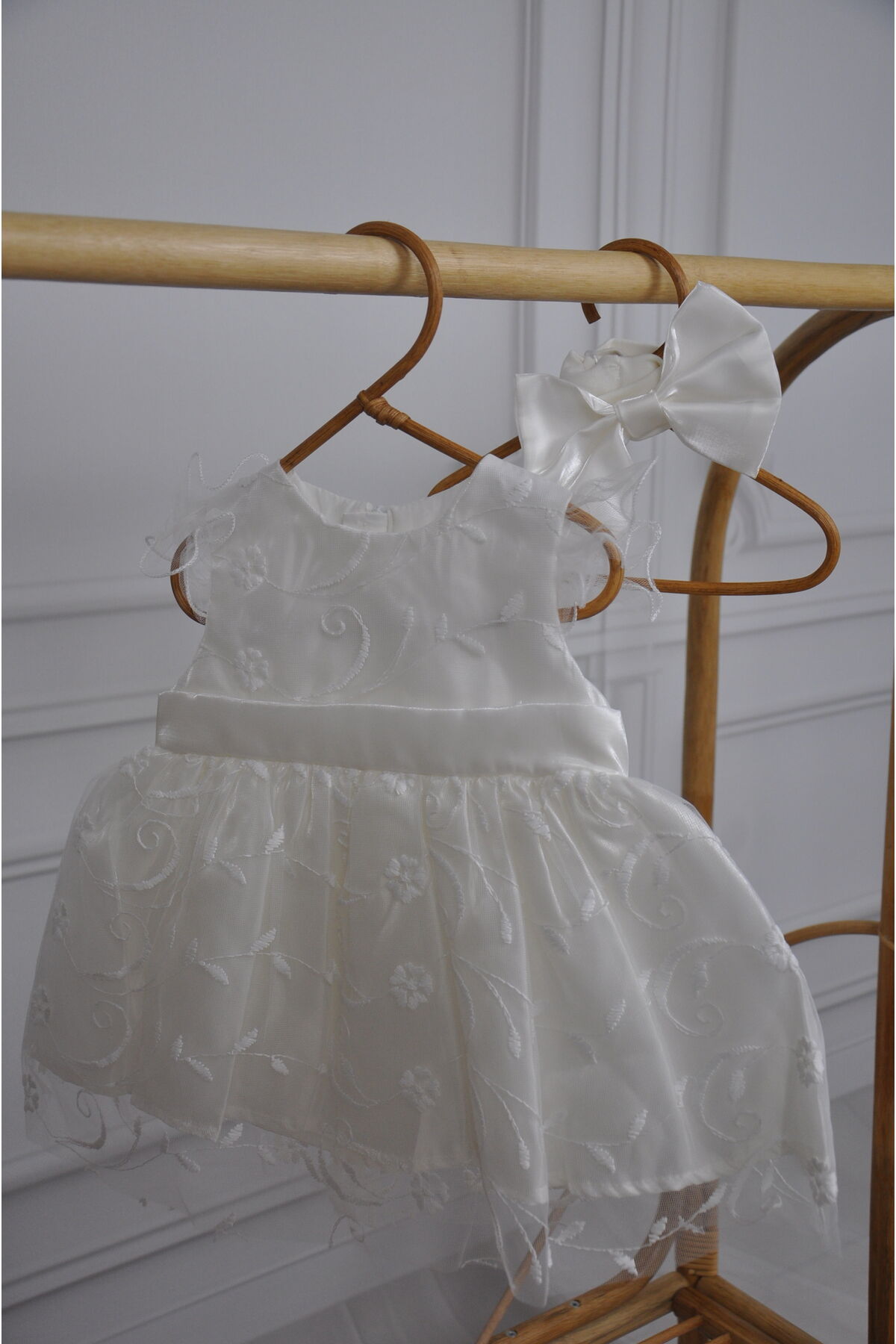Beyaz Dantelli Saç Aksesuarlı Kız Bebek Elbisesi
