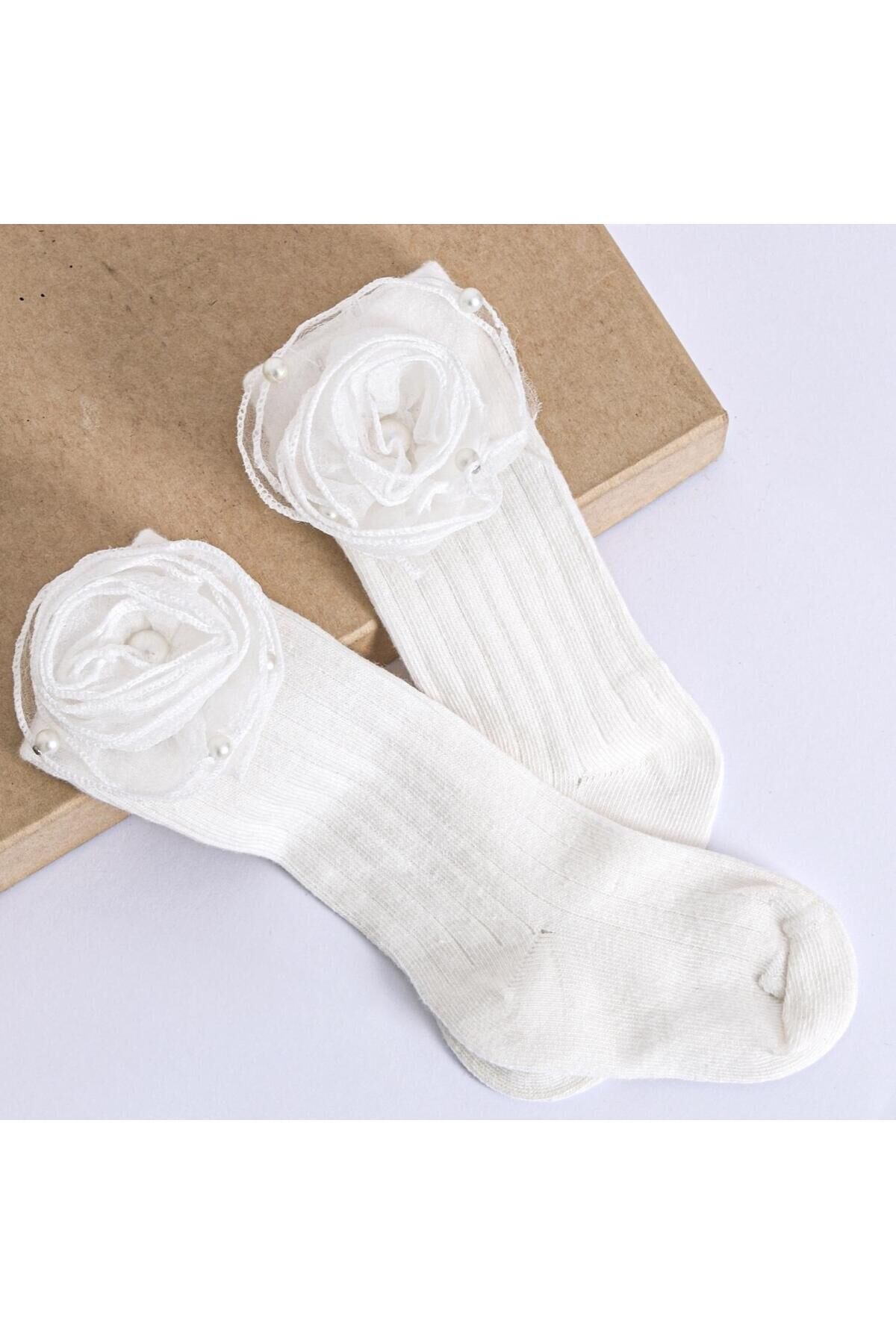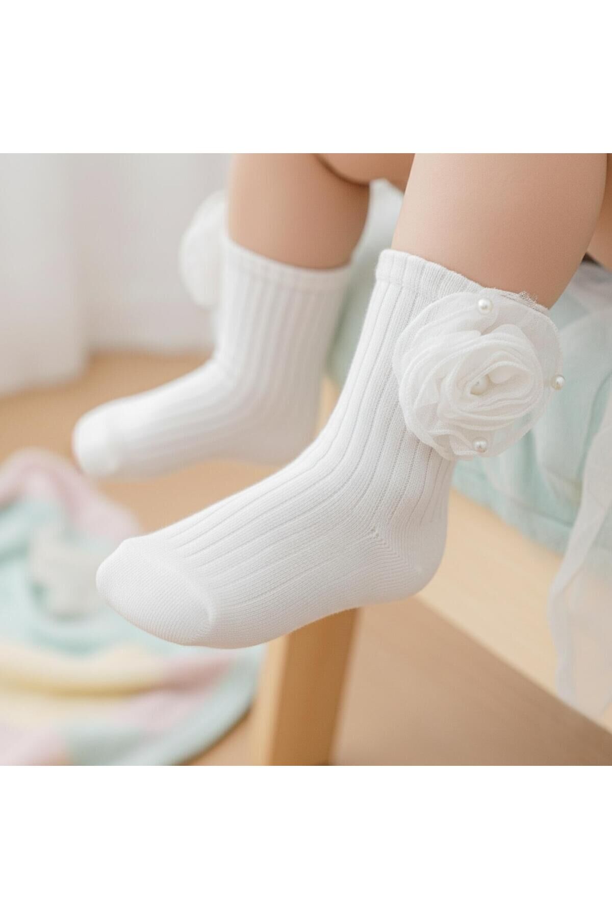 Minik prensesinizin stilini tamamlayacak bu şık beyaz çorap, zarif çiçek ve inci detaylarıyla özel günlerin vazgeçilmezi olacak.; Yumuşak dokusu sayesinde bebeğinizin hassas cildine dost, aynı zamanda şık tasarımıyla elbise, etek ve tüm kombinlere mükemmel uyum sağlar.;