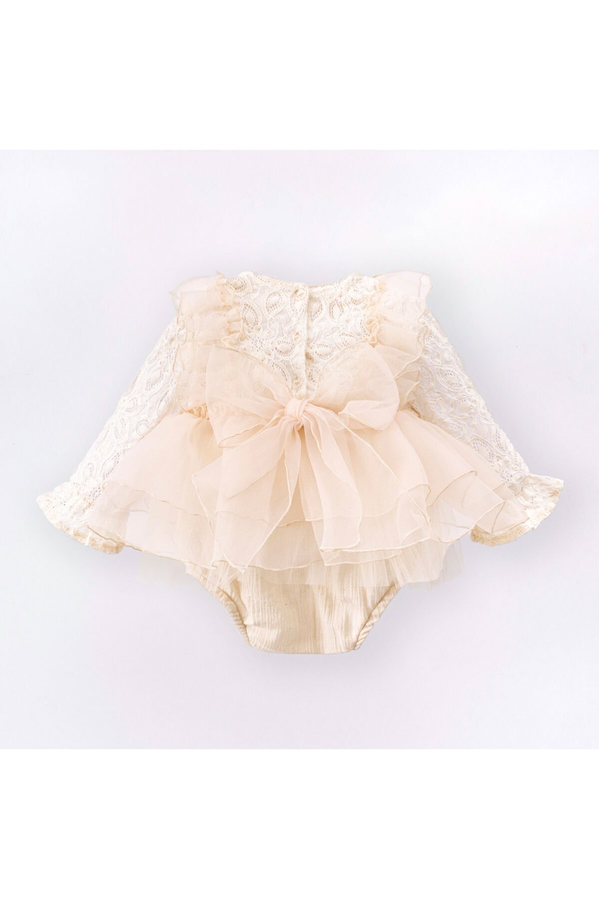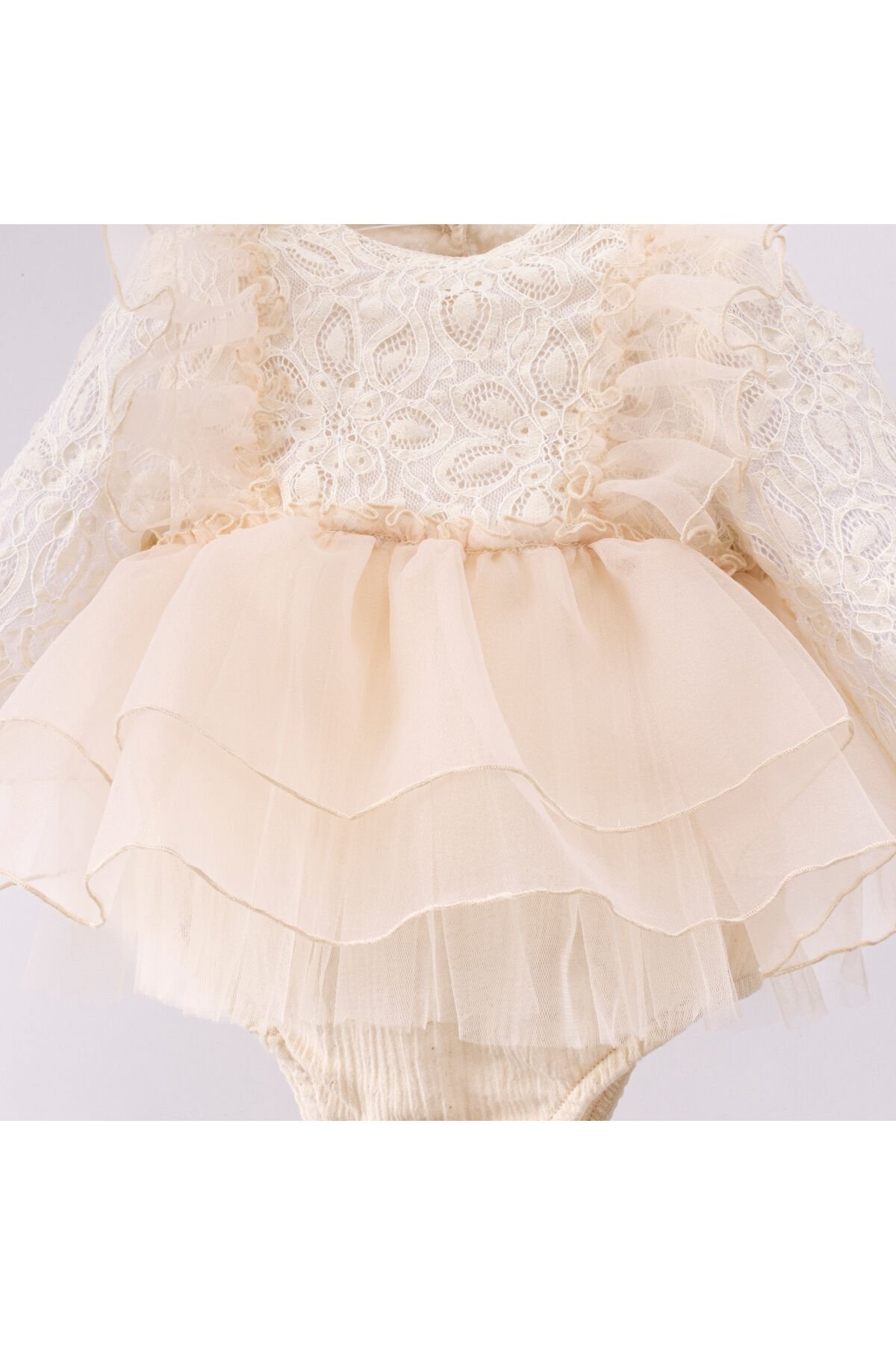 Uzun kollu tasarımı ile bebeğinizin kollarını sıcak tutarken şık bir görünüm sunar; Standart boyu sayesinde bebeklerinize rahat hareket etme özgürlüğü sağlar; Bebekler için özel olarak tasarlanmış kalıbı ile konforlu bir kullanım sunar; Dantel detayları ile zarif ve feminen bir dokunuş katarken, güpür deseniyle göz alıcı bir stil oluşturur; Astarlı yapısı sayesinde bebeğinizin cildine nazikçe dokunur ve rahatlık sağlar; Dokuma kumaşı, dayanıklılığı artırarak uzun süreli kullanım imkanı sunar; Hassas yıkama talimatlarına uygun şekilde temizlenmesi, ürünün formunu korumasına yardımcı olur; Düğmeli kapama şekli pratik kullanım sağlarken, bisiklet yaka tasarımı modern bir görünüm kazandırır; Trend ortamlarda dahi şıklığından ödün vermeyen bebekler için idealdir; Petite koleksiyonunun parçası olarak, minik prensesler için özel olarak tasarlanmıştır;
