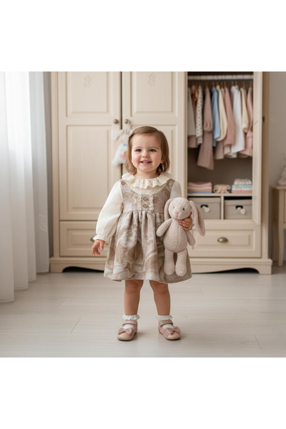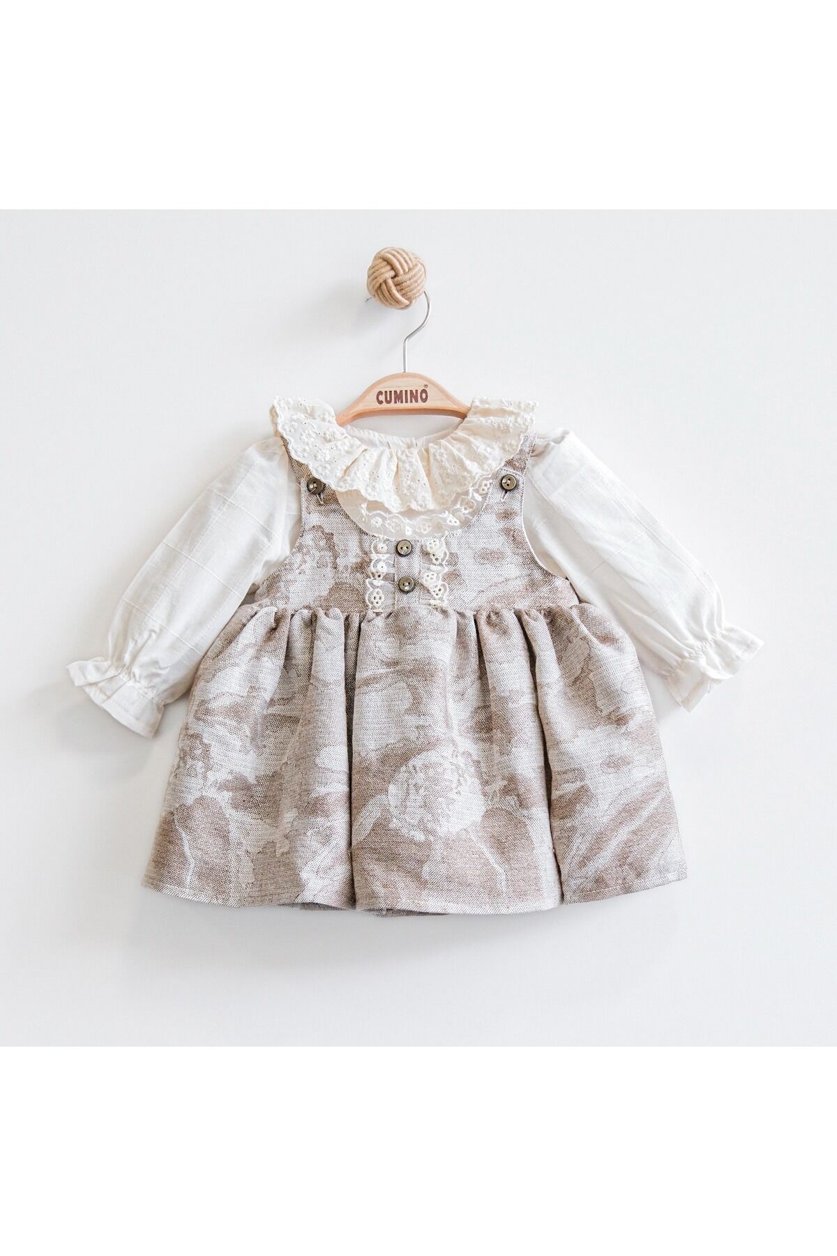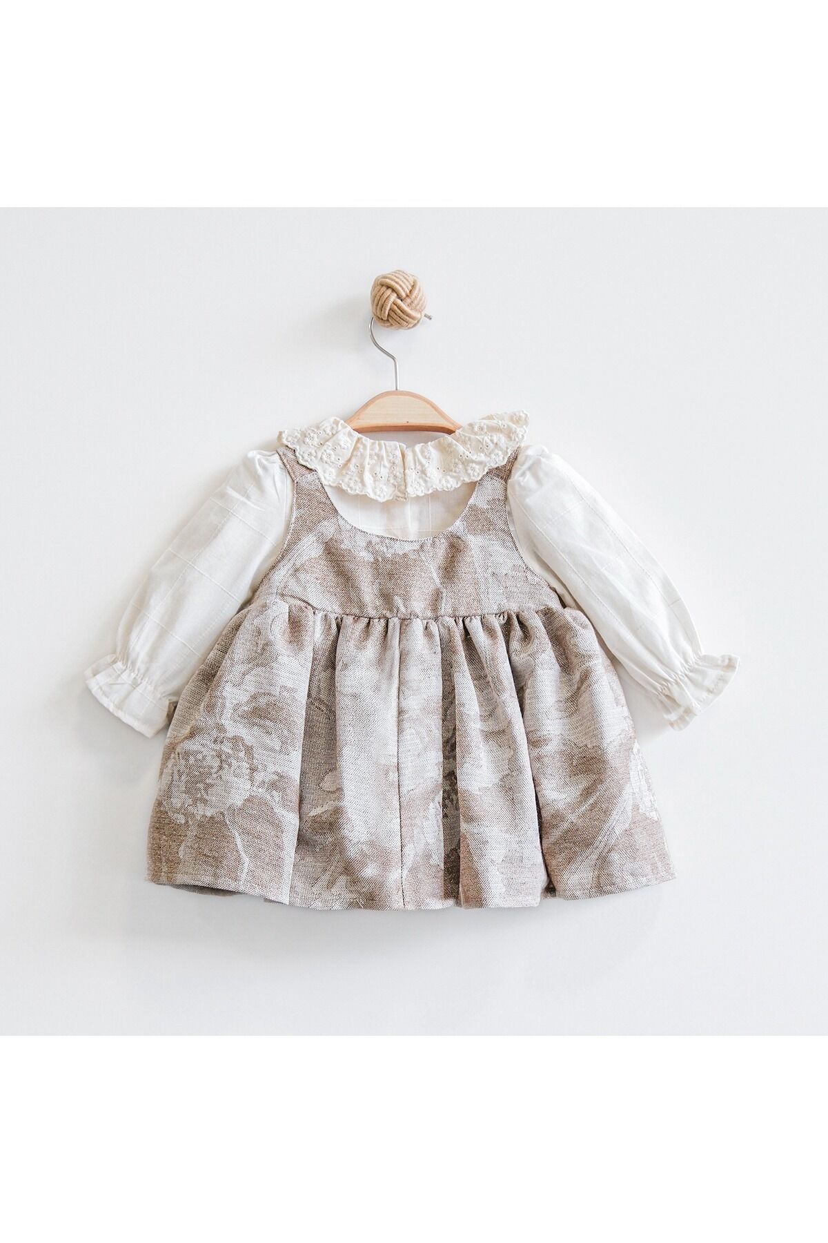 Tüm sezonlar kullanabileceğiniz olan bu takım, hafif yapısıyla serinlik hissi sunar.; - 1 adet elbise ve 1 adet iç bluzdan oluşan paketiyle tam bir uyum sağlar.; - Zarif nakış teknikleri ile işlenmiş danteller, şıklığına şıklık katar.; - Elbisenin içindeki bluz, dantelin zarif detaylarıyla harika bir kombin oluşturur.; - Makinede hassas yıkama imkanı sayesinde kolayca temizlenebilir; böylece uzun süre ilk günkü gibi kalır.; - Astarlı yapısı ile rahatlık ve konforu ön planda tutar.; - İnce kumaşı sayesinde yaz sıcaklarında bile serin kalmanızı sağlar.; - Cepsiz tasarımı modern ve minimalist bir görünüm sunarken, dantel detayları ile feminen dokunuşlar ekler.; - Standart boy kesimiyle her vücut tipine uyum sağlayacak şekilde dizayn edilmiştir.; - Bebek yaş grubuna hitap eden bu takım, minik prensesler için idealdir.; - Dokuma kumaşı dayanıklılığı artırırken aynı zamanda nefes alabilir yapıda olup cildi tahriş etmez.; - Regular kalıp seçeneğiyle rahat hareket etme özgürlüğü tanır.; - Türkiye'de üretilmiş olması yerel üretim standartlarına bağlı kalındığını gösterirken kaliteyi de garanti eder.; - Bebe yakası ile hem şık hem de pratik kullanım imkanı sunar.; - Uzun kollu tasarım mevsim geçişlerinde de tercih edilebilirliği arttırır.; - Trend deseniyle güncel moda akımları takip ederek stil sahibi görünmenizi sağlar.