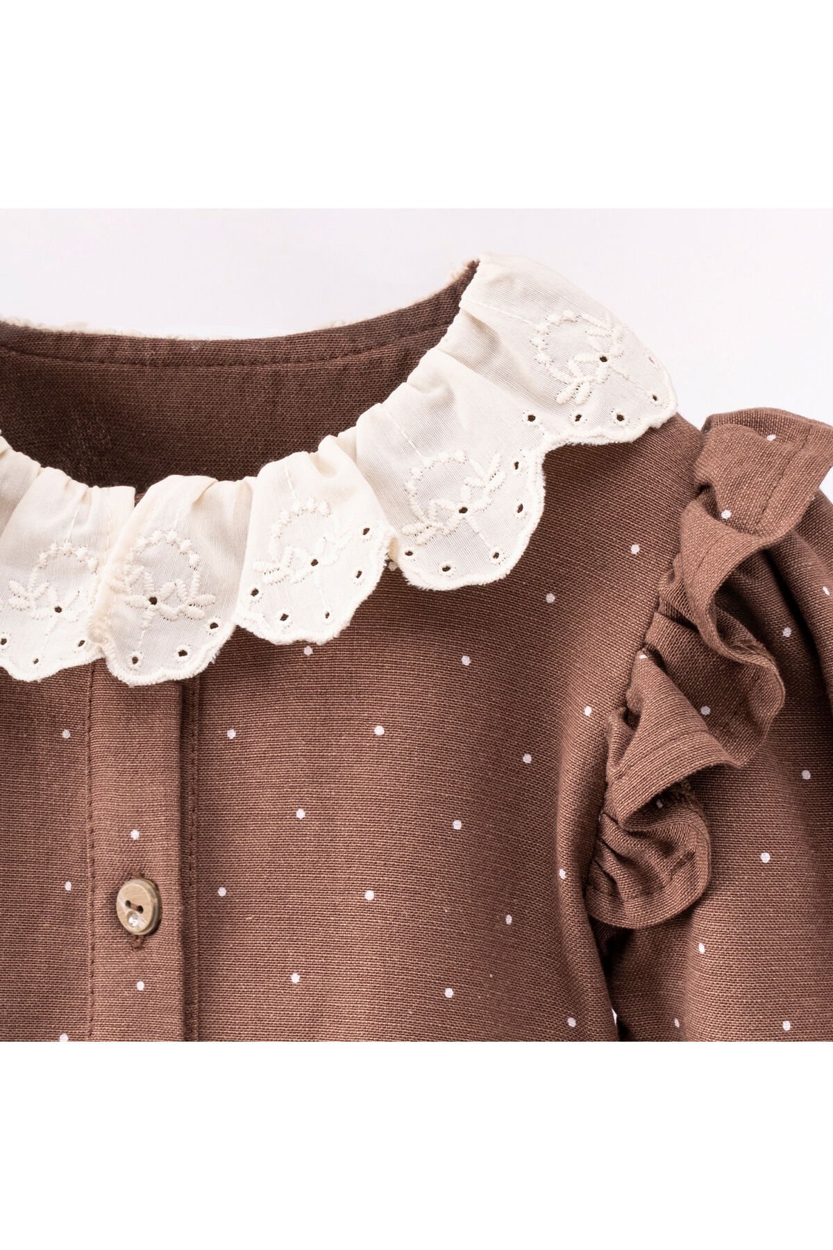 - Bebeğinizin cildine nazik dokunuşuyla pamuklu kumaştan üretilmiştir, yumuşak ve konforlu bir kullanım sunar.; - Standart boy ve regular kalıp ile rahat hareket etme özgürlüğü sağlar; 9-12 ay beden aralığına uygun tasarımıyla her bebek için idealdir.; - Uzun kollu ve bebe yaka tasarımı ile mevsim geçişlerinde ve serin havalarda bebeğinizi sıcak tutar.; - Puantiyeli deseniyle şık ve neşeli bir görünüm kazandırırken, kanguru cebi pratik kullanım imkanı sunar.; - Düğmeli kapama şekli sayesinde kolayca giydirilip çıkartılabilir; astarsız yapısıyla rahatlık sağlar.; - Fisto detayları ile modern ve şık bir dokunuş eklerken, Petite koleksiyonunun zarif çizgilerini yansıtır.; - Gündüz veya gece kullanımına uygun olarak tasarlanmıştır; her ortamda bebeğinizin rahatlığını düşünerek hazırlanmıştır.; - Hassas yıkama talimatına uyarak ürünün uzun ömürlü kullanımını garanti edebilirsiniz