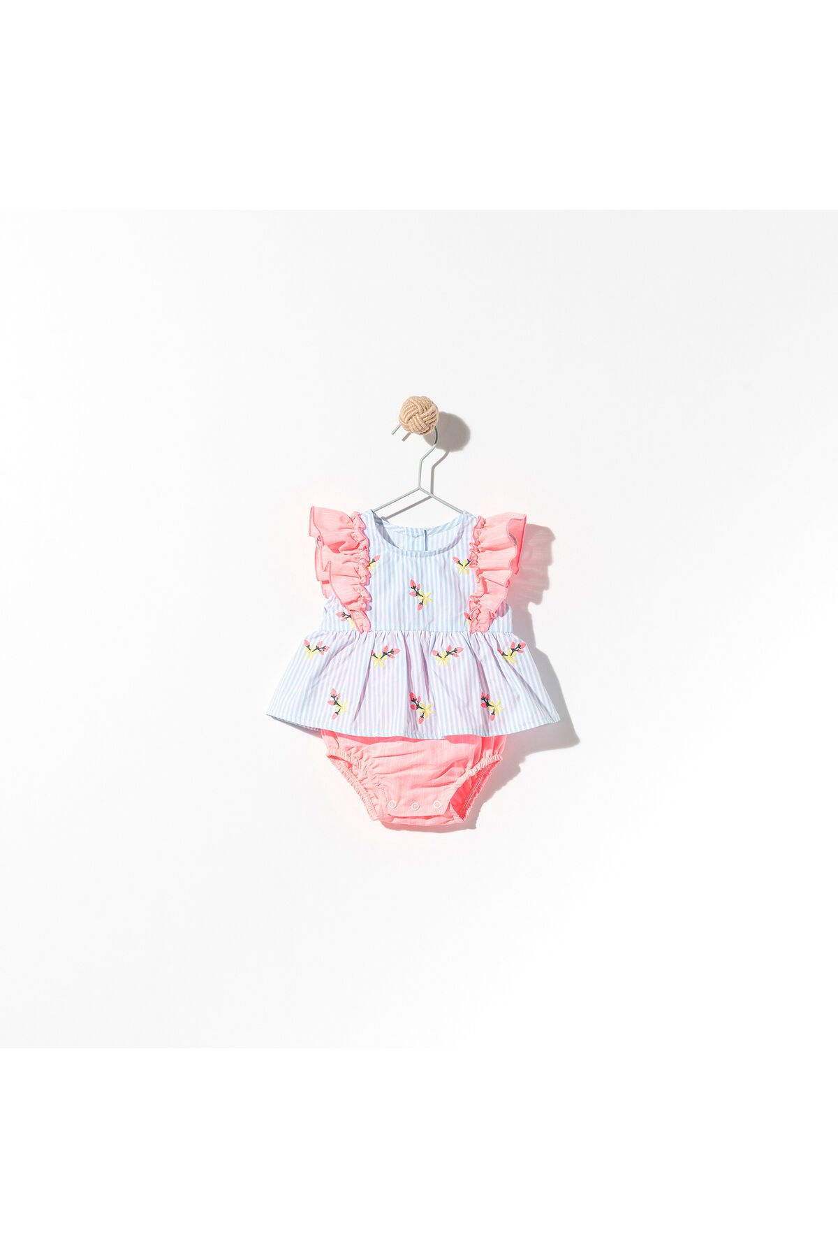 Bebeğinizin cildine nazik dokunuşuyla %100 pamuk materyal bileşeni sayesinde gün boyu rahatlık sağlar; Standart boy ve regular kalıp ile bebeğinizin hareket özgürlüğünü kısıtlamaz, konforlu bir kullanım sunar; Canlı ve neşeli çiçek desenleriyle bebeklerinize baharın tazeliğini yansıtır, şık bir görünüm kazandırır; Dokuma kumaş tipi, dayanıklılığı artırarak ürünün uzun süreli kullanımına olanak tanır; Bebekler için özel olarak tasarlanmış bu romper, onların hassas cilt yapısına uygun olarak üretilmiştir;