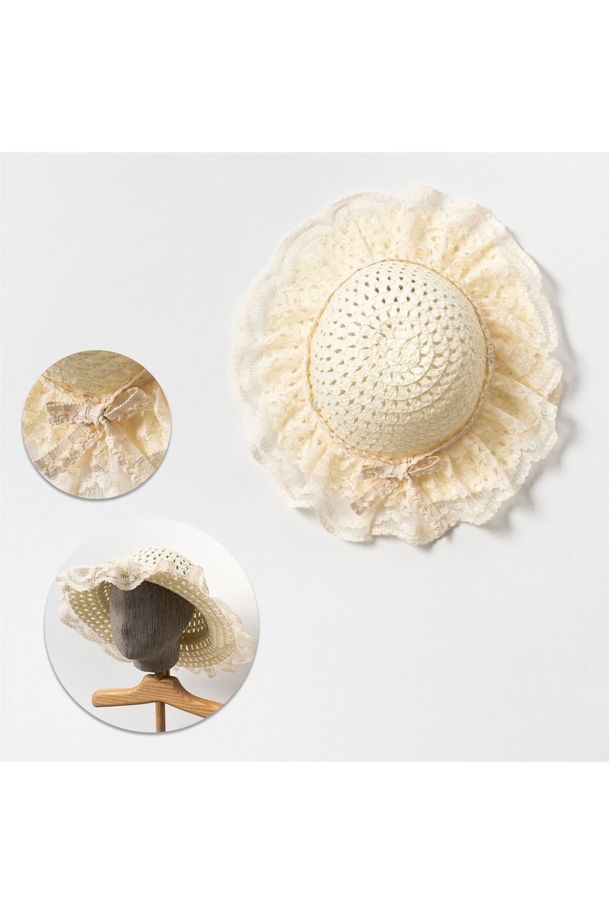 Dantelli Fistolu Hasır görünümlü Şapka Standart bedendir; 2; 6 yaşa uygundur;