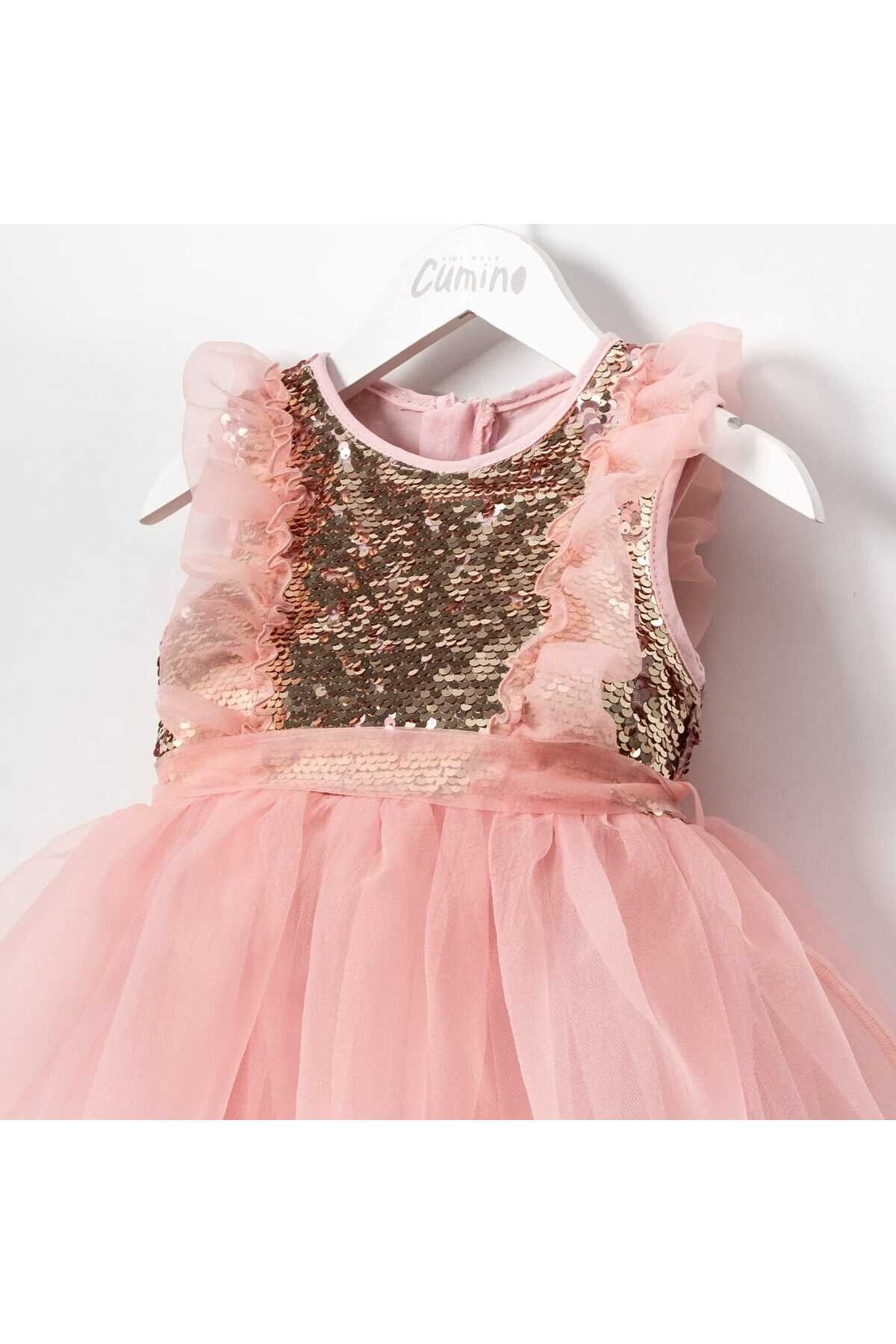 Dream Kız Çocuk Payetli Pembe Şifon Elbise