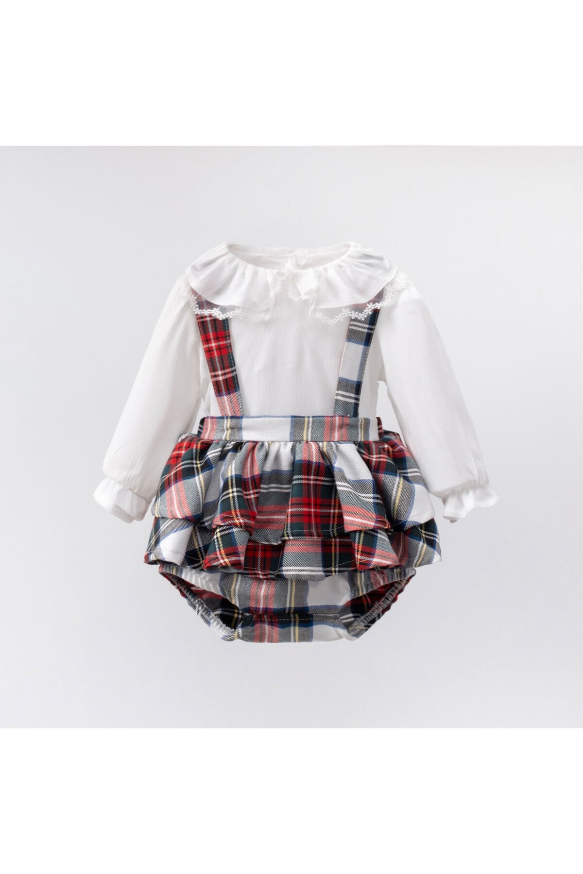 Ekoseli 3'lü Kız Bebek Takım