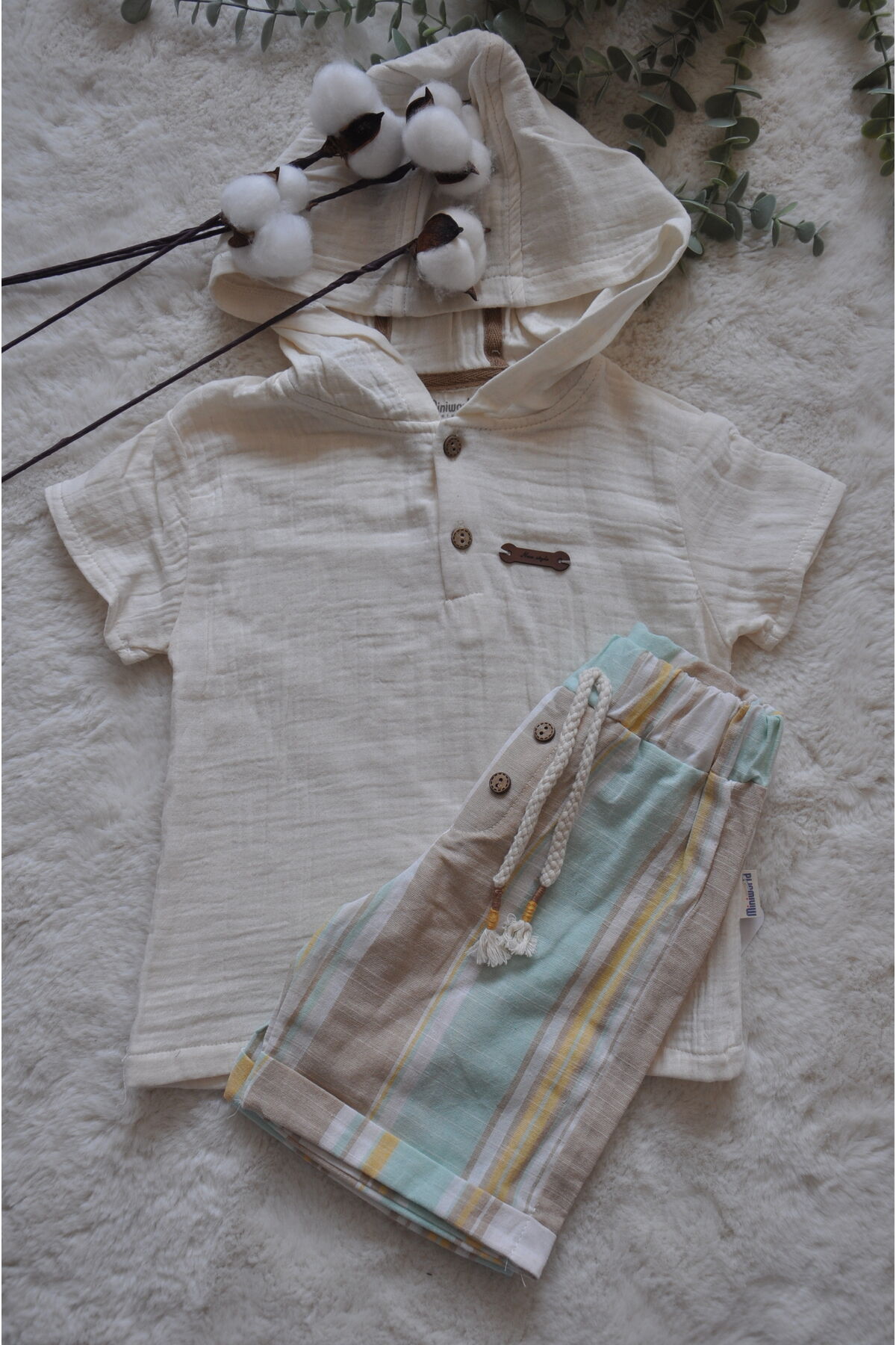 Erkek Çocuk Şortlu Kapişonlu Müslin Takım