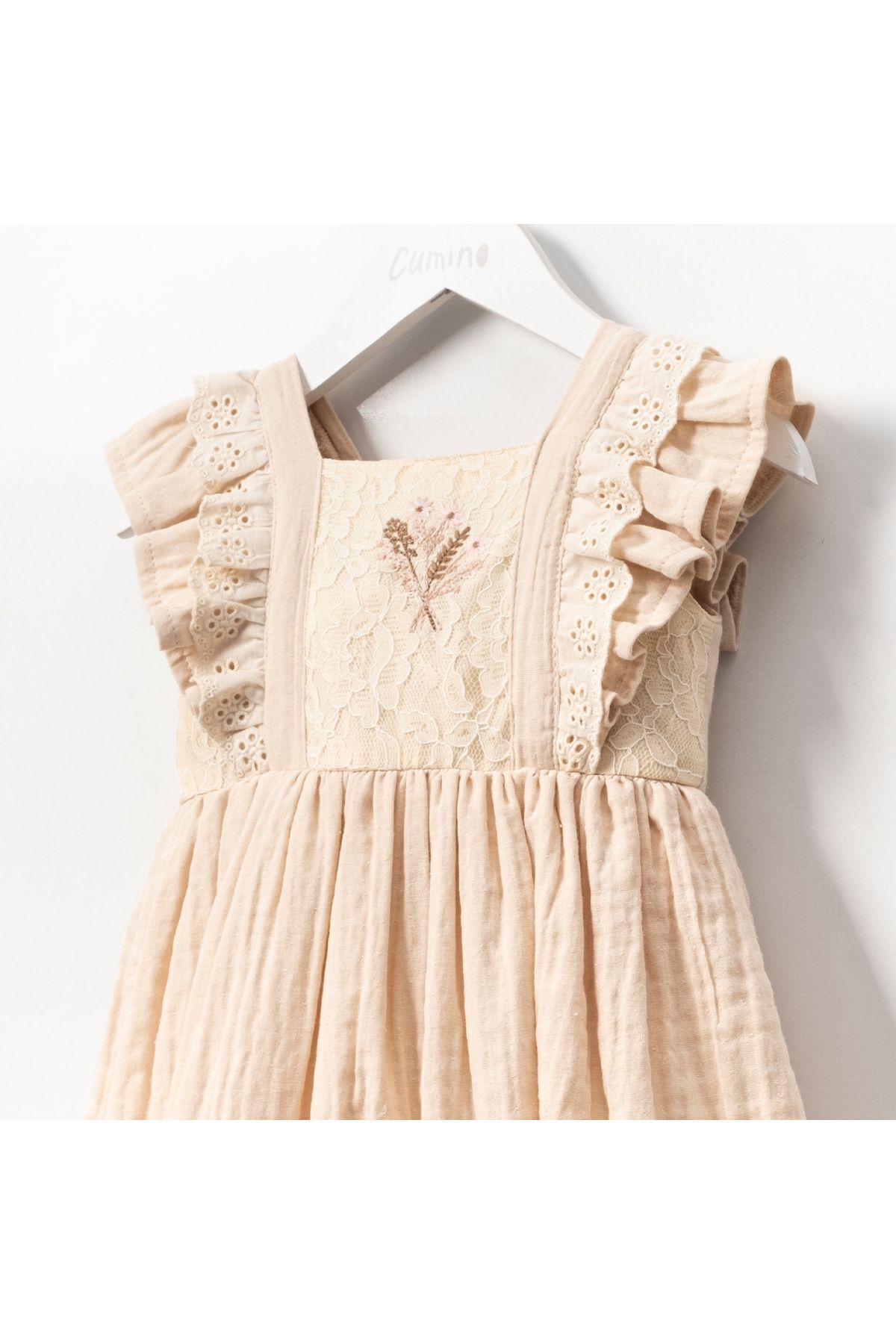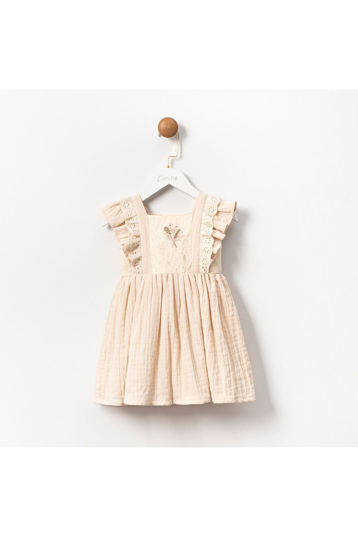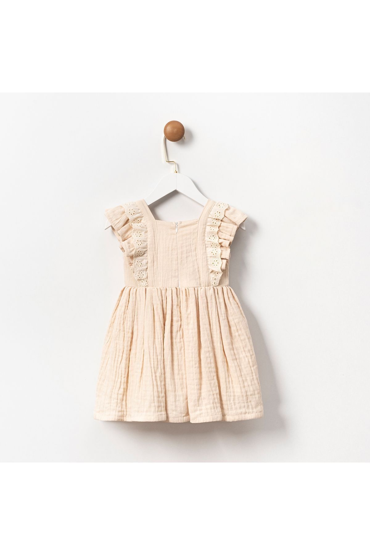 Fırfır Kollu Müslin Kız Çocuk Elbisesi