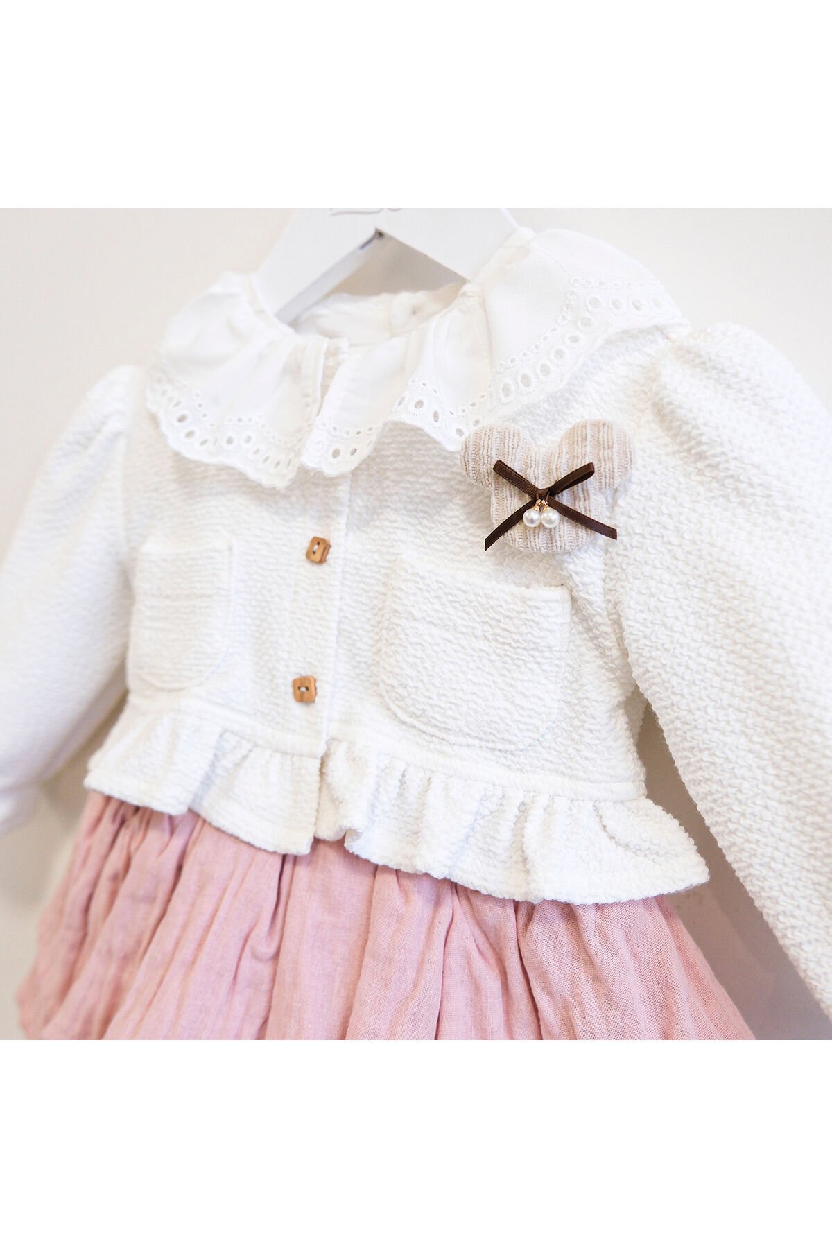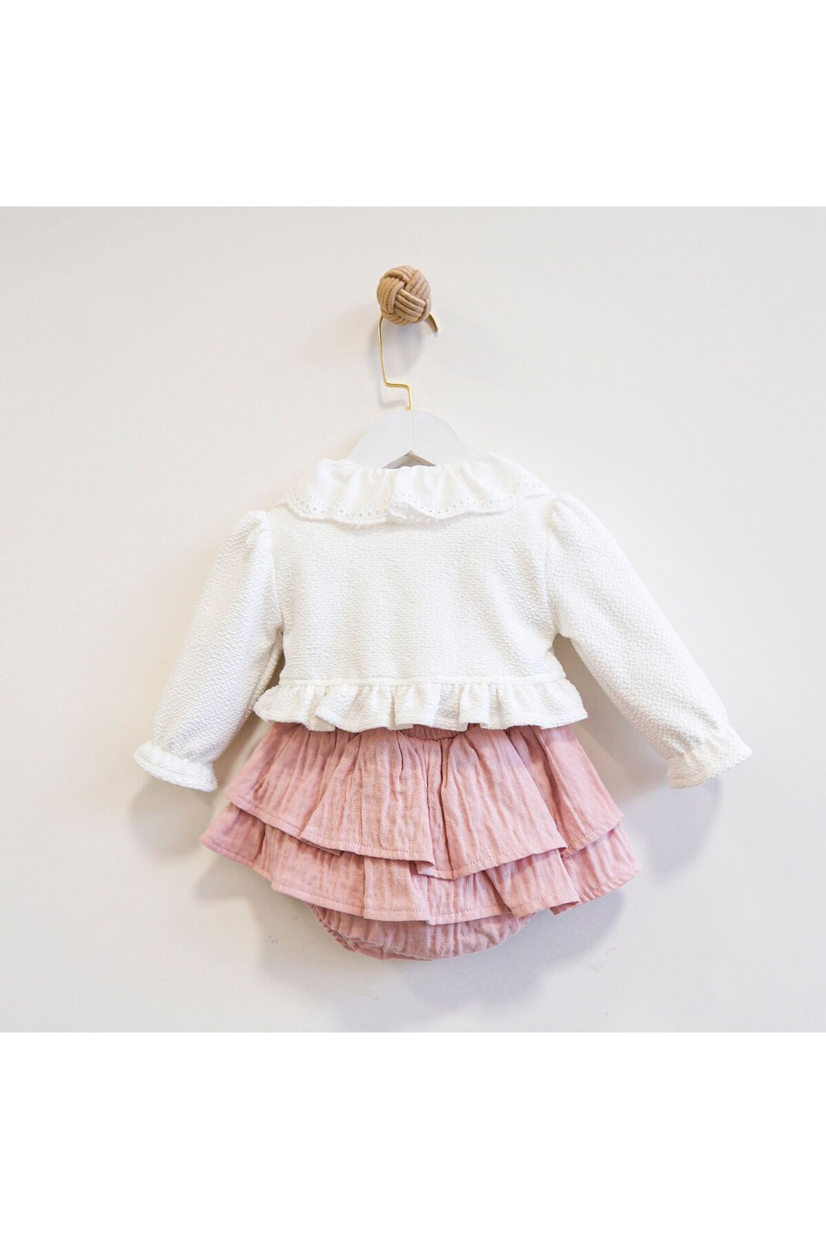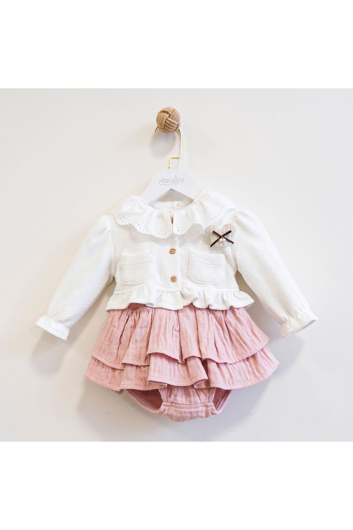 - Üç parçadan oluşan Gloria hırkalı kız bebek takım, şıklığı ve konforu bir arada sunar.; - Bebe yaka detayı ile zarif bir görünüm kazandırırken, yarım pat düğmeli kapama şekli pratik kullanım sağlar.; - Tüm sezonlarda rahatlıkla tercih edebileceğiniz orta kalınlıkta örgü dokuma kumaşıyla mevsim geçişlerinde idealdir.; - Makinede hassas yıkama imkanı sayesinde kolay bakım avantajına sahip olan bu takım, uzun süreli kullanım için uygundur.; - Kısa boy tasarımı ile hareket özgürlüğü tanırken, düz deseniyle zamansız bir stil oluşturur.; - Standart kol tipi ve regular kalıp ile her bedene uyum sağlayan Gloria hırkalı kız bebek takımı, günlük giyimde vazgeçilmez olacak.; - Alt-üst takım olarak tasarlanmış bluz-şort kombiniyle hem şık hem de fonksiyonel bir seçenek sunar.;