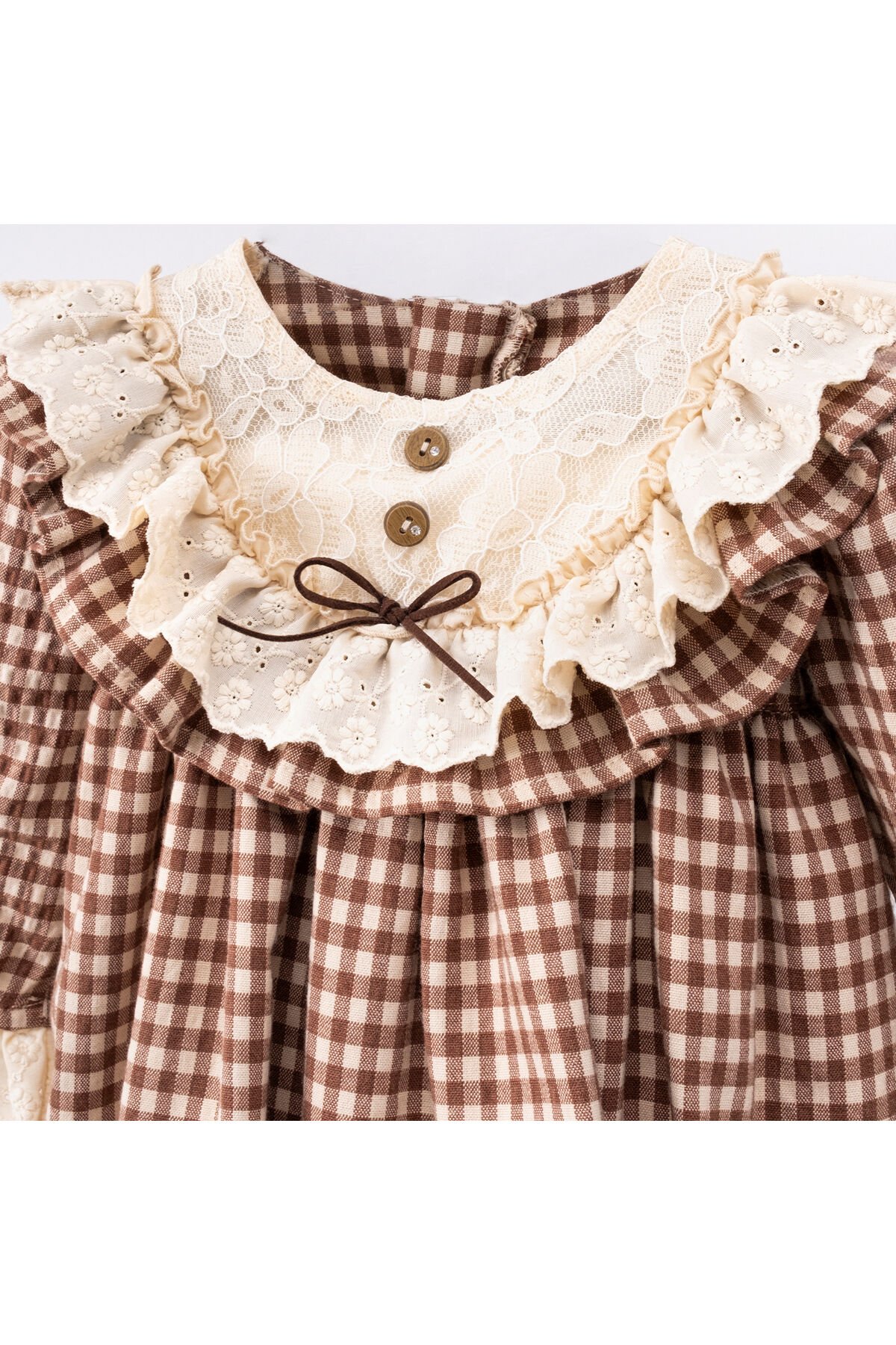 Fırfırlı tasarımı ile şık ve neşeli bir görünüm sunar, bebeklerinize hareket özgürlüğü sağlar; Parti koleksiyonuna özel tasarlanmış, özel günlerde minik prenseslerinizi ön plana çıkarır; Pamuklu materyali sayesinde bebeğinizin cildine nazik dokunuşlar sunar ve konforlu bir kullanım sağlar; Uzun kollu yapısıyla mevsim geçişlerinde ideal koruma ve şıklığı bir arada sunar; Regular kalıp ile rahat bir oturuş sağlar, hareket serbestliği tanır; Düğmeli kapama şekli pratik kullanım imkanı verirken, kolay giydirme ve çıkarma olanağı tanır; Bebek & çocuk yaş grubuna uygun olarak tasarlanmıştır; miniklerinize özel konfor ve stil sunar; Büzgülü/fırfırlı kol detayları ile modern ve dinamik bir görünüm kazandırır; Ekose/kareli deseniyle zamansız bir tarz yaratırken, her ortamda dikkat çekici bir stil oluşturur; Dokuma kumaş tipi dayan;