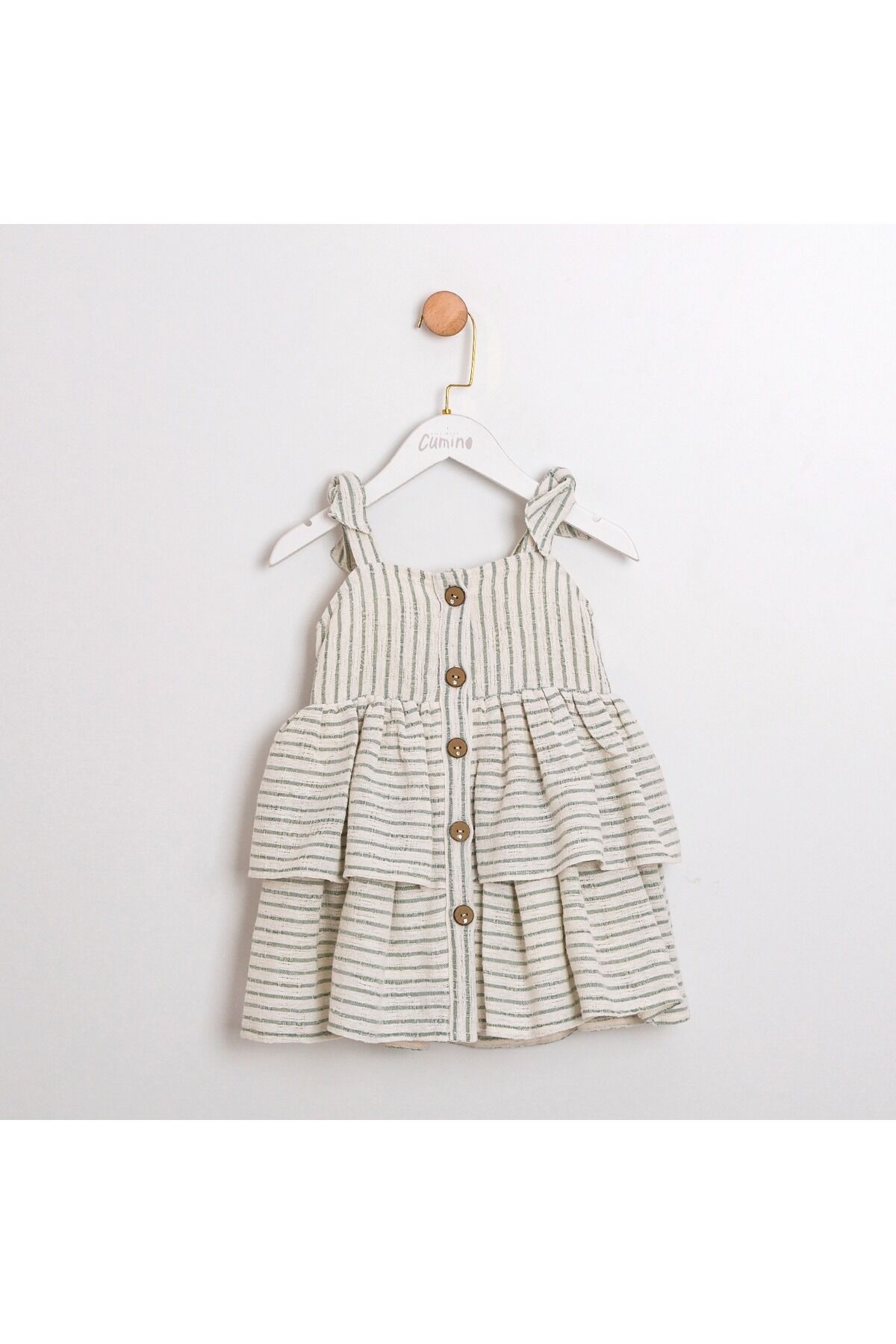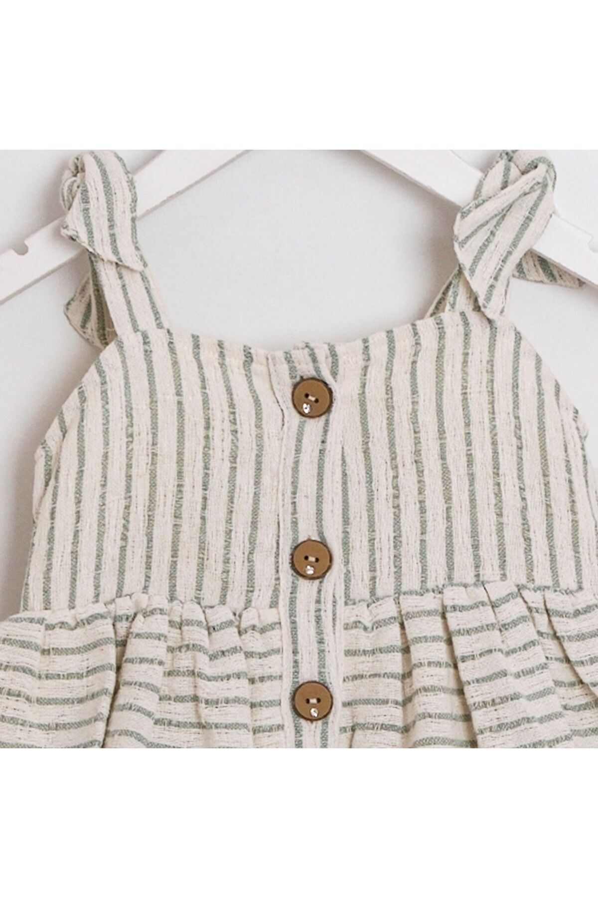 - %40 pamuk, %25 polyester, %20 akrilik ve %15 viskon içeriğiyle yumuşak dokunuşu ve dayanıklılığı bir arada sunar.; - İki kat etekli tasarımı ile hem şık hem de rahat bir kullanım sağlar; düğmeli kapama detayı pratik kullanım sunar.; - İnce yapısı sayesinde yaz ayları için idealdir; hafifliğiyle sıcak günlerde konforlu hissetmenizi sağlar.; - Zarif koleksiyonun parçası olarak tasarlanmıştır; günlük kullanım için şıklığı ve rahatlığı ön planda tutar.; - Düğmeli detayları ile kolay giyilip çıkartılabilir; pratikliği artırarak zamandan tasarruf sağlar.; - Hassas yıkama talimatlarına uygun şekilde bakımı yapıldığında uzun ömürlü kullanım vaat eder.; - Cepsiz yapısıyla sade ve şık bir görünüm sunarken, astarlı olması ekstra koruma ve konfor sağlar.; - Günlük kullanım için ideal olan bu elbise, her ortamda rahatlıkla tercih edilebilir; kolsuz tasarımı serin tutar.; - Çocuklar için uygun yaş grubuna sahip olan bu elbise, kloş siluetiyle hareket özgürlüğü sunarken şıklığından ödün vermez.; - Dokuma kumaş tipi sayesinde dayanıklılığı artırarak sık kullanımlarda bile formunu korur.; - Standart boy uzunluğuyla farklı vücut tiplerine uyum sağlayarak herkes tarafından rahatlıkla tercih edilebilir.; - TR menşeli olmasıyla yerel malzemelerden üretilmiş olup sürdürülebilirlik ilkesine katkıda bulunurken kalite standartlarını da korur.