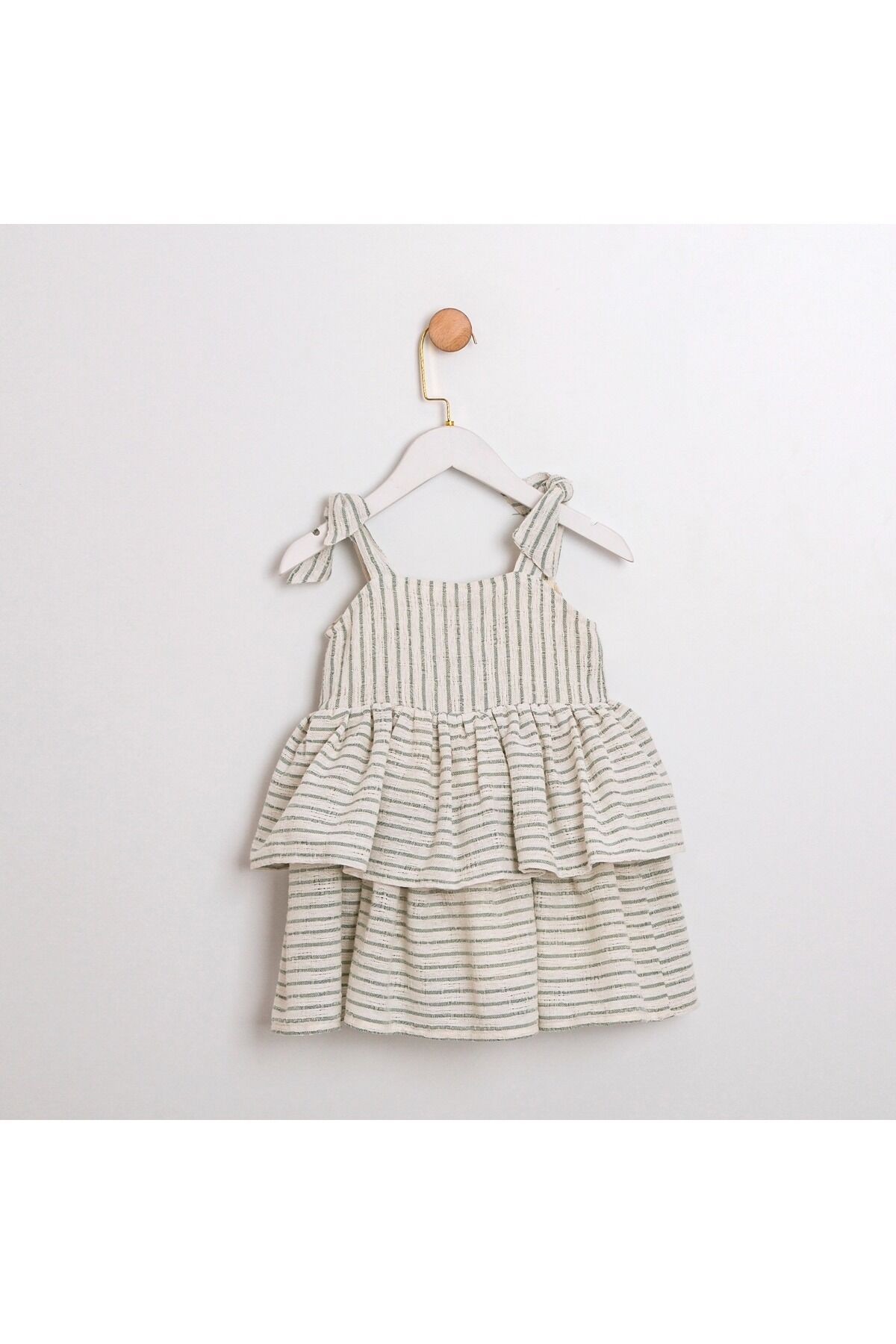 Karina Soft Kumaş İki Kat Etekli Çizgili Askılı Elbise