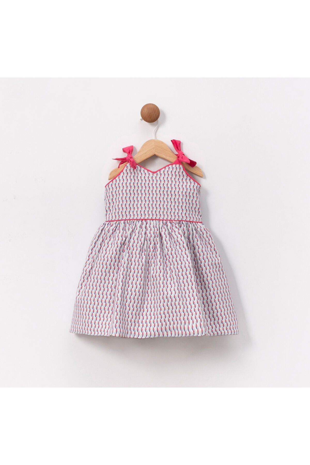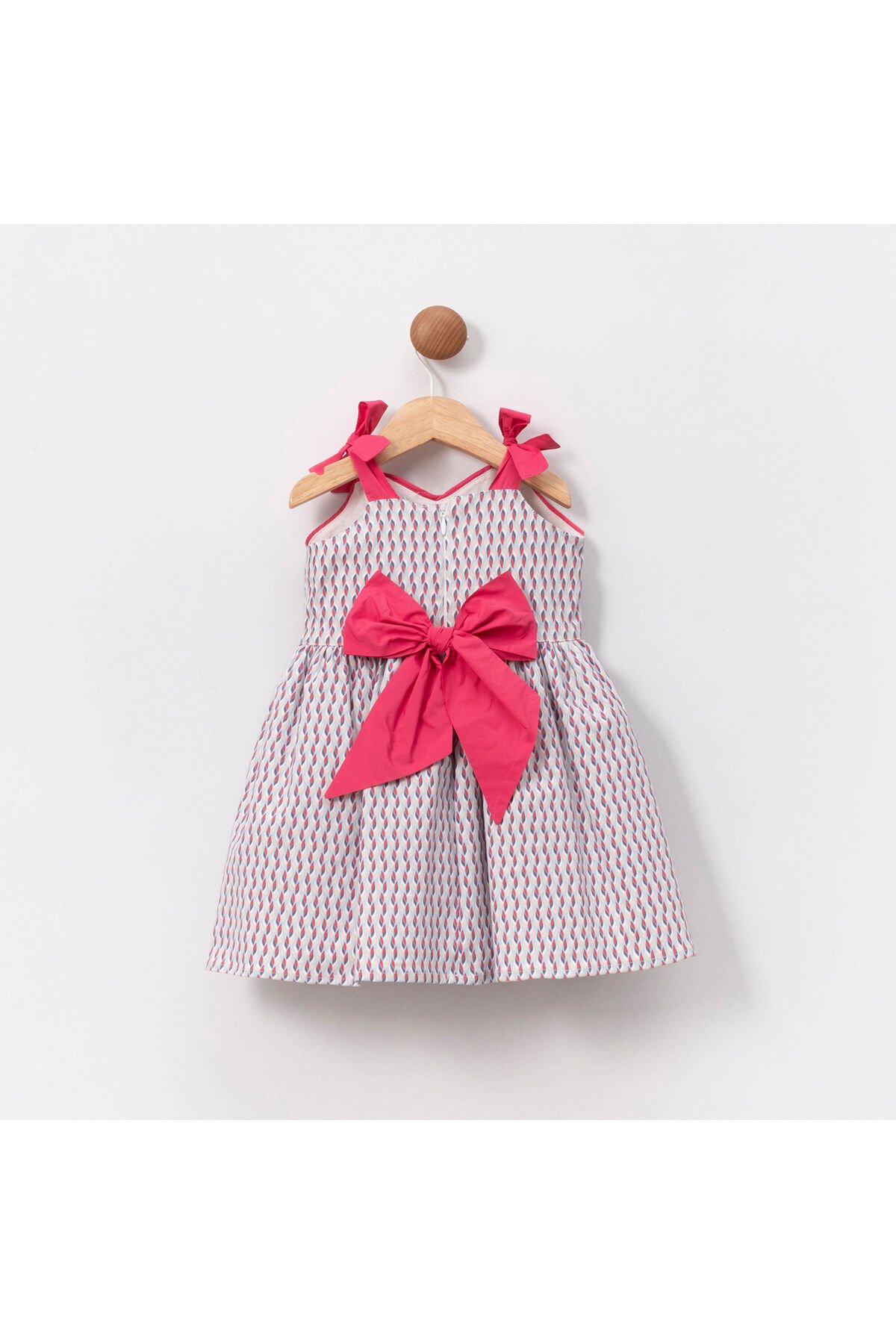 - Zarif tasarımıyla dikkat çeken bu elbise, fiyonk detaylarıyla şıklığına şıklık katıyor.; - Astarlı yapısı sayesinde rahatlıkla kullanabileceğiniz bu elbise, yaz aylarında serinlik sağlar.; - Fermuarlı kapama özelliği ile kolayca giyilip çıkarılabilir; pratik kullanım sunar.; - Arkadan fiyonklu askıları ve kemer detayı ile feminen bir görünüm kazandırırken, çocuklara özel tasarlanmıştır.; - İnce kalınlığı ve cepsiz yapısıyla hafif ve konforlu bir deneyim sunar.; - Makinede hassas yıkama imkanı sayesinde uzun süreli kullanım için idealdir.; - Jile siluetiyle modern ve zarif bir duruş sergilerken, regular kalıbıyla her vücut tipine uyum sağlar.; - Standart boyu ile farklı boylardaki çocuklar için uygundur; TR menşeiyle yerel üretim avantajını yaşatır.; - Günlük ortamlarda rahatça tercih edebileceğiniz renkli deseniyle enerjik ve canlı bir stil oluşturmanızda yardımcı olur.