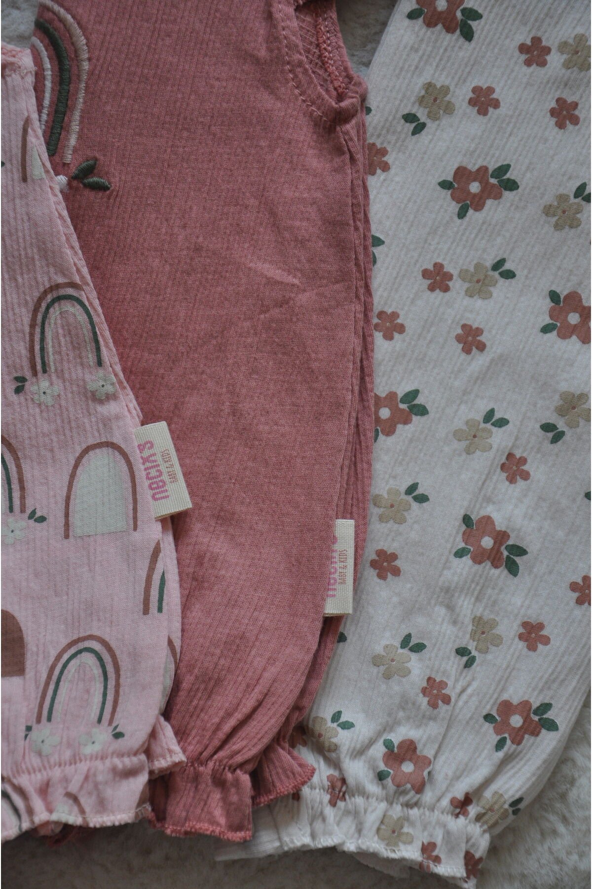 Bebeklerin hassas cildine özel pamuklu materyal kullanılarak üretilmiştir, yumuşak dokusuyla bebeğinizin konforunu ön planda tutar; Sevimli çiçek desenleriyle süslenmiş tasarımı, bebeğinizin şıklığını ve neşesini yansıtır; Dokuma kumaş tipi sayesinde dayanıklılık ve esneklik sunar, hareket özgürlüğünü kısıtlamaz; 3 parçadan oluşan set halinde sunulan bu zıbınlar, pratik kullanım için idealdir; her gün farklı bir kombin oluşturabilirsiniz; Regular kalıp ile rahat bir oturuş sağlar ve bebeğinizin vücut hatlarına uyum sağlayarak konforlu bir deneyim sunar; Günlük kullanım için uygun olan bu set, evde ya da dışarıda rahatlıkla tercih edilebilir; casual tarzıyla her ortama uyum sağlar;
