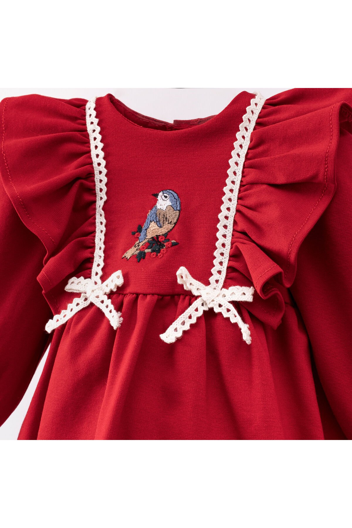 - Standart boy ve regular kalıp ile rahat bir kullanım sunar.; - Dokuma kumaş yapısı, dayanıklılığı ve konforu bir arada sağlar.; - Bebek ve çocuklar için özel olarak tasarlanmış, şık ve eğlenceli bir görünüm kazandırır.; - Canlı kırmızı rengi ile dikkat çeker ve enerjik kombinler oluşturmanıza olanak tanır.; - Büzgülü/fırfırlı kol tasarımı ile hareket özgürlüğü sunarken, şıklığından ödün vermez.; - Bisiklet yaka kesimi sayesinde rahat bir giyim deneyimi sağlar.; - Düz deseniyle sade ve zamansız bir stil yaratır; her türlü aksesuarla kolayca kombinlenebilir.; - Tekli paket içeriğiyle pratik bir alışveriş deneyimi sunar; ekstra parçalarla uğraşmanıza gerek kalmaz.; - Cepsiz tasarımı sayesinde sade ve şık bir görünüm elde edilirken, pratik kullanım imkanı sağlar.; - Düğmeli kapama şekliyle kolay giyilip çıkartılabilir; bebeğinizin veya çocuğunuzun bağımsızlığını destekler.; - Uzun kol boyu ile mevsim geçişlerinde ideal koruma sağlar.; - Orta kalınlıkta kumaşı, mevsim geçişlerinde ideal konforu sunar.; Astarsız yapısıyla rahatlık ve nefes alabilirlik ön planda tutulmuştur; cilt dostudur.; - Fırfırlı detaylarıyla hareketli ve neşeli bir görünüm kazandırır; bebek gardırobunun vazgeçilmez parçası haline gelir.; - Regular silueti sayesinde vücuda tam otururken hareket serbestliği tanır; gün boyu rahatlık sağlar.; - Günlük ortamlarda rahatlıkla tercih edilebilecek tarzda tasarlanmıştır; okuldan parka her yerde şıklığınızla fark yaratın.; - Nakış tekniği ile detaylandırılmış kuş nakışları, el emeğiyle hazırlanmış zarif bir dokunuş katmaktadır.; - Sürdürülebilirlik detayının bulunmamasına rağmen, kaliteli malzemeler kullanılarak üretilmiştir; uzun süreli kullanım vaat eder.; - Kemersiz yapısıyla ekstra aksesuar ihtiyacını ortadan kaldırarak pratiklik sunar; ekstra aksesuarlarla uğraşmanıza gerek kalmaz.; - Narin yıkama talimatına uyarak ürününüzün ilk günkü gibi kalmasını sağlayabilirsiniz; bakım kolaylığı sağlar.