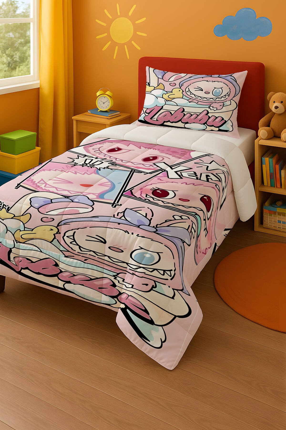 Labubu Tek Kişilik Yorgan ve Yastık Kılıfı 150x220