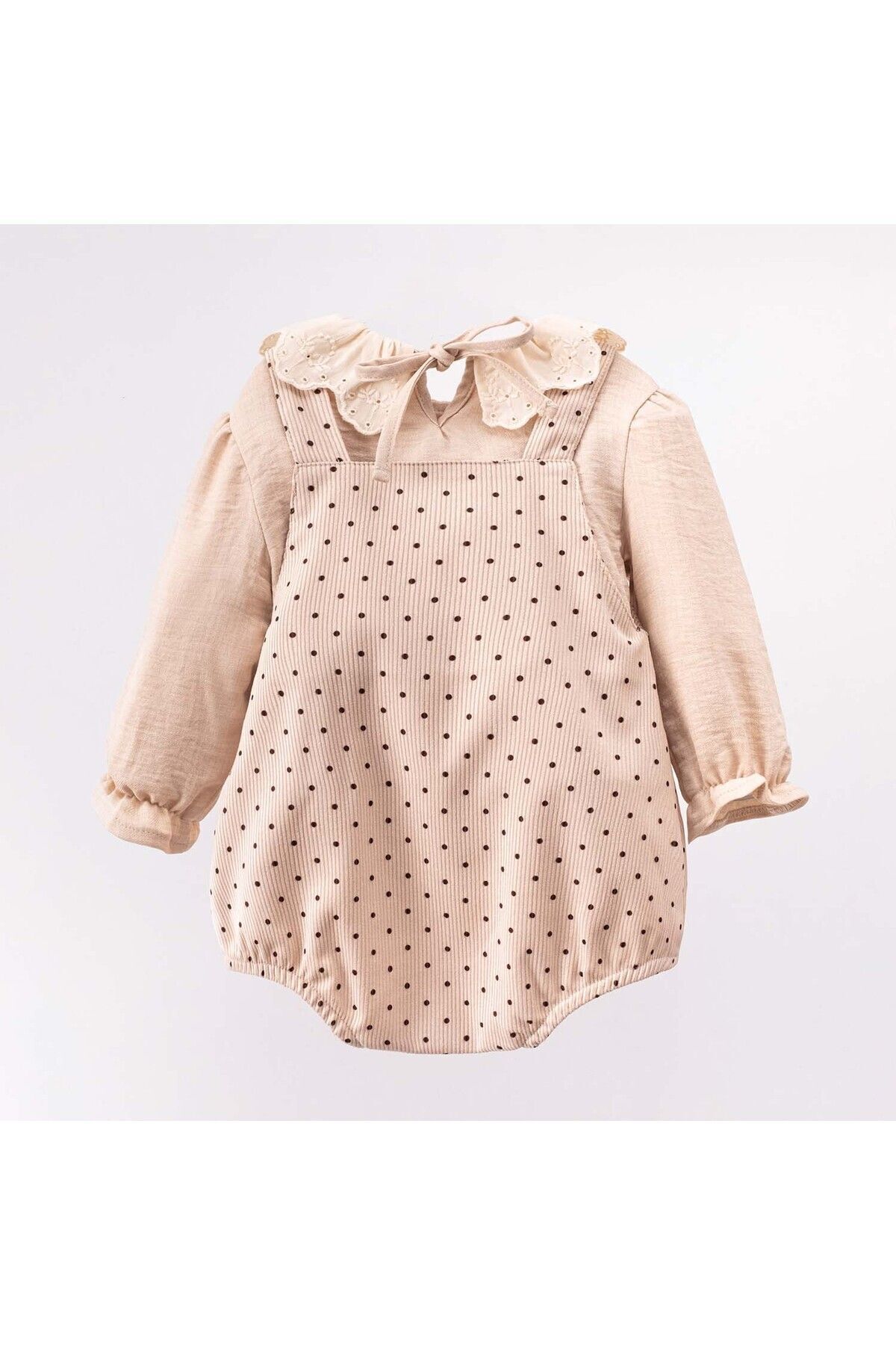 Yumuşak dokusuyla bebeğinizin cildine nazikçe dokunan kadife materyal, konforlu bir kullanım sunar; Bebe yaka tasarımı ile şık ve zarif bir görünüm sağlar, miniklerinizi sıcak tutar; Pratik düğmeli kapama şekli sayesinde kolayca giydirilip çıkartılabilir, ebeveynler için de rahatlık sağlar; Standart boyu ile bebeklerinize tam oturur ve hareket özgürlüğünü kısıtlamaz; Askılı kol tipi, yaz aylarında serinlik ve rahatlık sunarken, uzun kolları ile mevsim geçişlerinde ideal koruma sağlar; Petite koleksiyonunun bir parçası olarak tasarlanmış bu tulum, bebeklerinize şıklığı ve zarafeti bir arada sunar; Pamuklu materyal bileşeni sayesinde nefes alabilir yapıda olup, cilt dostudur ve terlemeyi minimize eder; Hassas yıkama talimatına uygun şekilde temizlenmesi ürün ömrünü uzatır ve kalitesini korur; Bebek yaş grubuna özel olarak tasarlanmıştır; miniklerin konforunu ve güvenliğini;
