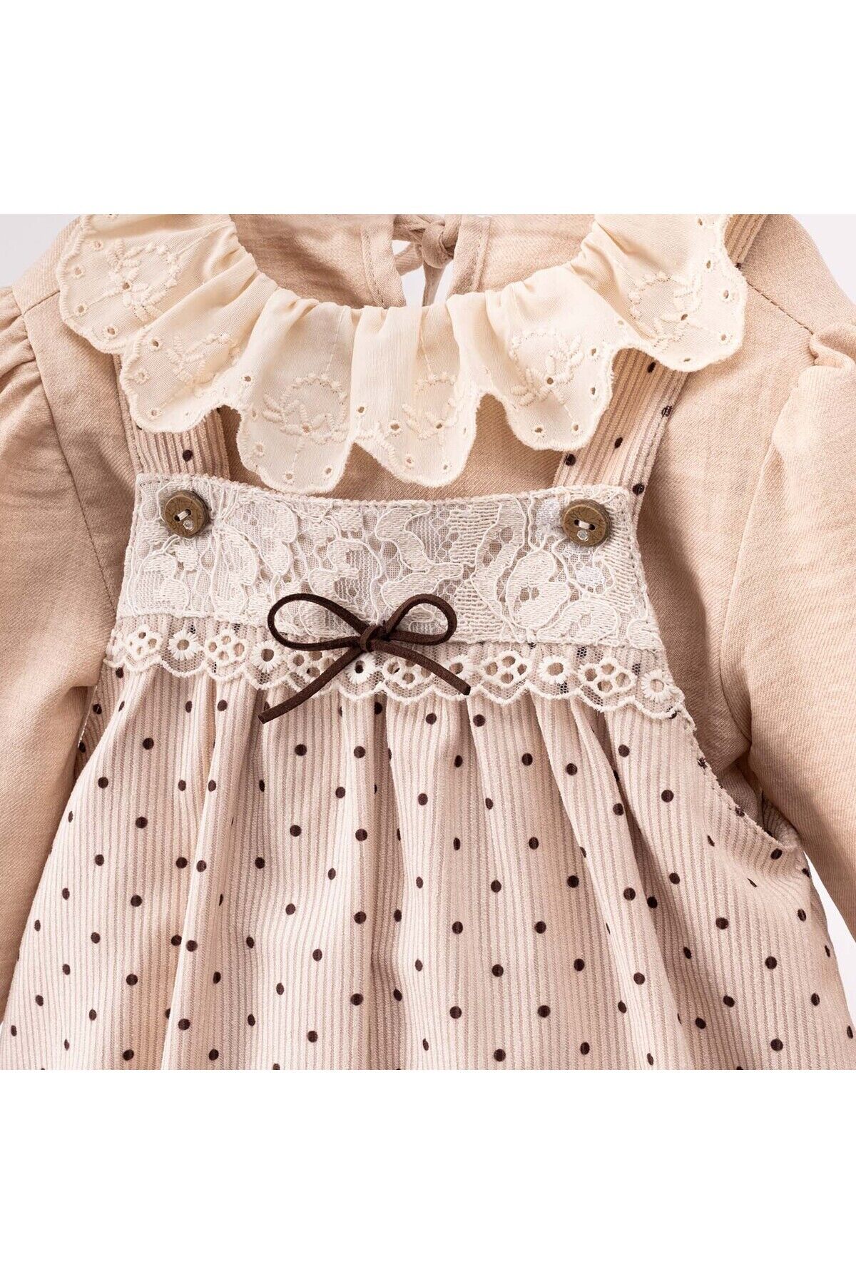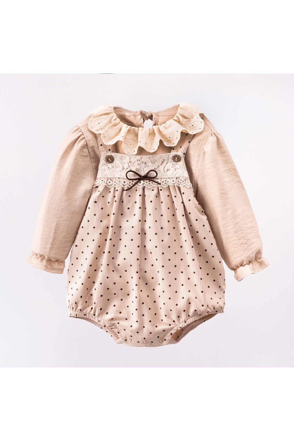Yumuşak dokusuyla bebeğinizin cildine nazikçe dokunan kadife materyal, konforlu bir kullanım sunar; Bebe yaka tasarımı ile şık ve zarif bir görünüm sağlar, miniklerinizi sıcak tutar; Pratik düğmeli kapama şekli sayesinde kolayca giydirilip çıkartılabilir, ebeveynler için de rahatlık sağlar; Standart boyu ile bebeklerinize tam oturur ve hareket özgürlüğünü kısıtlamaz; Askılı kol tipi, yaz aylarında serinlik ve rahatlık sunarken, uzun kolları ile mevsim geçişlerinde ideal koruma sağlar; Petite koleksiyonunun bir parçası olarak tasarlanmış bu tulum, bebeklerinize şıklığı ve zarafeti bir arada sunar; Pamuklu materyal bileşeni sayesinde nefes alabilir yapıda olup, cilt dostudur ve terlemeyi minimize eder; Hassas yıkama talimatına uygun şekilde temizlenmesi ürün ömrünü uzatır ve kalitesini korur; Bebek yaş grubuna özel olarak tasarlanmıştır; miniklerin konforunu ve güvenliğini;