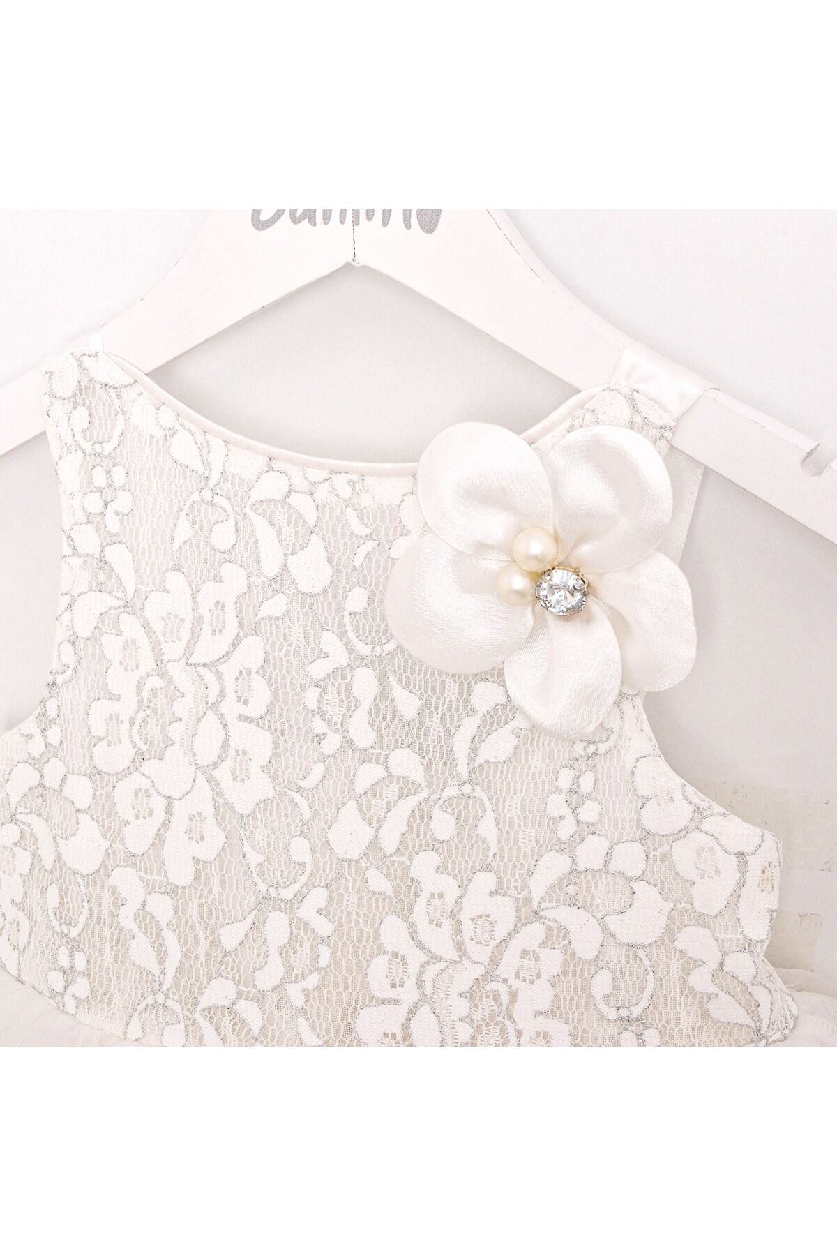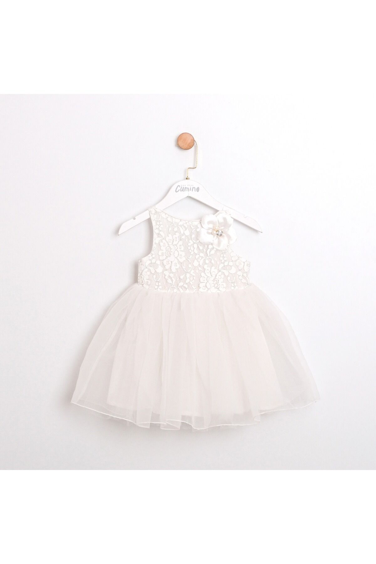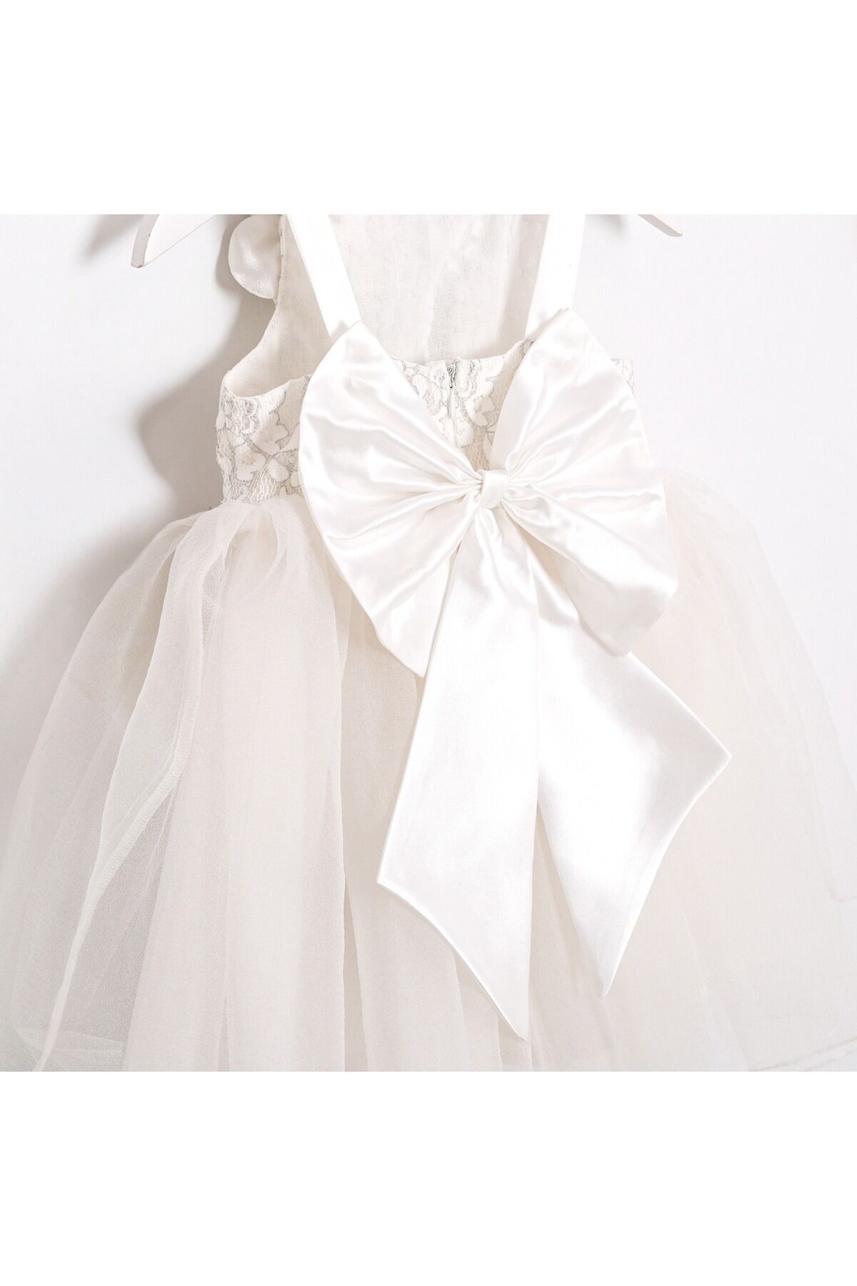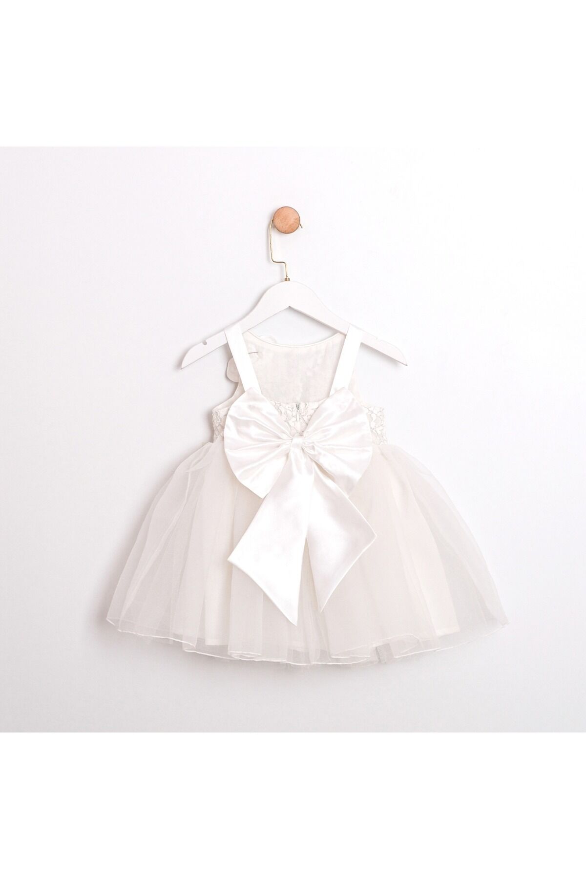 Lina Arkası Fiyonklu Beyaz Dantelli Elbise
