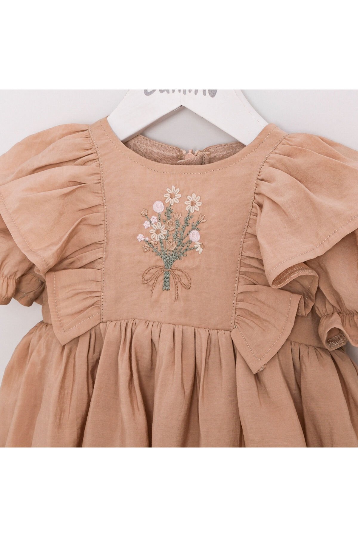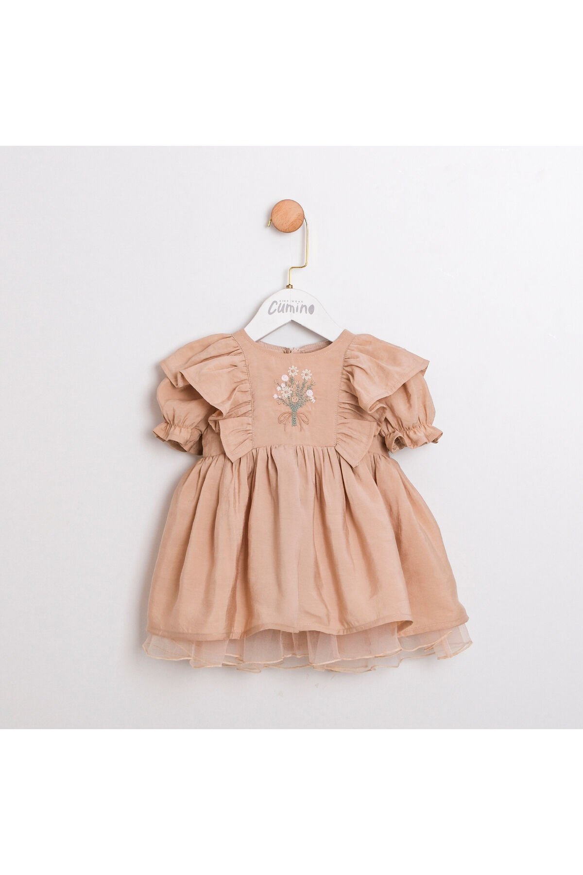 Linda Balon Kollu Nakışlı Kız Bebek Elbise