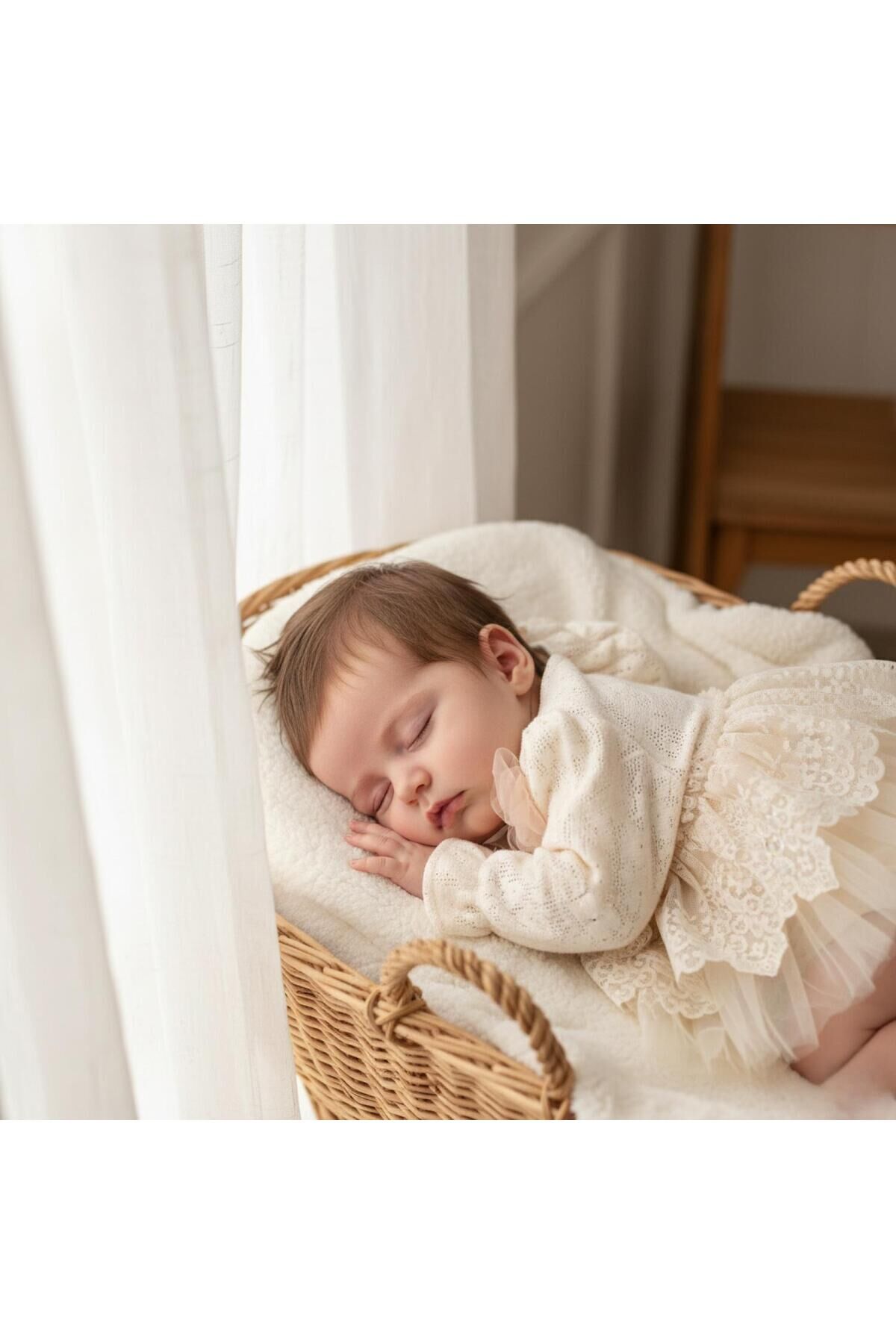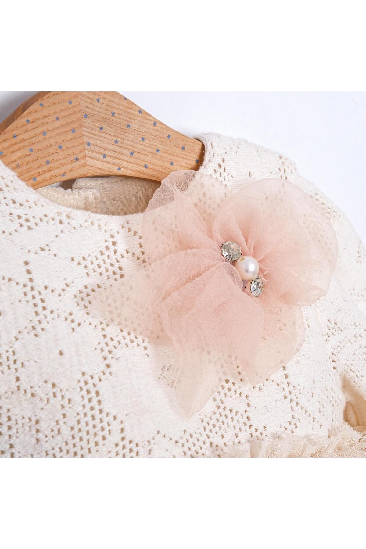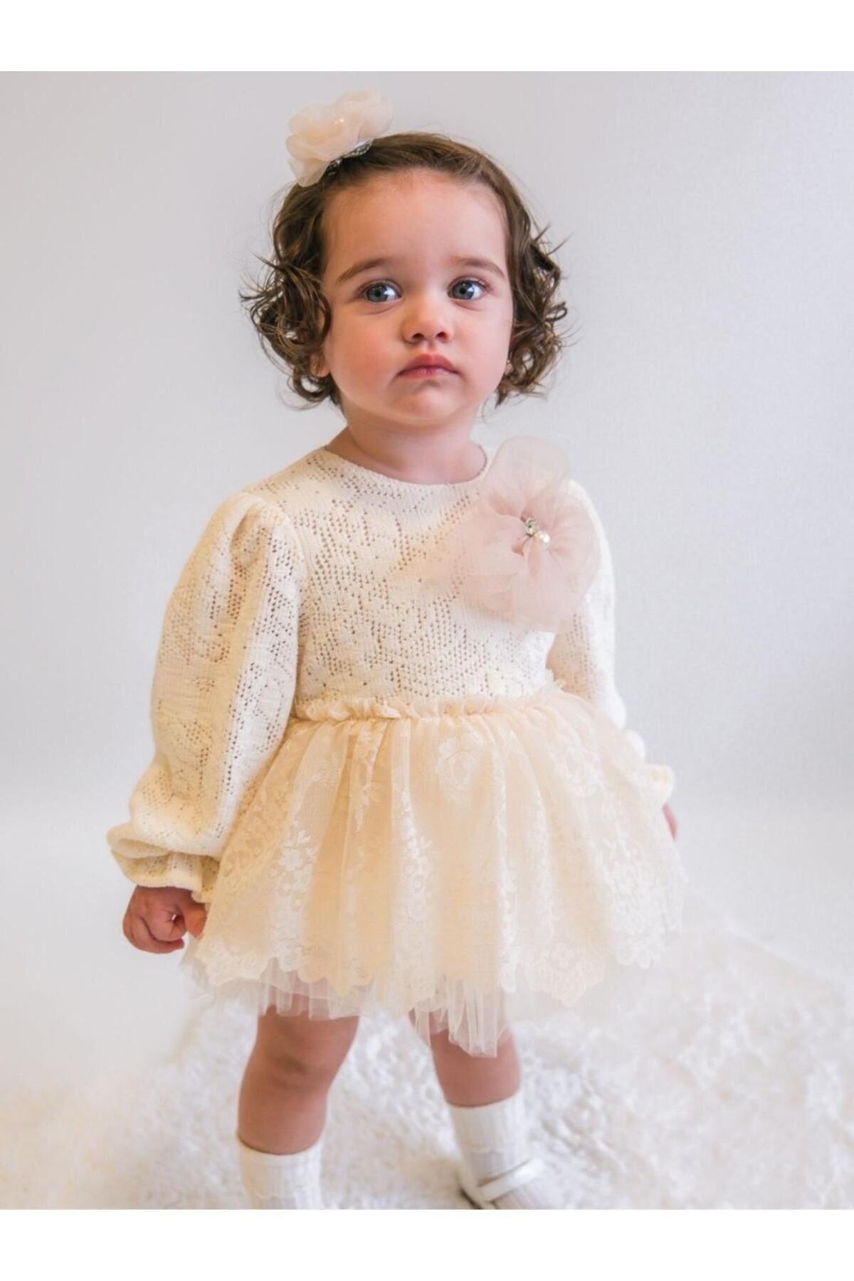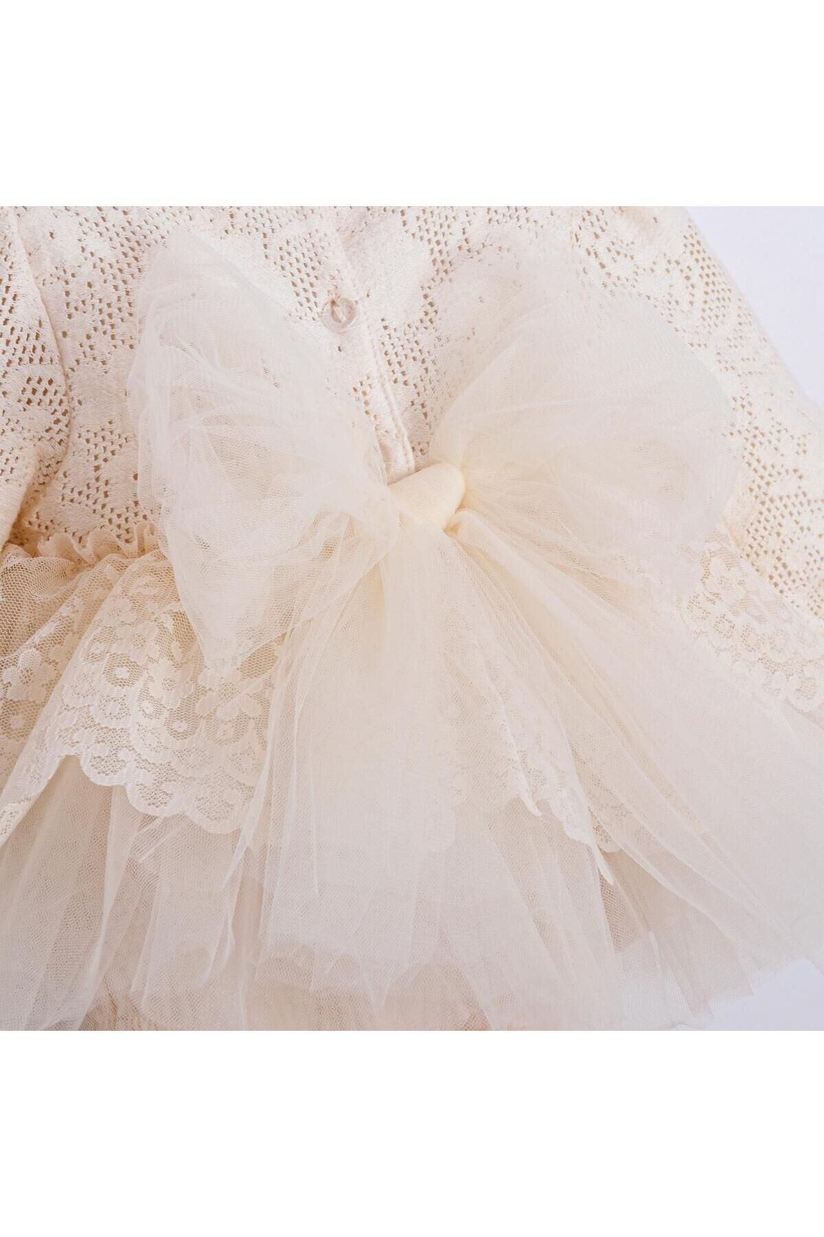 Lovely Uzun Kollu Arkası Fiyonklu Dantel Kız Bebek Romper