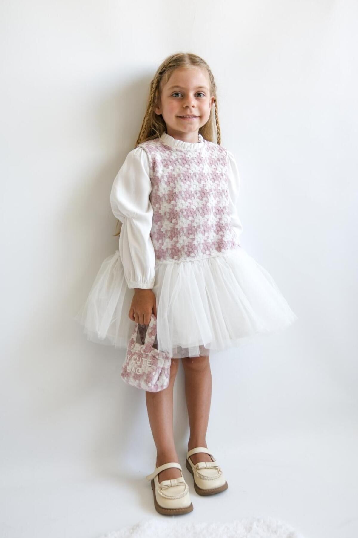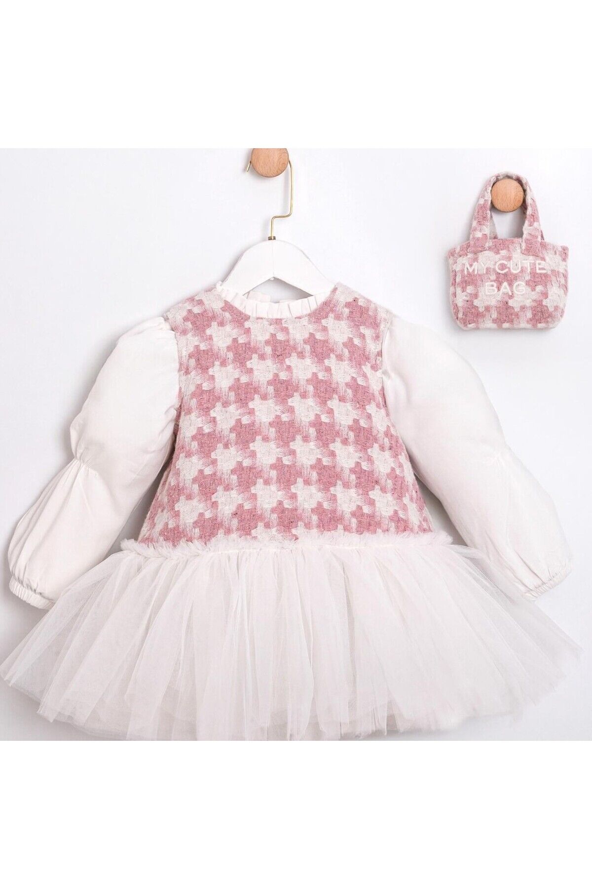 Lucia Kaz Ayağı Desenli Tütü Etekli Çanta Aksesuarlı Kız Çocuk Elbise