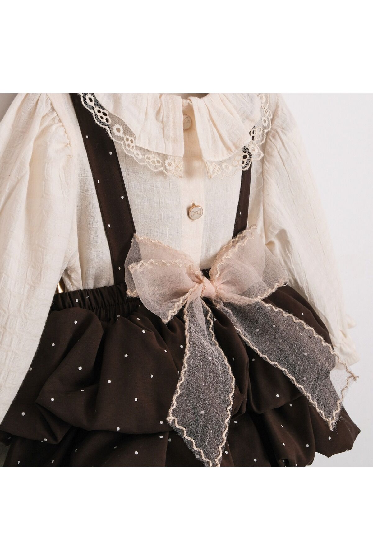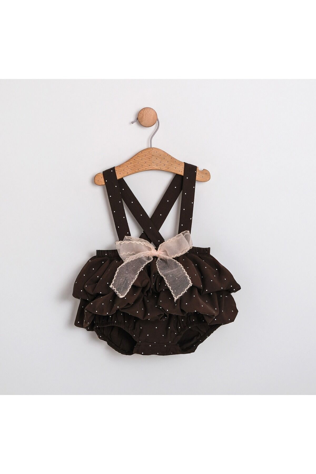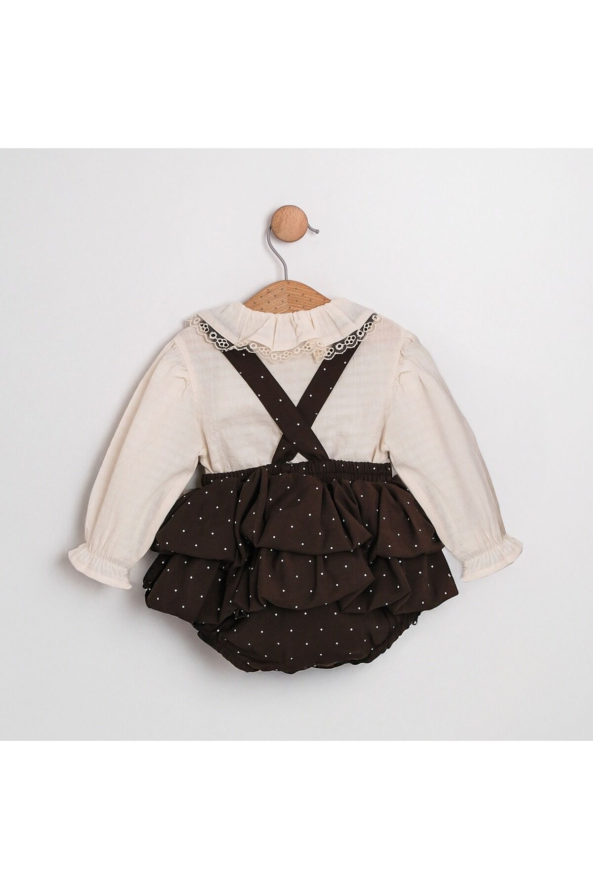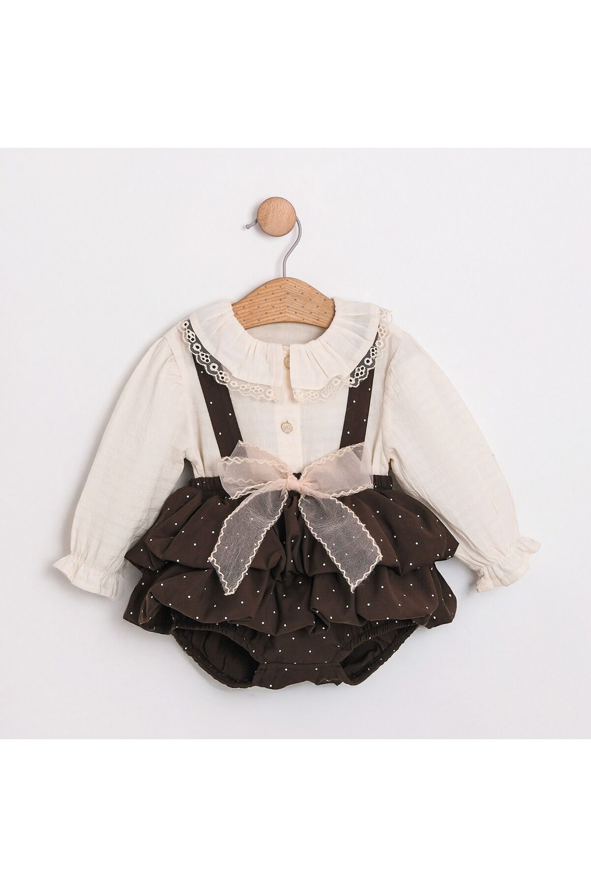 Mary Önü Fiyonklu Kız Bebek Salopet Takım