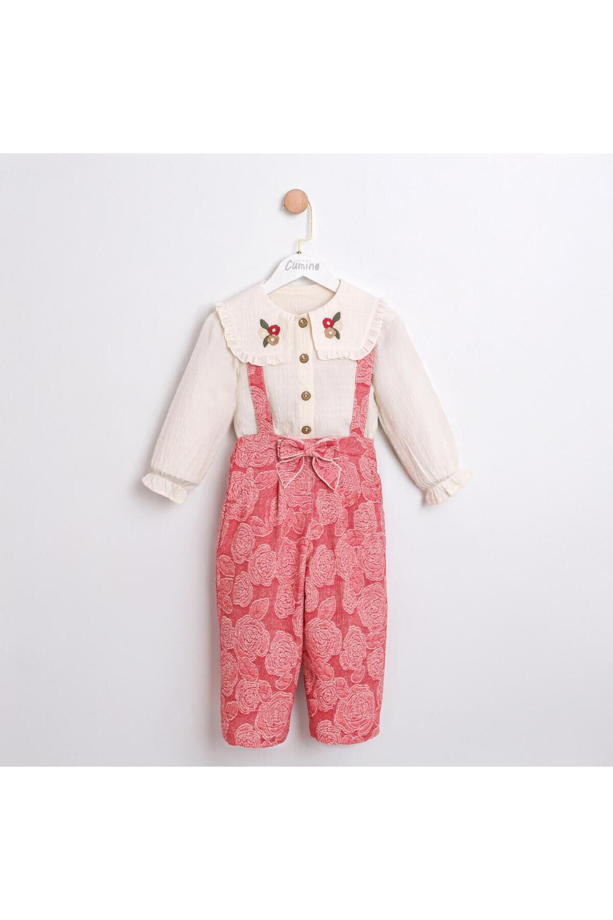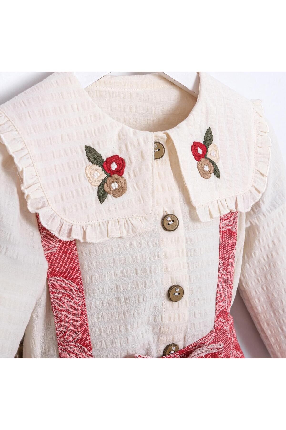 Matilda Yakası Nakışlı Kız Çocuk Gömlek Tulum Takım