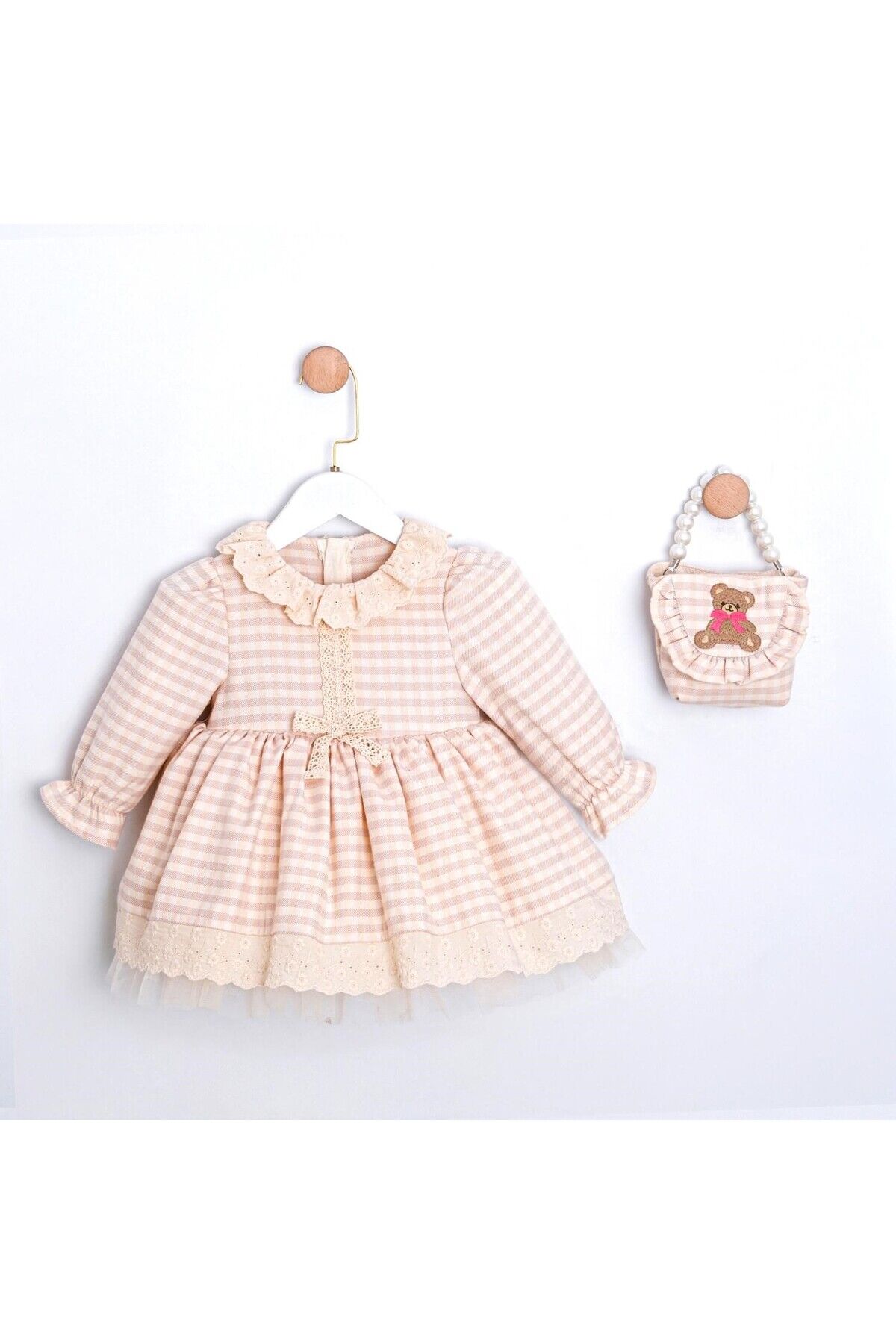 Maya Pötikare Desenli Çanta Aksesuarlı Kız Bebek Elbise