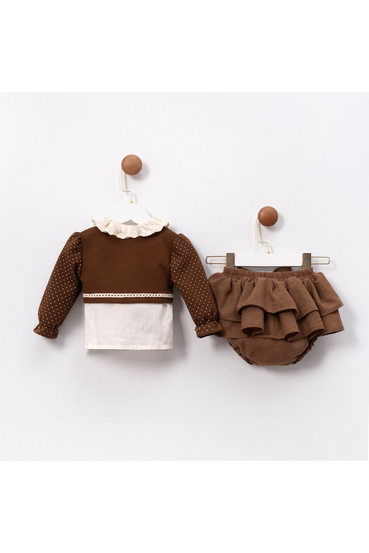 - Bebeğinizin cildine nazik dokunuşuyla pamuk materyali, gün boyu konfor sağlar.; - Makinede hassas yıkama özelliği sayesinde kolayca temizlenebilir ve bakımı pratiktir.; - Puantiyeli deseniyle şık ve eğlenceli bir görünüm sunar.; - Regular kalıp ile rahat hareket etme özgürlüğü verirken, vücuda tam oturur.; - Dokuma kumaşı dayanıklılığı artırarak uzun süreli kullanım imkanı tanır.; - Bebekler için özel olarak tasarlanmış bu takım, günlük kullanım için idealdir.; - Bebe yaka detayı ile hem şıklığı hem de sıcaklığı bir arada sunar.; - Uzun kollu tasarım soğuk havalarda ekstra koruma sağlar.; - 3 parçadan oluşan set içeriğiyle bebeğiniz için eksiksiz bir kombin oluşturmanızda yardımcı olur.