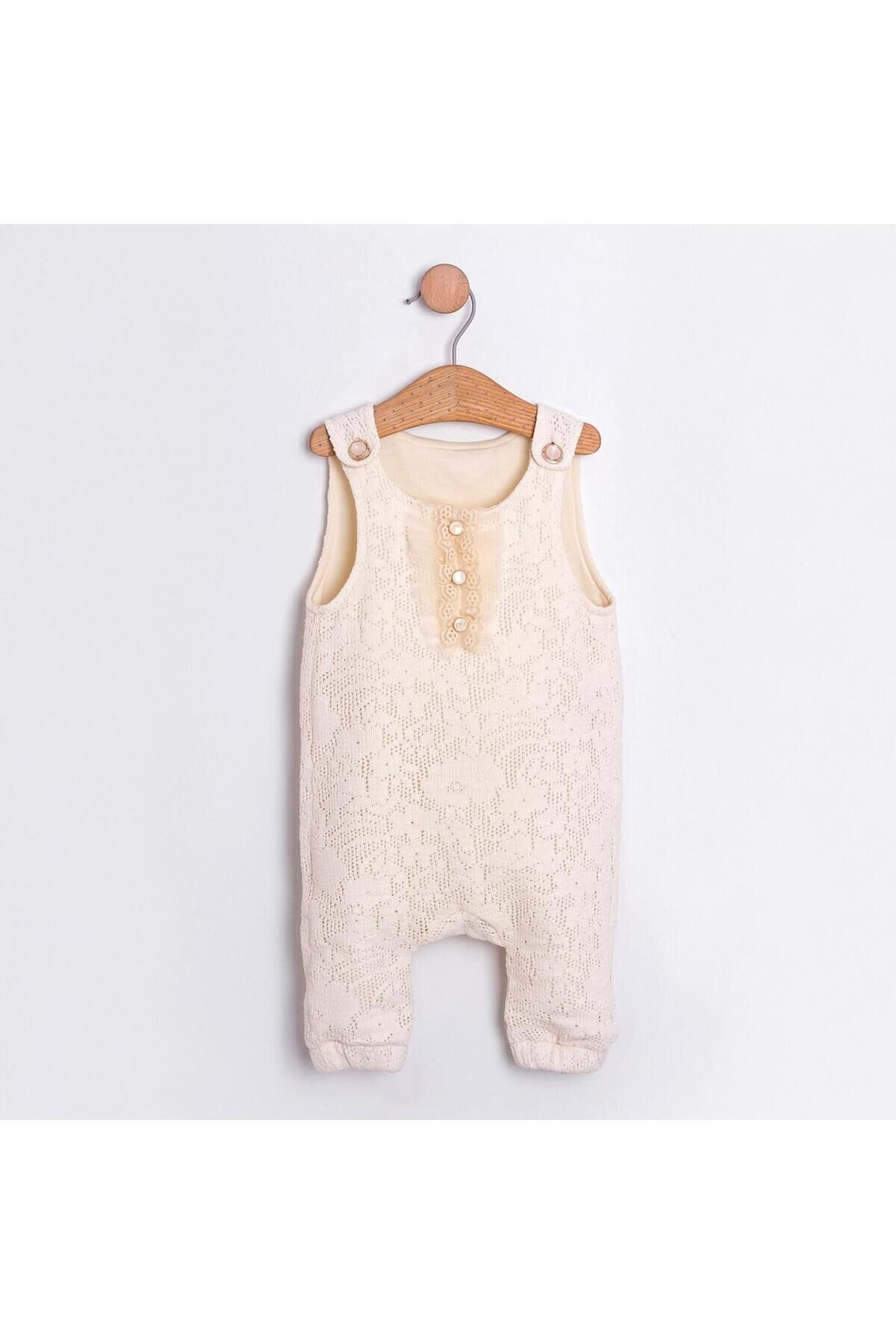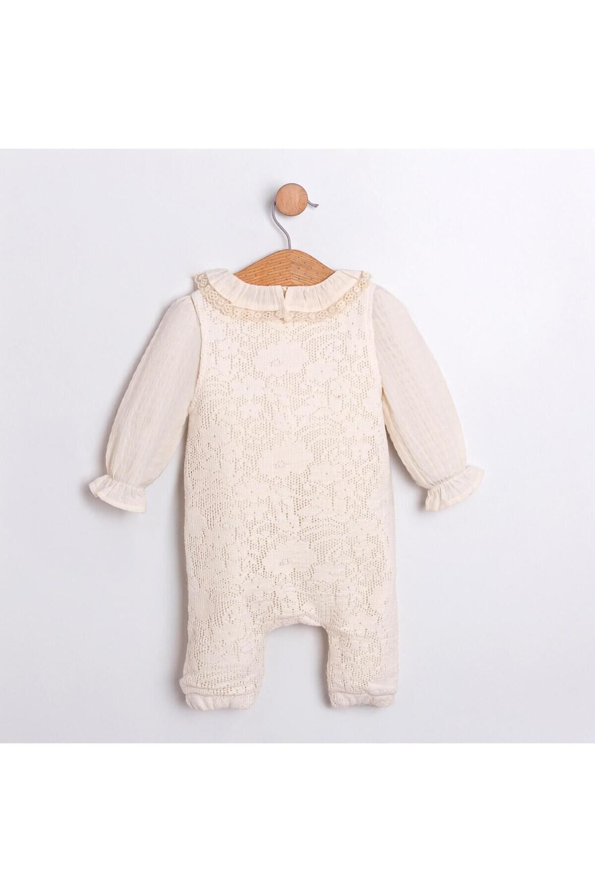Mina Fırfır Yakalı Dantelli Çanta aksesuarlı Kız Bebek Tulum