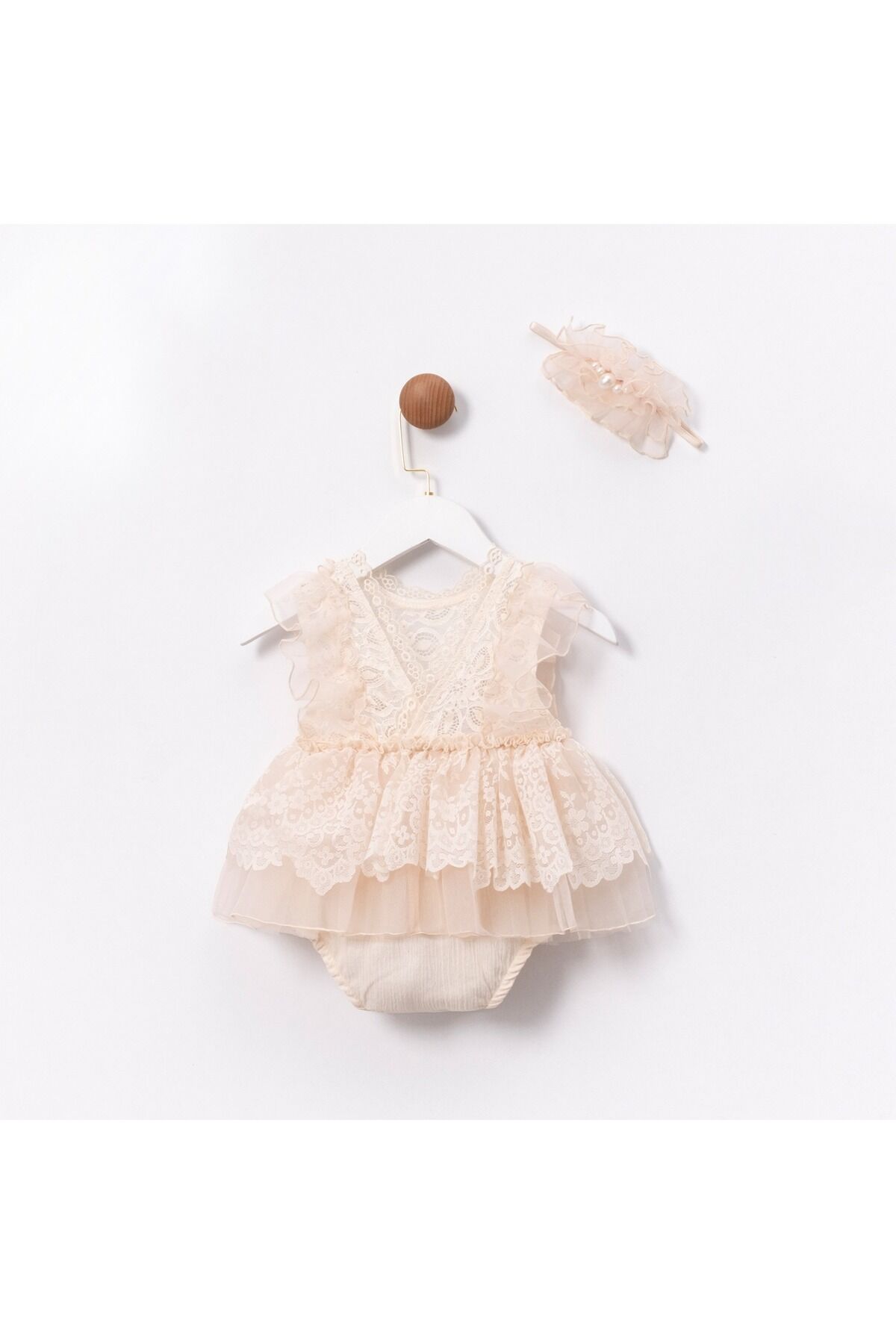 Mina Saç Aksesuarlı Kız Bebek Romper