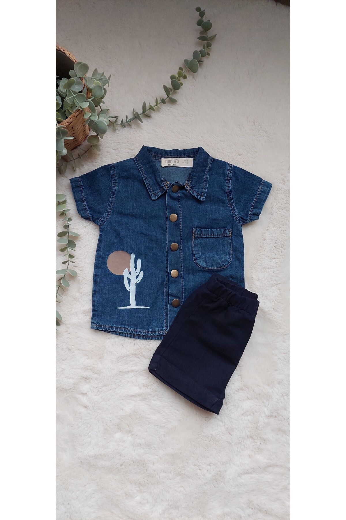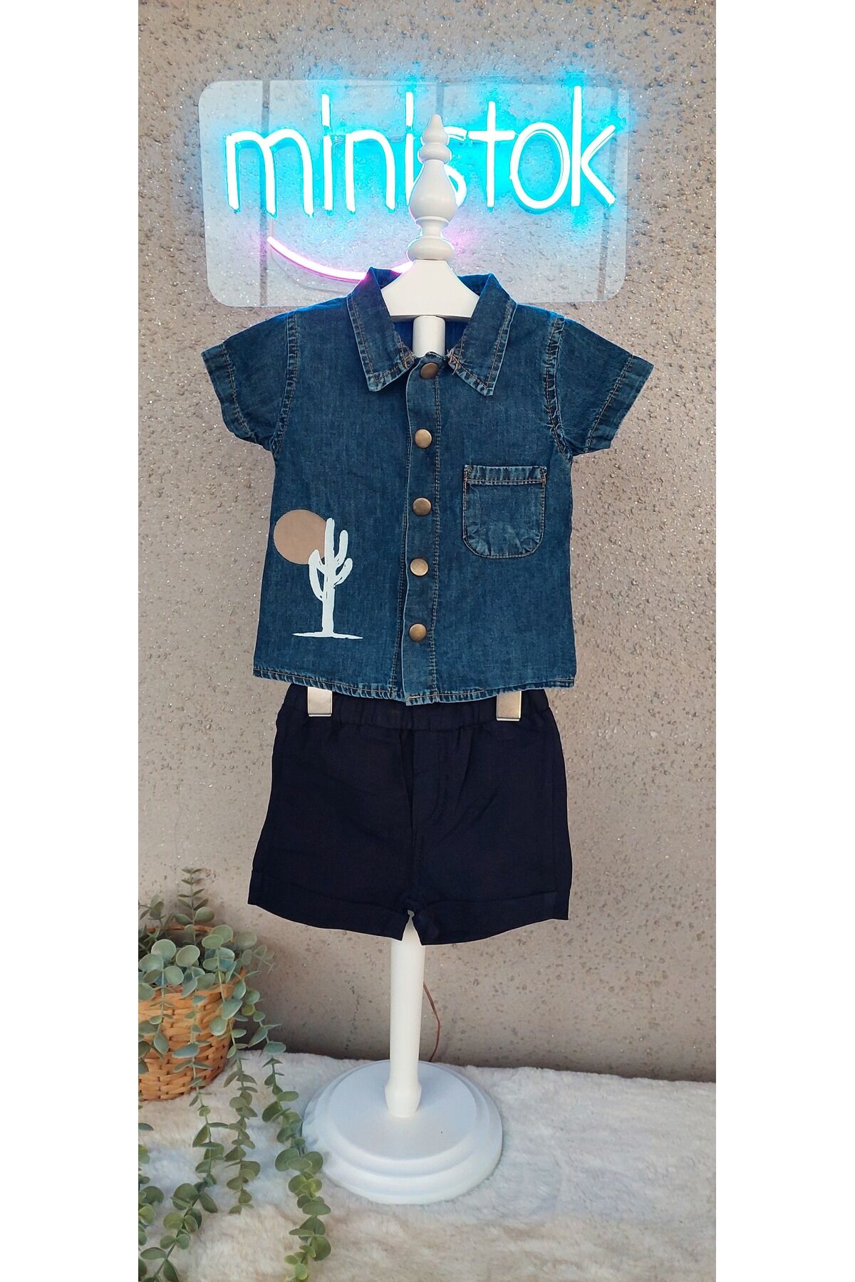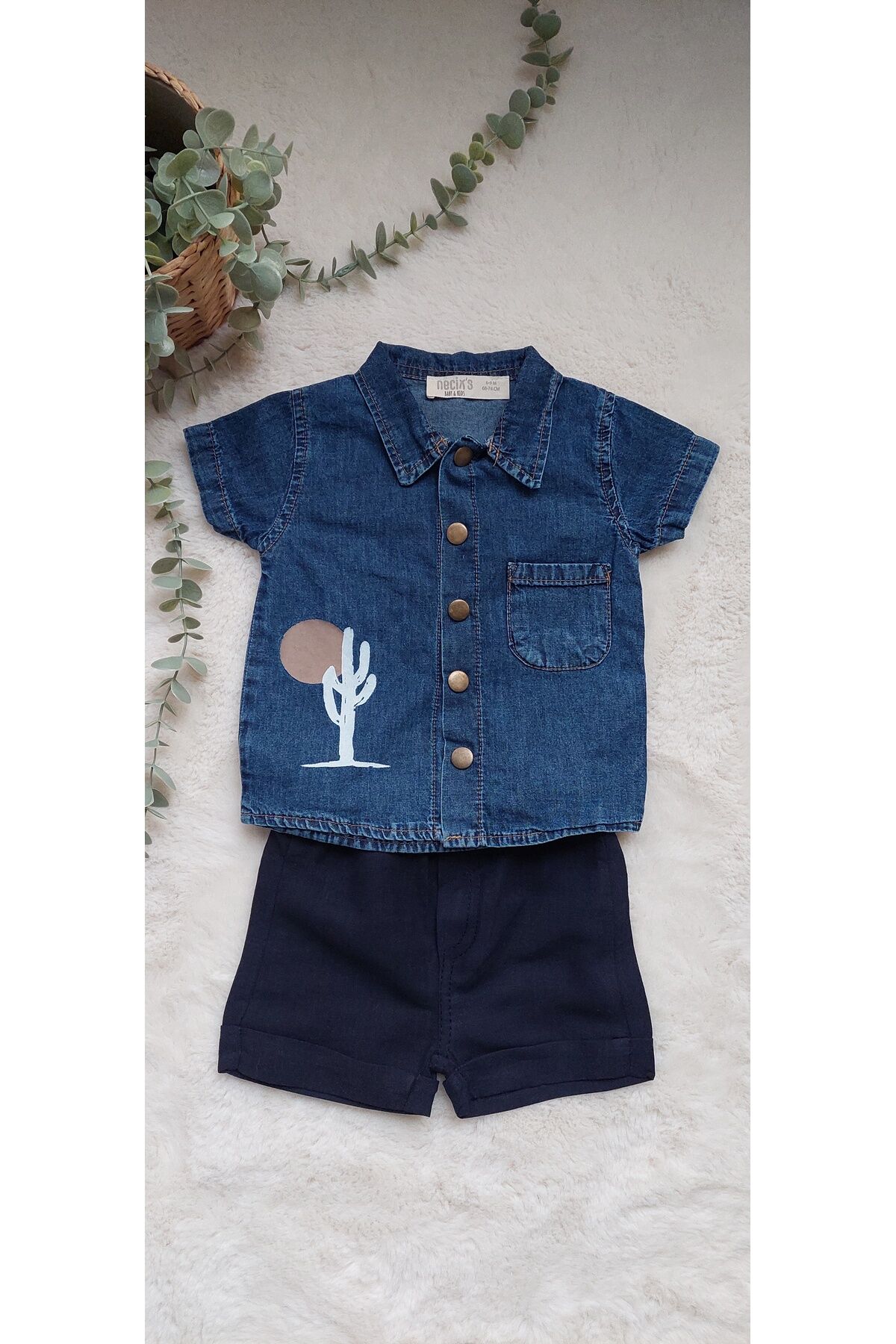 ministok Erkek Bebek Kot gömlekli Şortlu İkili Takım