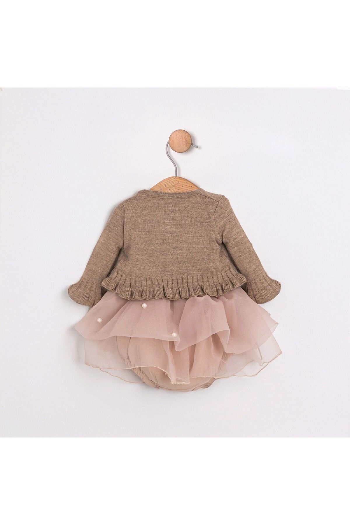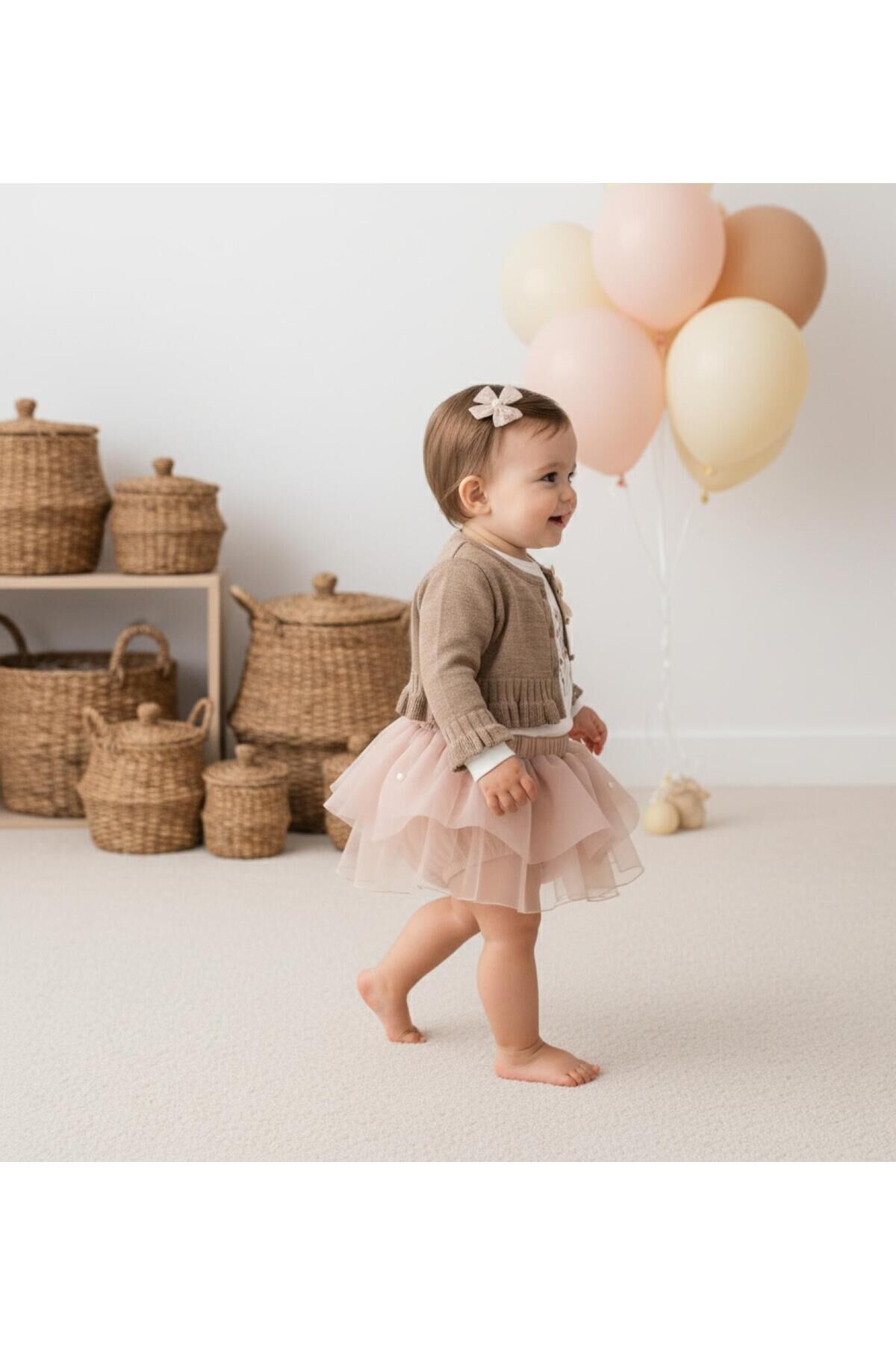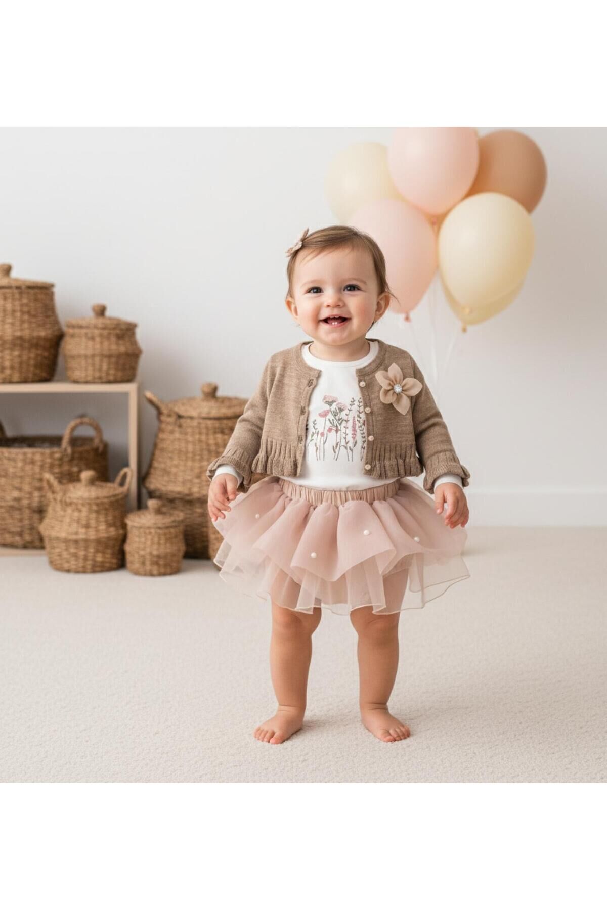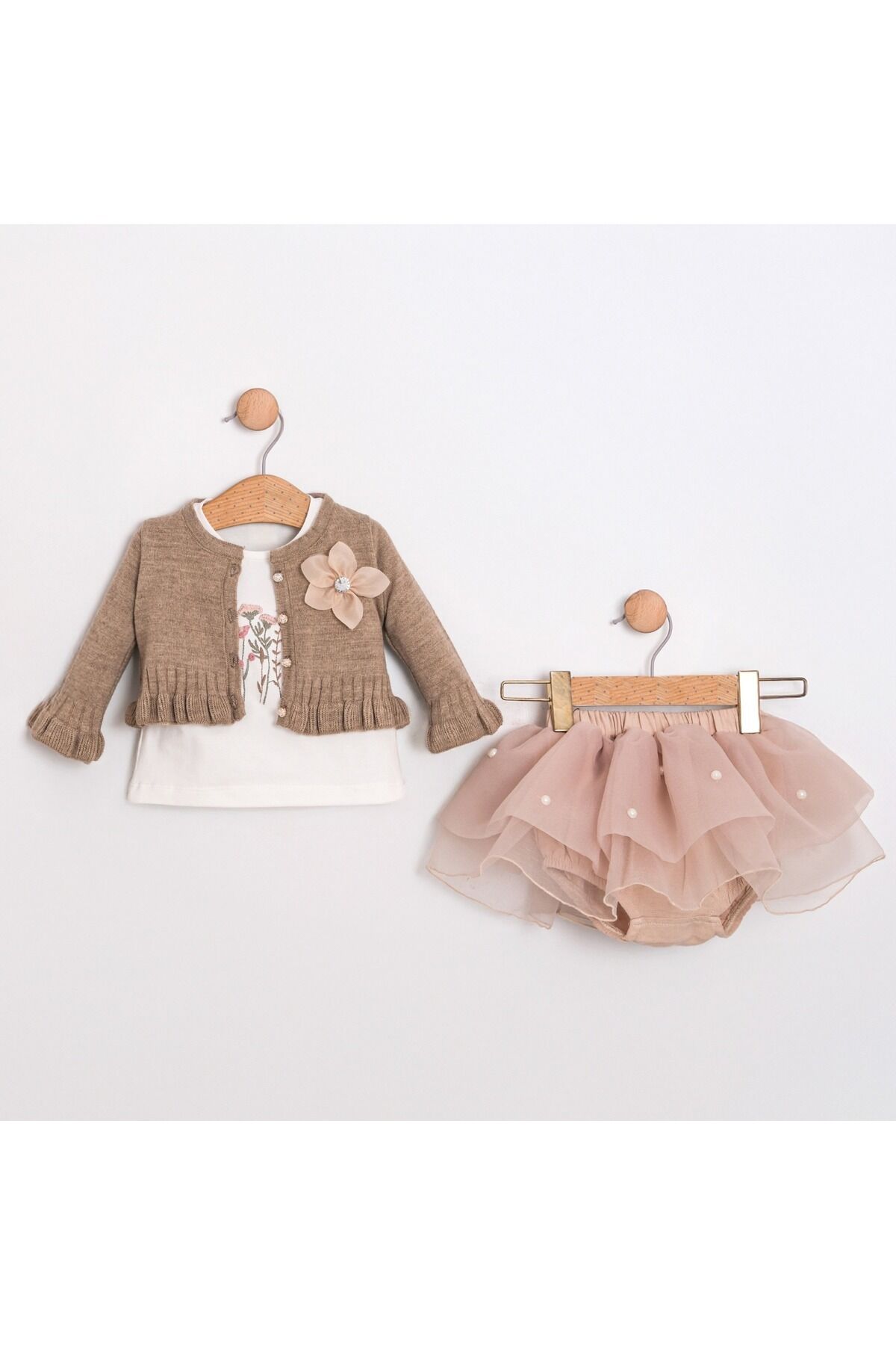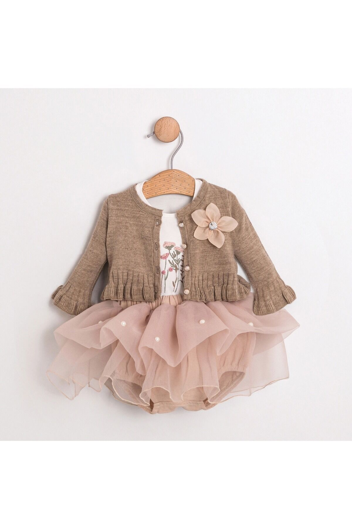 Monica Hırka ve Tütü Etekli 3'lü Kız Bebek Takım
