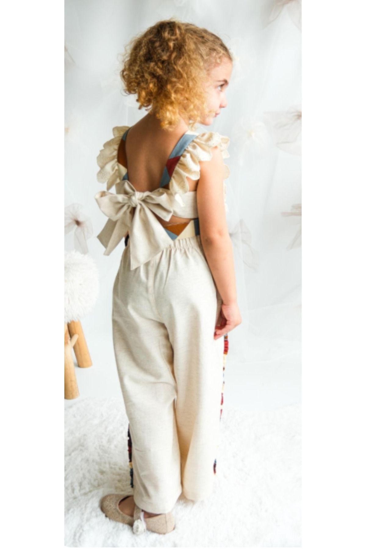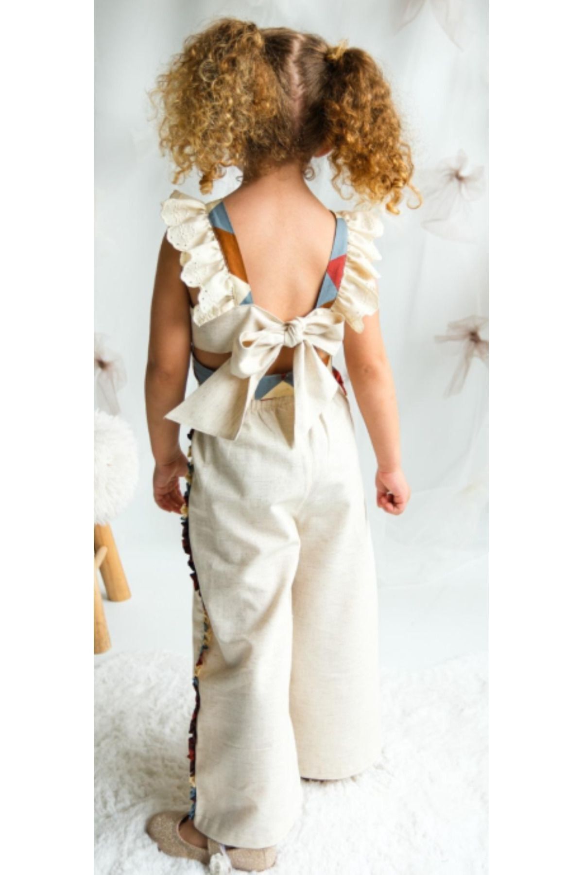 Patchwork Fırfır Kollu Arkadan Bağlamalı Kız Çocuk Tulum