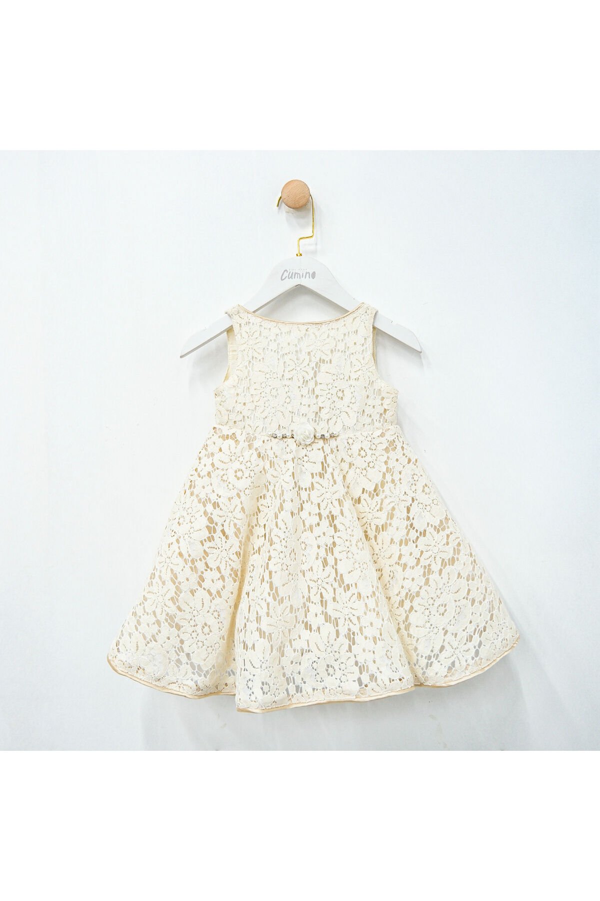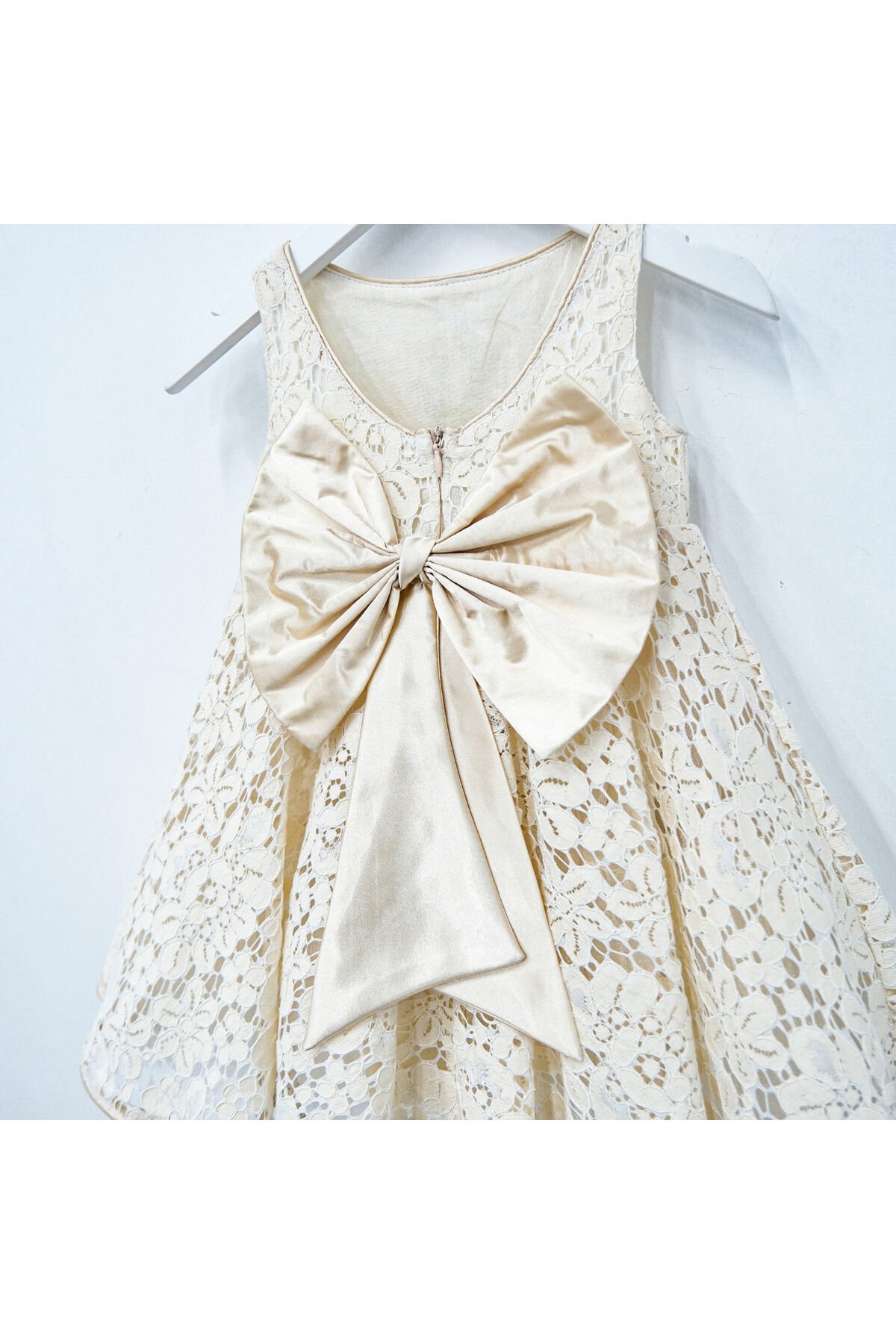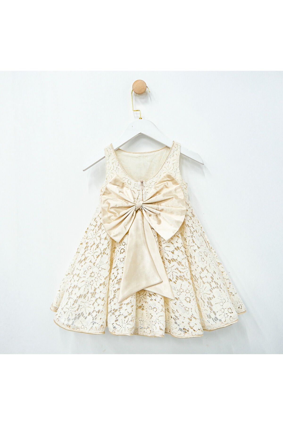 Perla Dantelli Arkası Fiyonklu Kız Çocuk Elbise