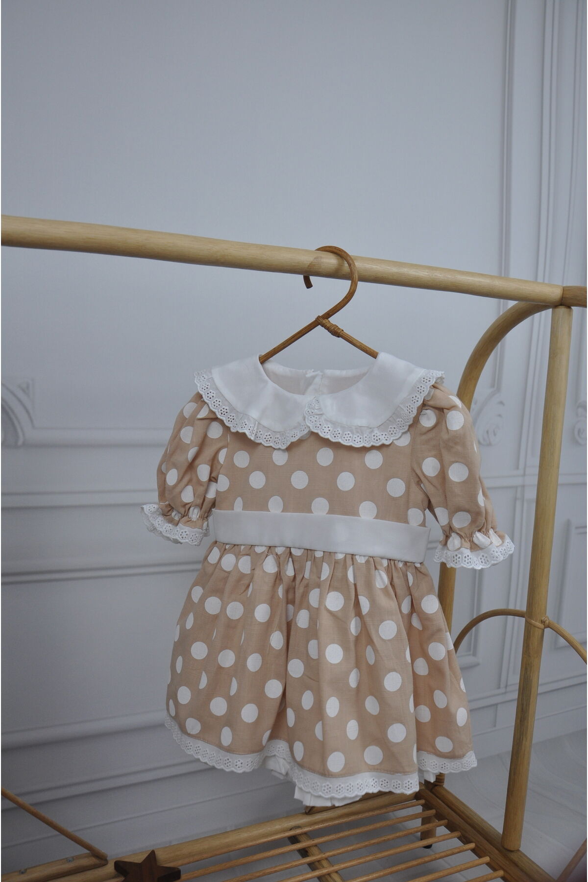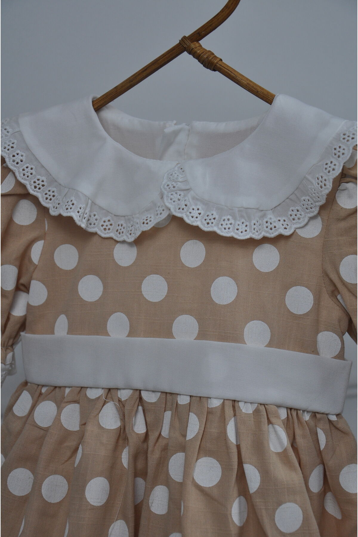 Puantiyeli Bebe Yakalı Arkası Fiyonklu Kız Çocuk Elbise