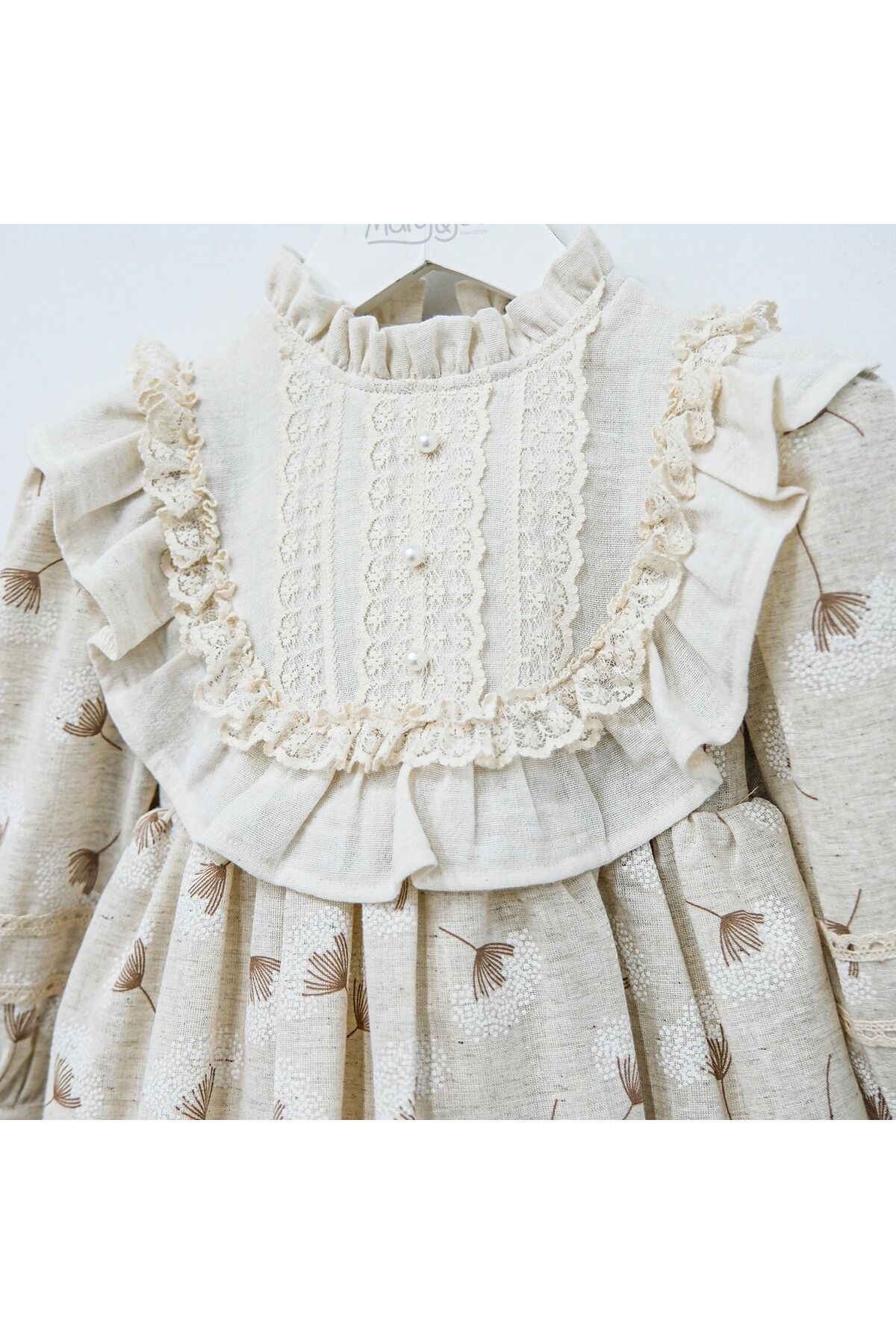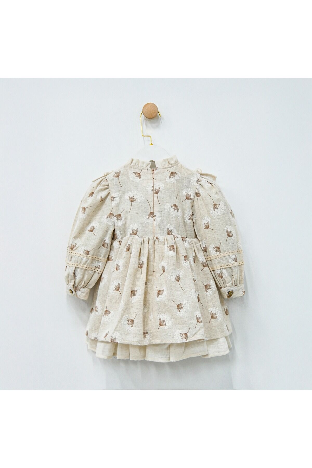 Yumuşak dokusuyla dikkat çeken dantel detayları, kız çocuklarının zarafetini ön plana çıkarır.; - Makinede hassas yıkama imkanı sayesinde, elbisenin ilk günkü gibi kalmasını sağlar.; - Her mevsim rahatlıkla tercih edilebilen orta kalınlıkta kumaşı ile konforlu bir kullanım sunar.; - Fermuarlı kapama şekli kolay giyip çıkarmayı mümkün kılar; pratiklik kazandırır.; - Astarlı yapısı ile ekstra koruma sağlarken, şıklığından ödün vermez.; - Dokuma kumaş tipi dayanıklılığı arttırarak uzun süreli kullanım vaat eder.; - çocuklar için ideal olan regular kalıp, vücuda tam otururken hareket özgürlüğü tanır.; - Trend deseniyle göz alıcı bir görünüm sergileyen bu elbise, her ortamda stil sahibi durmanızı sağlar.; - Uzun kollu tasarımı soğuk havalarda bile sıcak tutarken şık görünümünden ödün vermez.; - Bebe yakası ile hem modern hem de geleneksel çizgilere hitap ederken, dantel detaylarıyla sofistike bir dokunuş katmaktadır.;