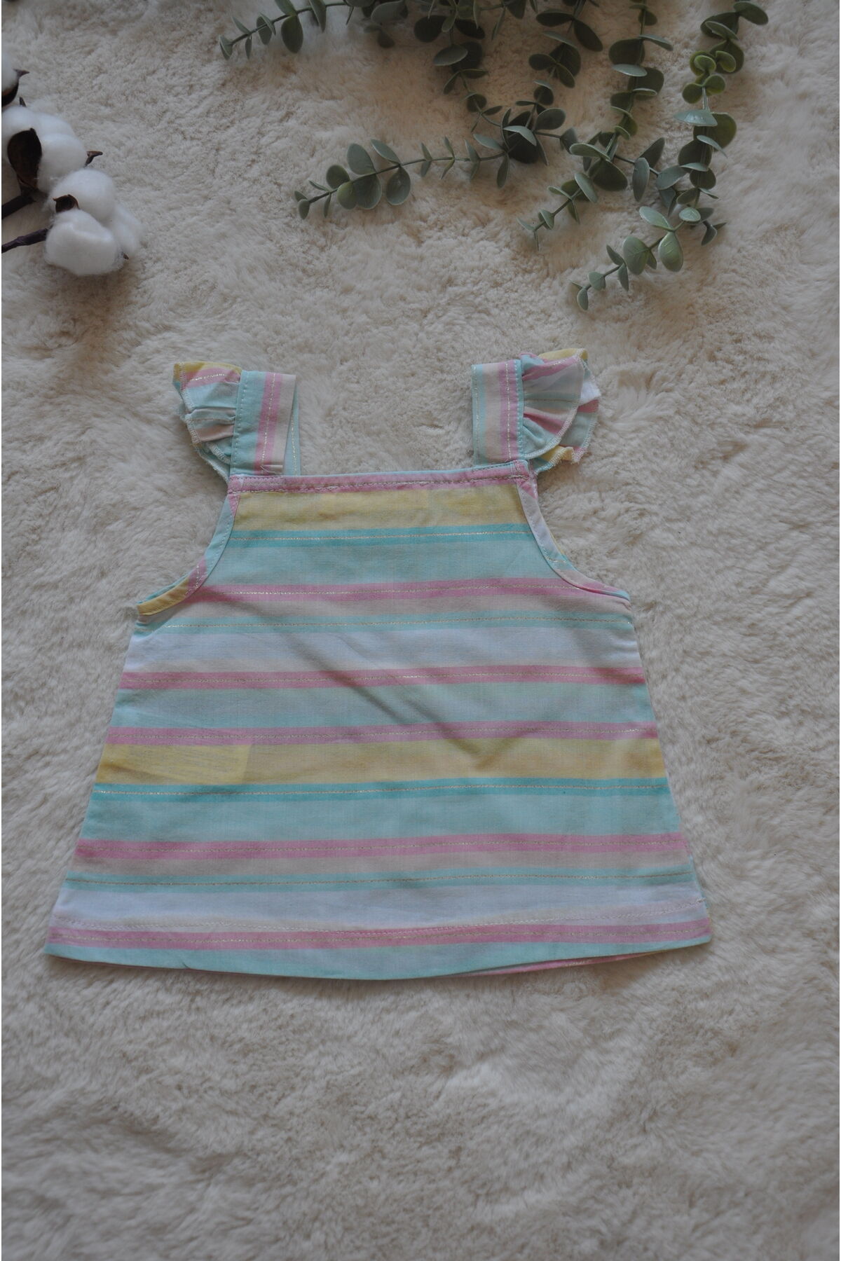 Çizgili deseniyle şık ve neşeli bir görünüm sunar, bebeklerinize canlılık katar; Dokuma kumaş yapısı sayesinde dayanıklılık ve konforu bir arada sunar, bebeğinizin rahat hareket etmesini sağlar; Regular kalıp ile bebeğinizin vücut hatlarına uyum sağlar ve rahat bir kullanım imkanı tanır; Bebekler için özel olarak tasarlanmış olup, onların hassas ciltlerine uygun yumuşak dokusuyla dikkat çeker; Standart boy seçeneğiyle farklı bedenlere kolayca uyum sağlayarak geniş bir kullanım yelpazesi sunar;