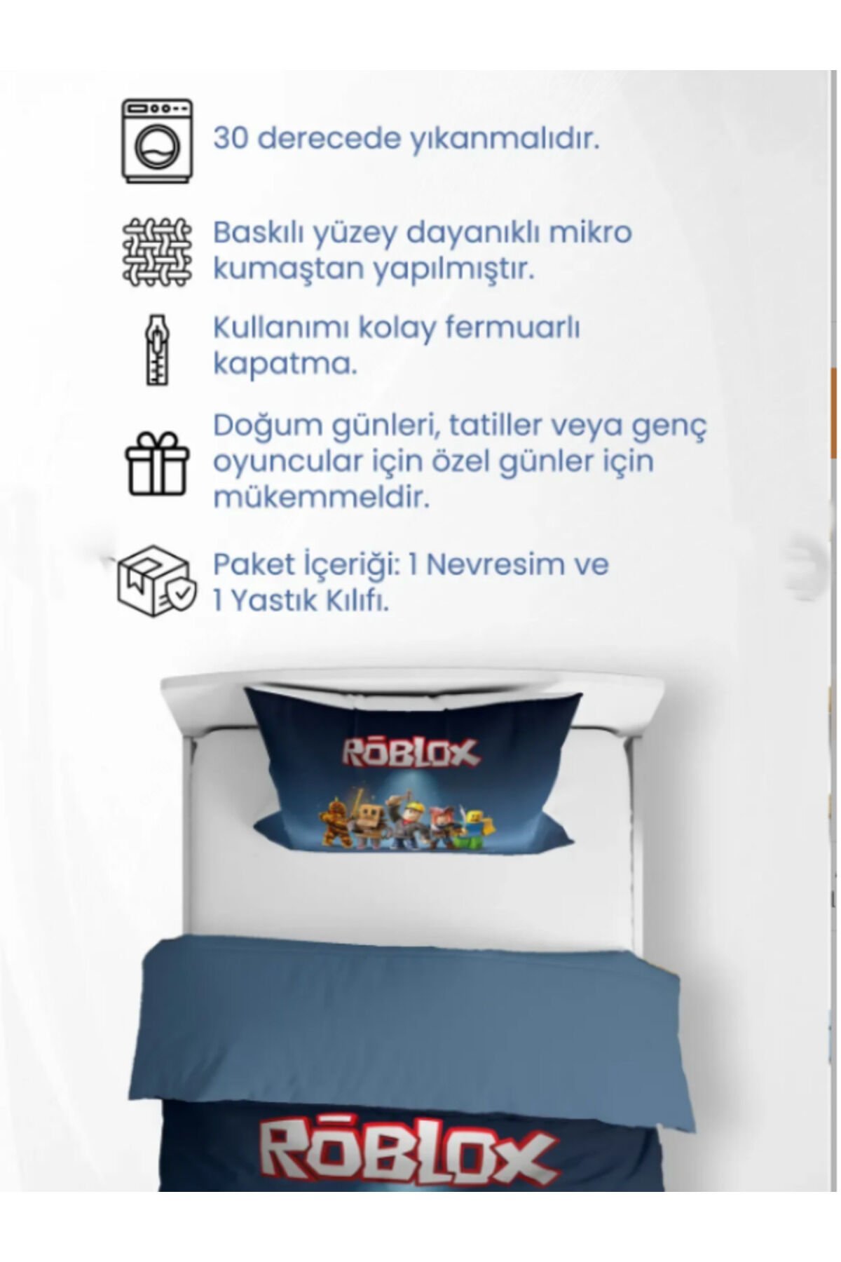 Roblox Çocuk Yastıklı Nevresim Takımı (Çarşafsız)