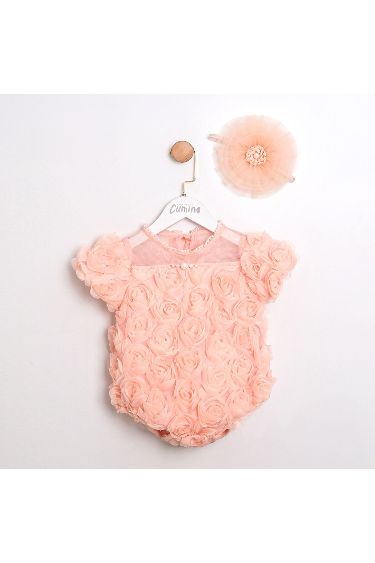 Rosa Saç Aksesuarlı Kız Bebek Tulum