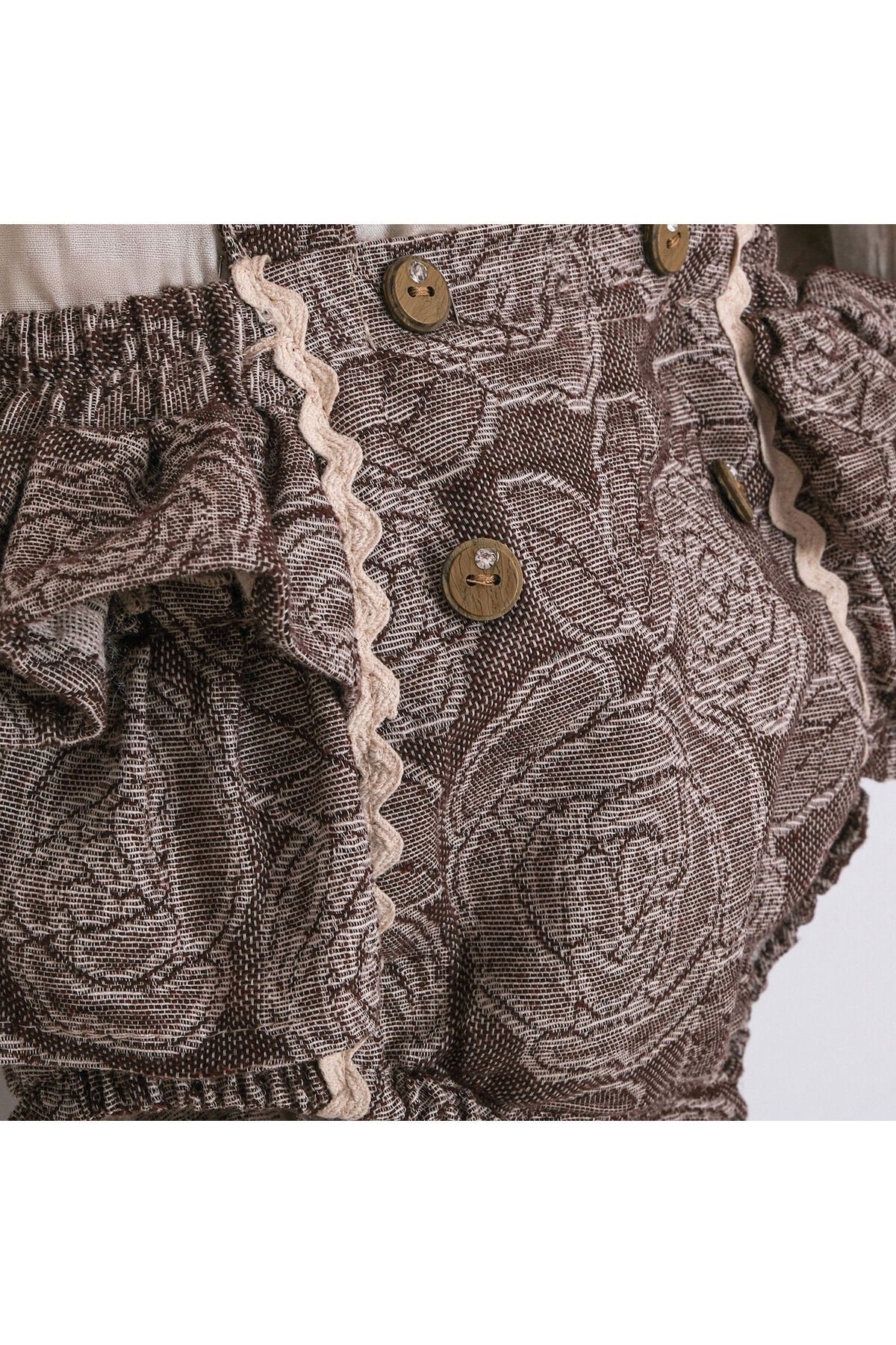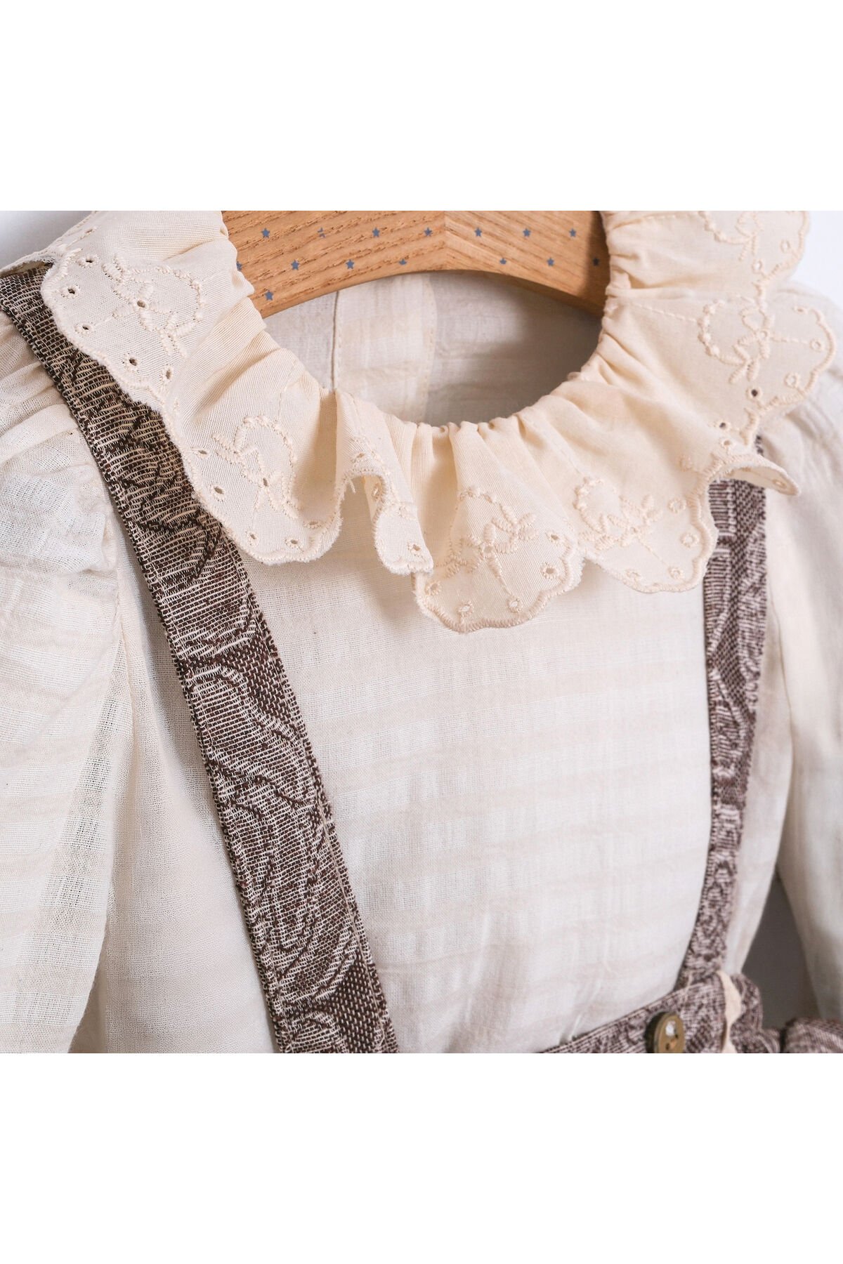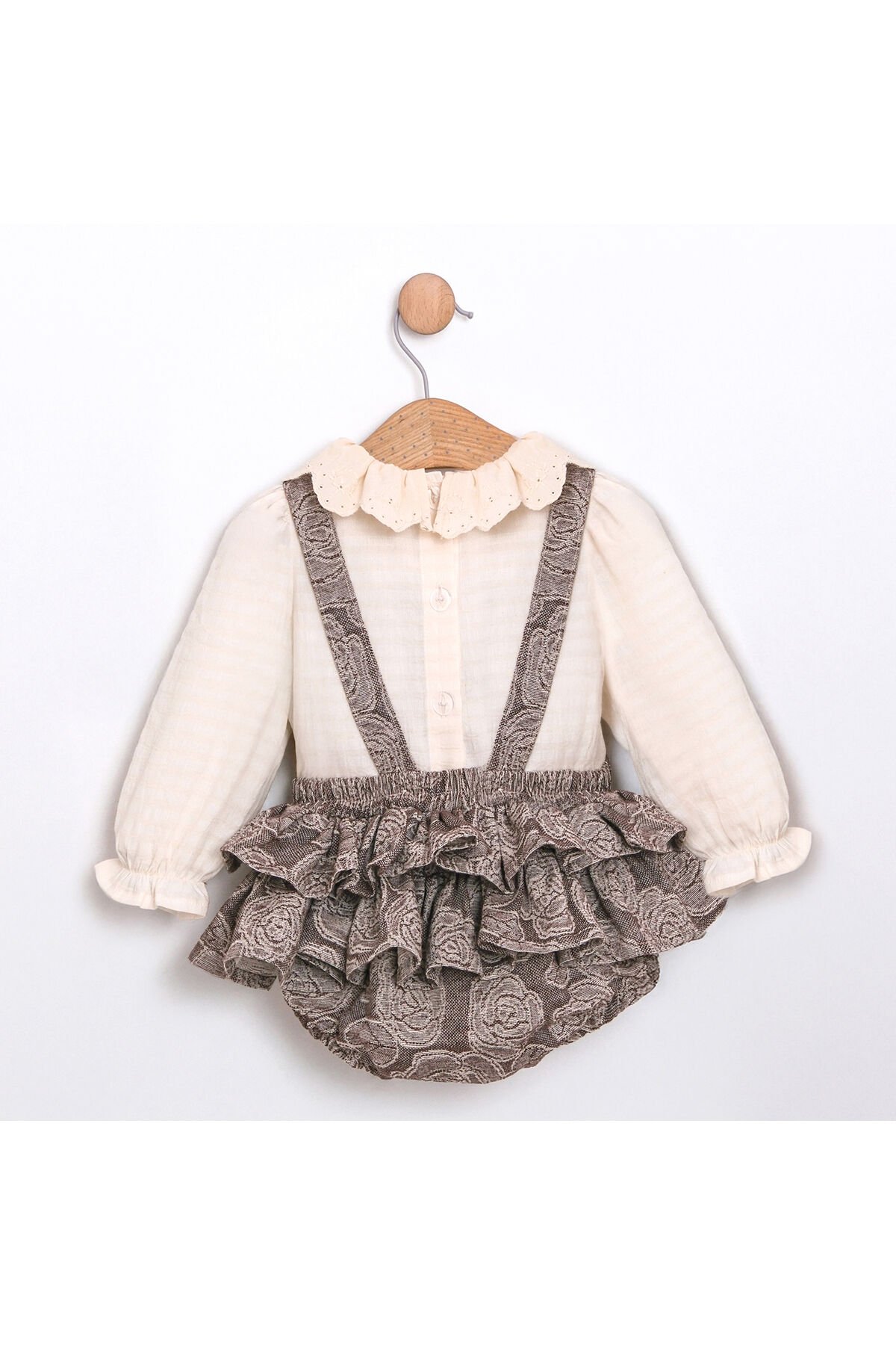 Rosana Kız Bebek Çiçek Desenli Fırfırlı Salopet Takım - Uzun Kollu Gömlekli